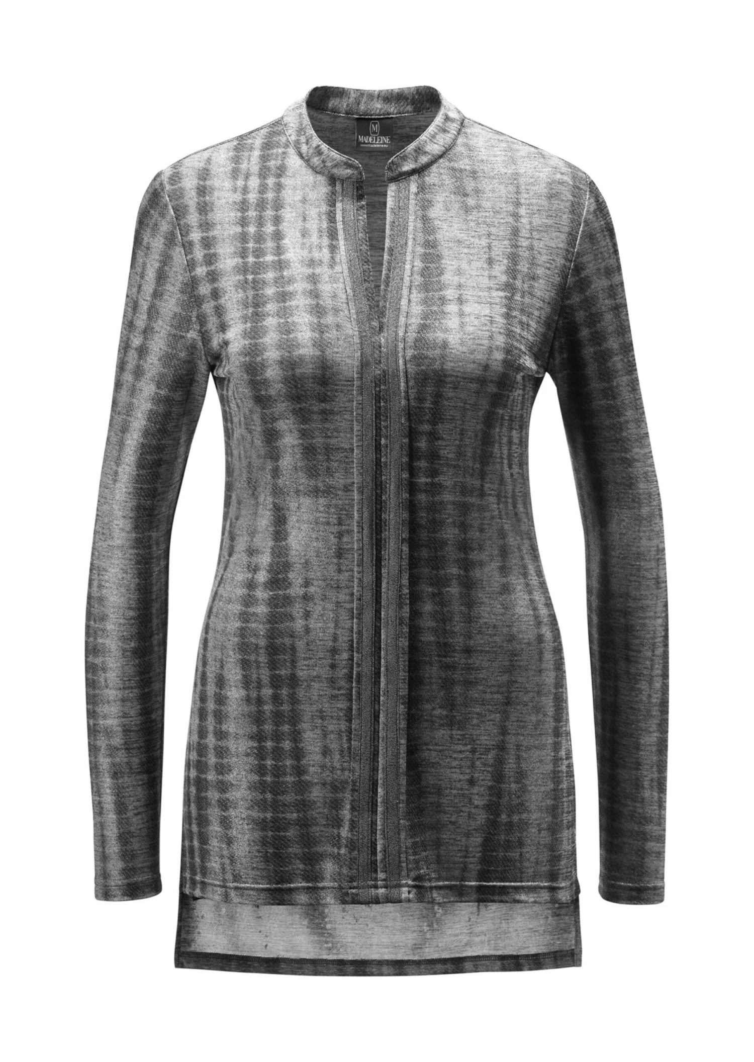 Sehr trendy das Styling mit edel schimmerndem Fashion-Print und verlängertem Rückenteil. Mit V-förmigem Rundhalsausschnitt und langen Ärmeln.