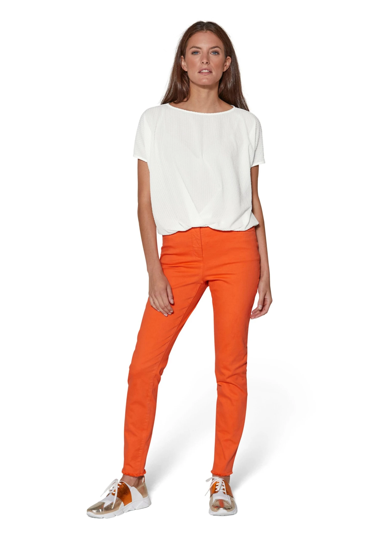Seine Details machen es so lässig und trendy! Das Blusenshirt mit Gummizug am Saum trägt sich leicht und luftig dank seiner dezent transparenten, sommerlichen Strukturqualität. Der Style ist betont feminin mit Knotenoptik am vorderseitigen Saum gestaltet und ausgestattet mit U-Boot-Ausschnitt und überschnittenen Ärmeln. Dank seiner klassischen Farbe können Sie es vielseitig kombinieren – sehr schön auch zu den leuchtenden Tönen der Saison.