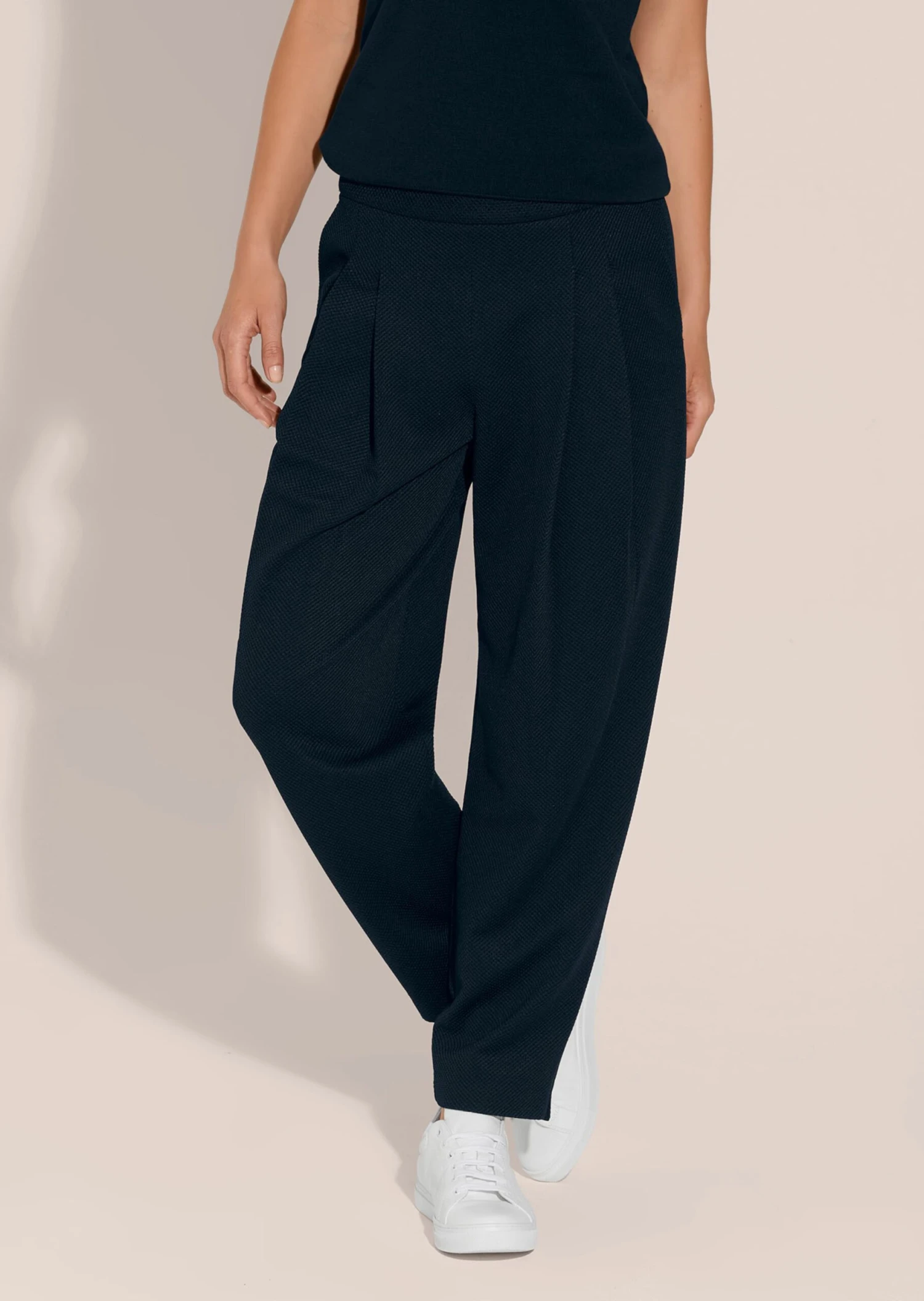 Mit dieser Bundfaltenhose bringen Sie Ihren eleganten Stil perfekt zum Ausdruck. Mit konischem Beinverlauf und lässiger Weite am Oberschenkel schmeichelt sie jeder Figur. Eingrifftaschen, Saumschlitze, Seitenzipper und ein Formbund mit Meshbesatz runden die Hose ab. In edler Strukturqualität – bequem elastisch und knitterarm.