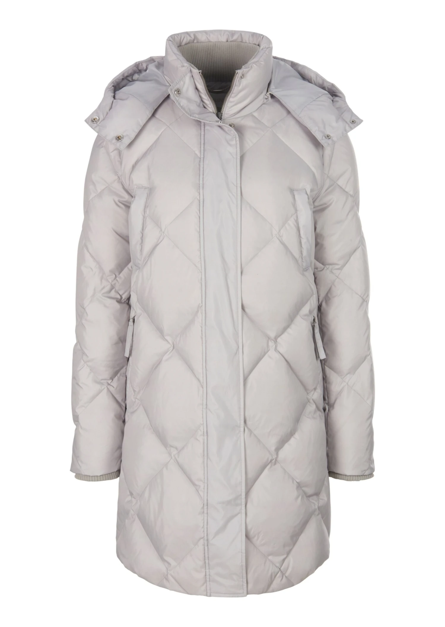 Sportiver Chic in edler Silhouette, kuschelig warm und vielseitig kombinierbar! Der hochwertige Rauten-Stepp des Mantels hält durch die Daunen-Feder-Füllung mollig warm. Die verdeckte Druckerleiste reicht bis in den Stehkragen, der mit Tunnelzug und knöpfbarer Kapuze ausgerüstet ist. Rippenbündchen an Kragen und Ärmeln schützen vor Zugluft, während Zippertaschen Platz bieten.