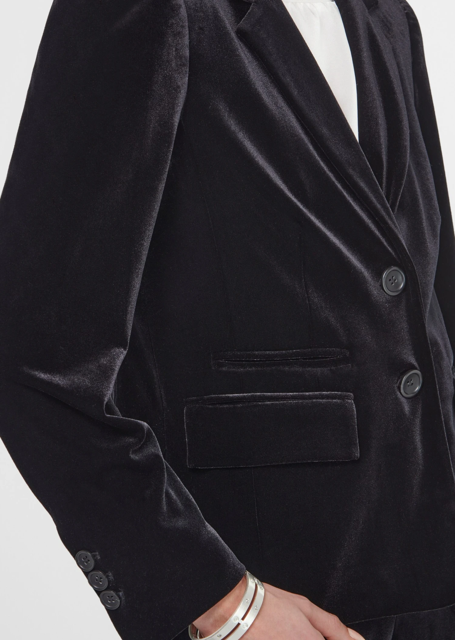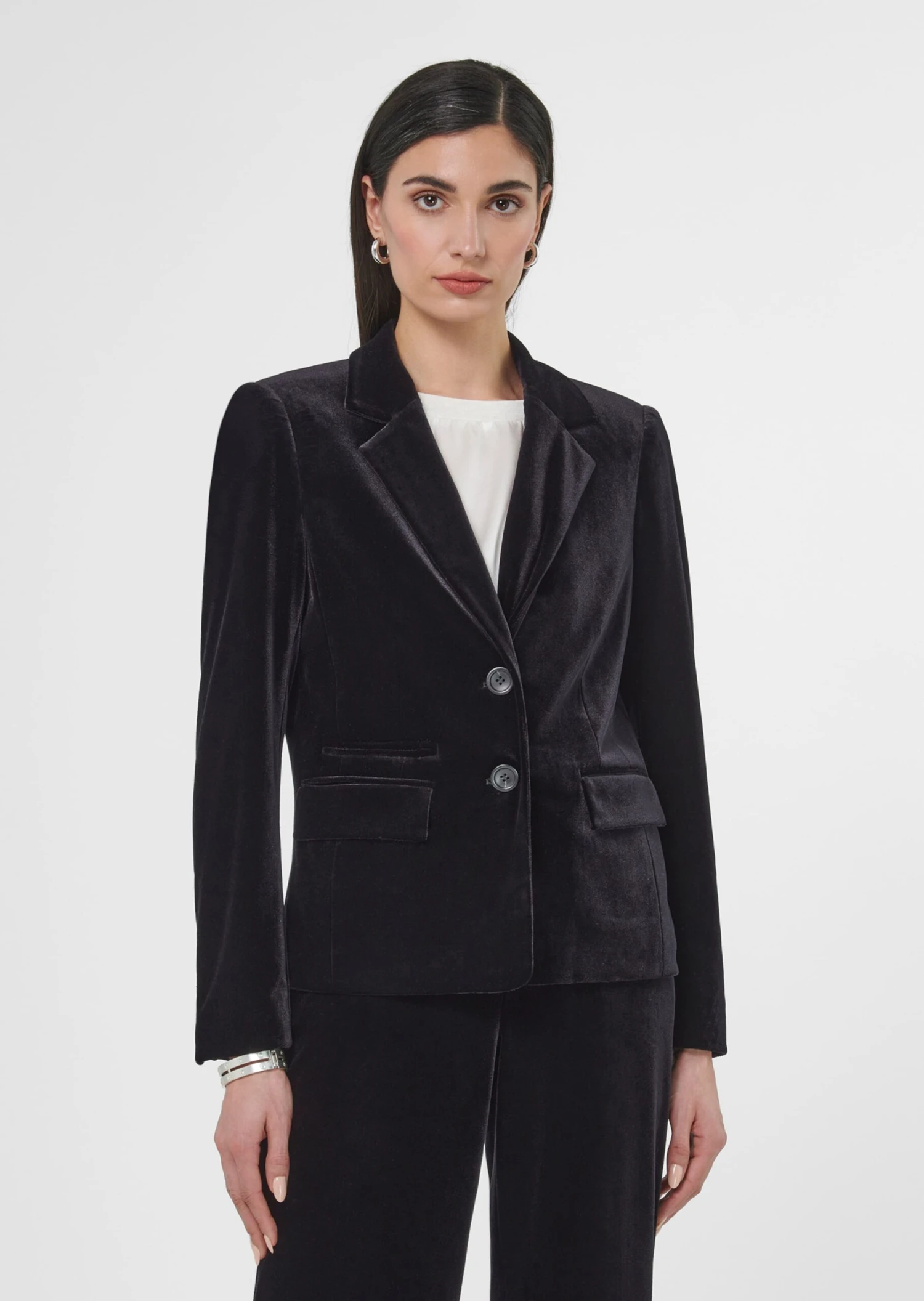 In einen gut sitzenden Blazer zu investieren lohnt sich immer. Wir empfehlen Ihnen dieses Modell aus edlem Samt. Alltagstauglich stylt man den Blazer einfach mit weißem Shirt, Jeans und Sneakern. Wenn es eleganter sein soll, kombinieren Sie ihn einfach mit der materialgleichen Hose zum schicken Samtanzug. Schlanker, leicht taillierter Style mit Reverskragen, Knopfleiste mit schwarzen Knöpfen, Zierleiste, 2 paspelierten Pattentaschen und langen Ärmeln mit geknöpften Schlitzen. Dieser Artikel wurde aufgrund des Einsatzes von recyceltem Material ressourcenschonend produziert.