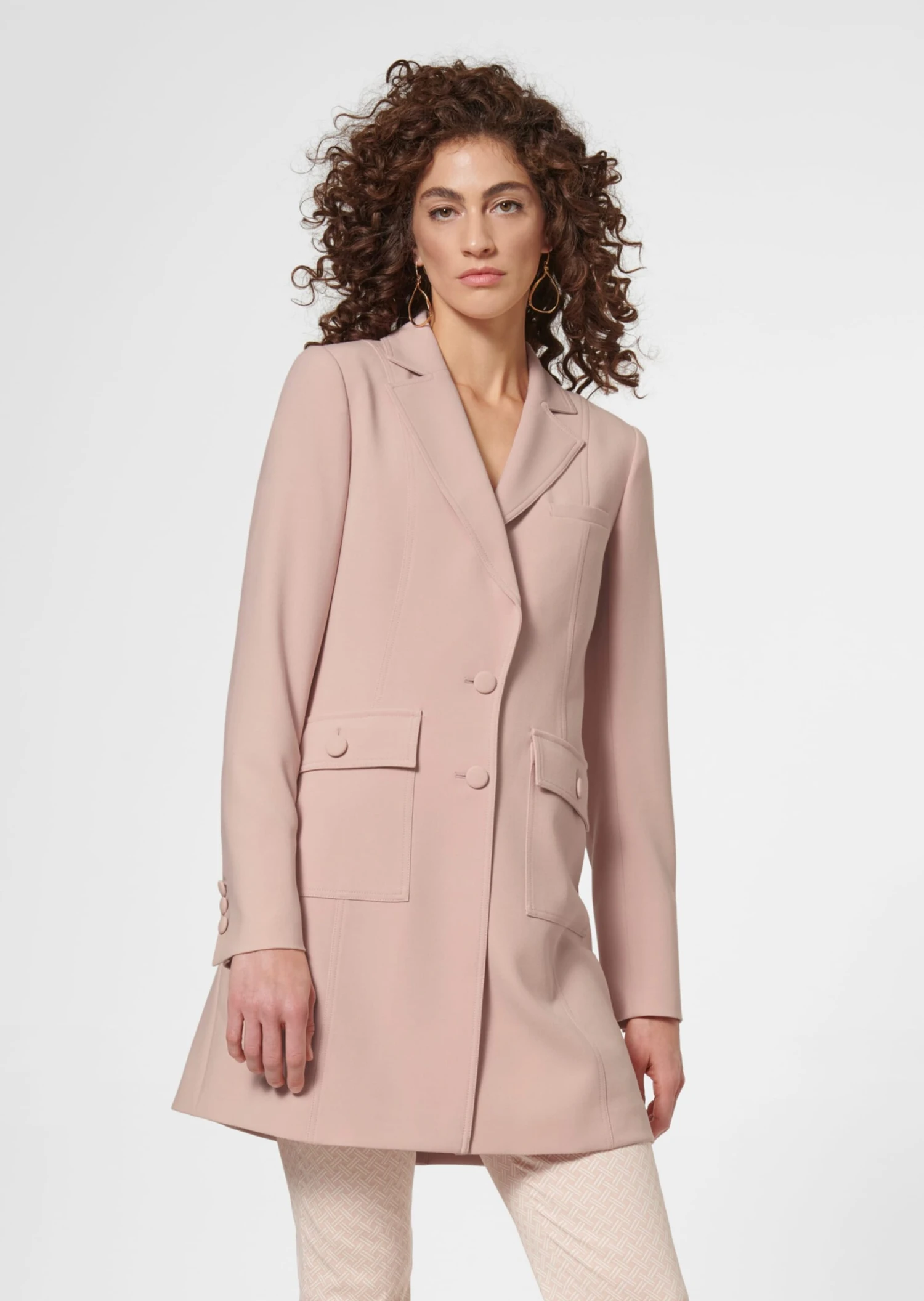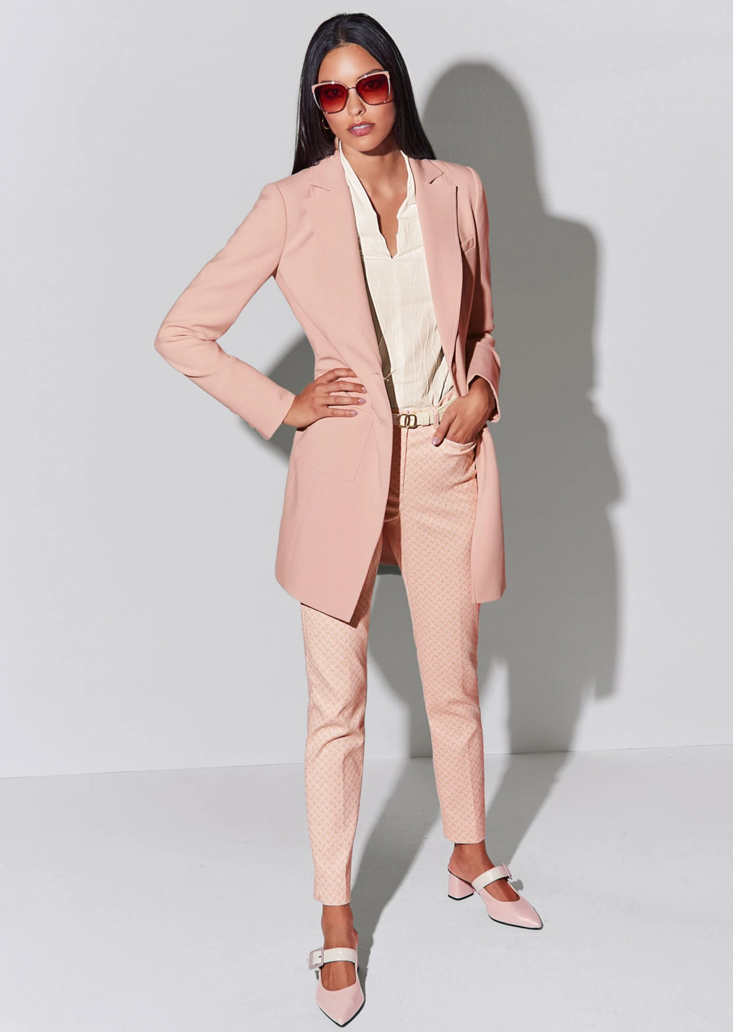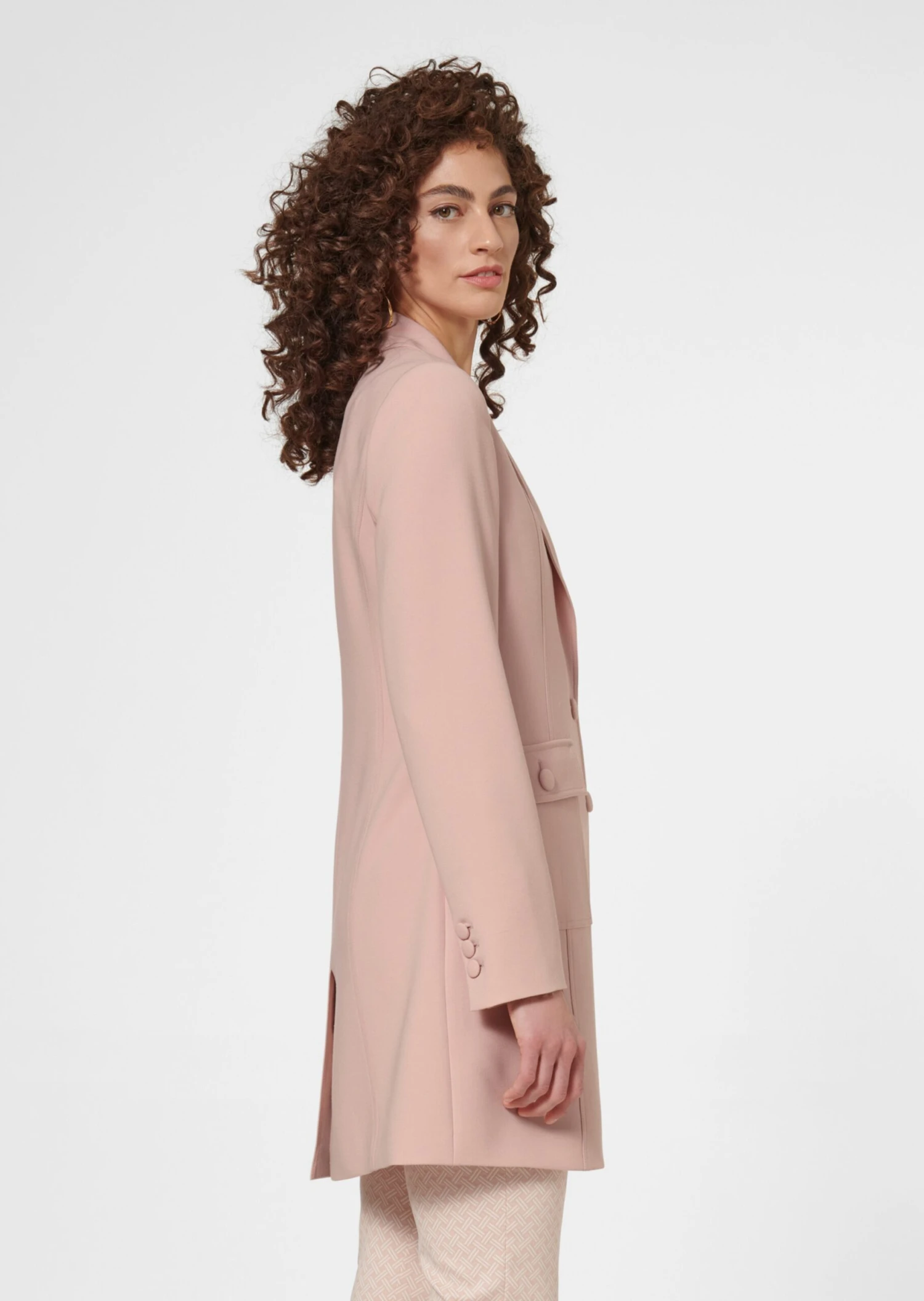 Der schmale Gehrock ist ein super Schlankmacher, egal, zu welchem Anlass! Die taillierte Longform ist zeitlos mit Reverskragen, Brustleistentasche und Knopf-Pattentaschen gestaltet. Ein rückseitiger Gehschlitz, ein Kettenaufhänger, Ärmelknopfleisten und stoffbezogene Knöpfe sind weitere Details. Kombinieren Sie den Longblazer zu schmalen Partnern für einen femininen, stilbetonten Look – im Büro oder privat. Er lässt sich prima zu tonigen und gemusterten Modellen tragen. Dieser Artikel wurde aufgrund des Einsatzes von recyceltem Material ressourcenschonend produziert.
