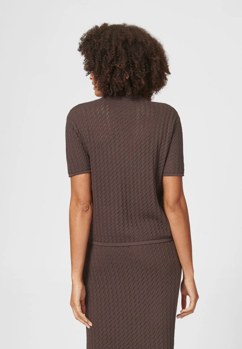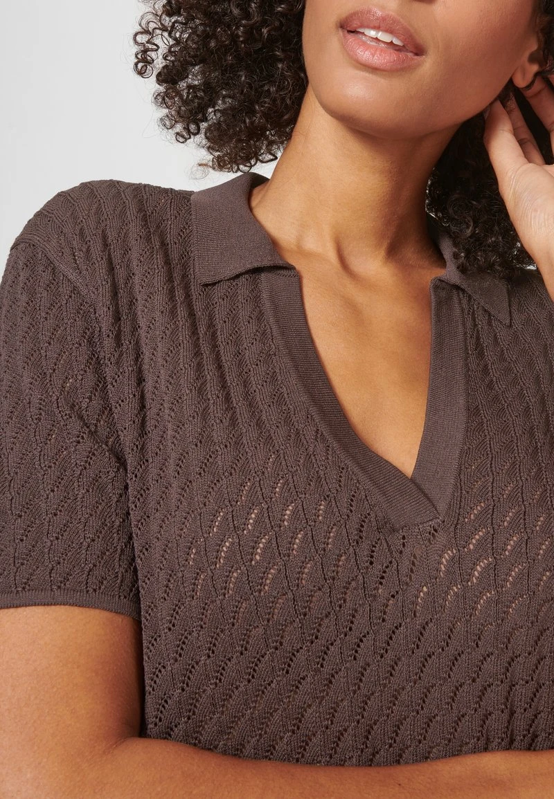 HALBARM AUS AJOUR-STRICK – Poloshirt – Mocca