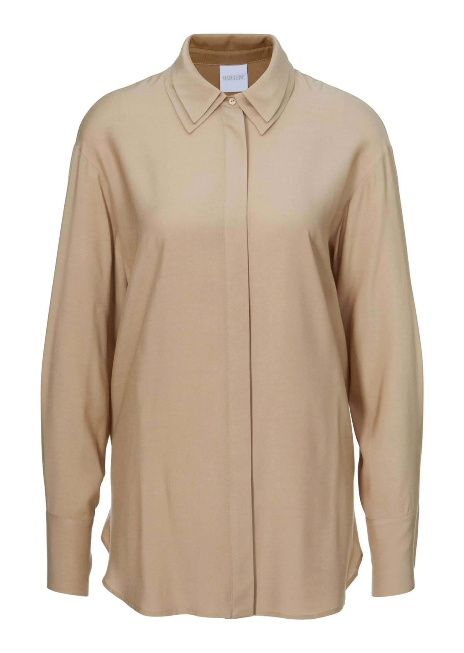 Das weiße Hemd gehört zu den Stil-Essentials jeder Garderobe. Diese Saison folgt es dem Trend zur Lässigkeit und setzt im Oversize-Style ein klares Statement. Die hochwertige Viskose-Qualität garantiert den weich fließenden Fall, aber auch das angenehme Tragegefühl. In figurumspielender Weite zeigt sich die Hemdbluse mit verdeckter Knopfleiste, Rückenpasse und Langarm mit breiter Knopf-Manschette. Der gedoppelte Hemdkragen verleiht dem Klassiker das modische Extra. Durch den gerundeten Saum mit Seitenschlitzen ist auch das Tragen über dem Bund möglich – einfach perfekt zu Slimline-Hosen! Ein Must Have und strahlender Mittelpunkt für jedes Kombi-Spiel – ob casual, businesslike oder eventfein am Abend.