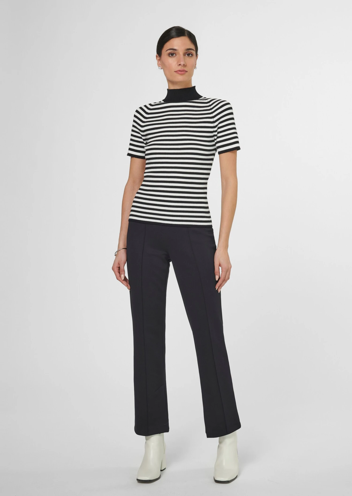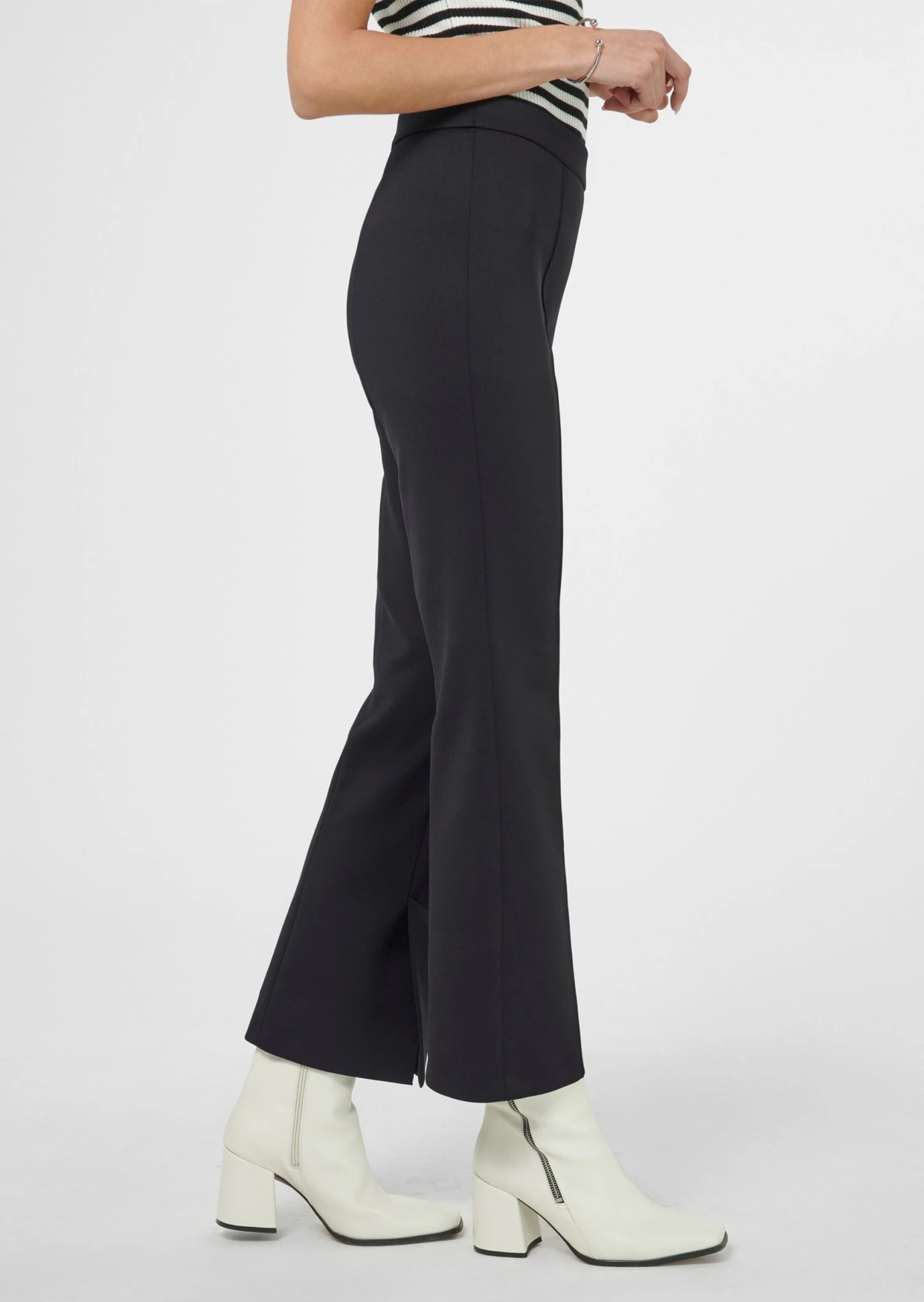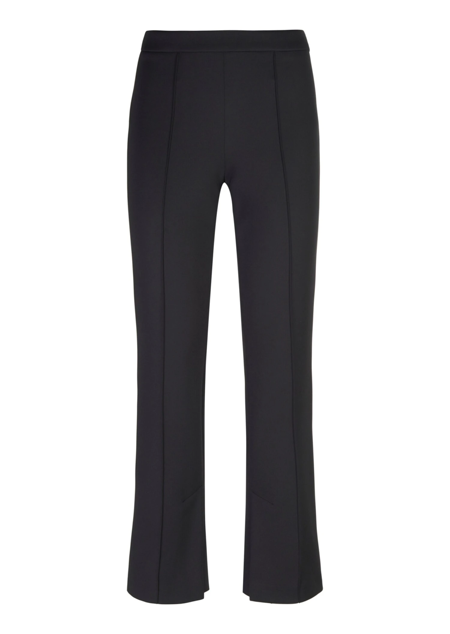 Eine gepflegte knöchellange Hose in knitterarmer Stretch-Qualität hat ihren festen Platz in der Mode. Mit Shirt und Sneakern kreiert man im Nu einen stylischen Casual Look. Die Hose ist gerade geschnitten, hat einen elastischen Bund und vorne eine abgesteppte Biese. Die Beinabschlüsse sind innen mit kleinen seitlichen Schlitzen gearbeitet.