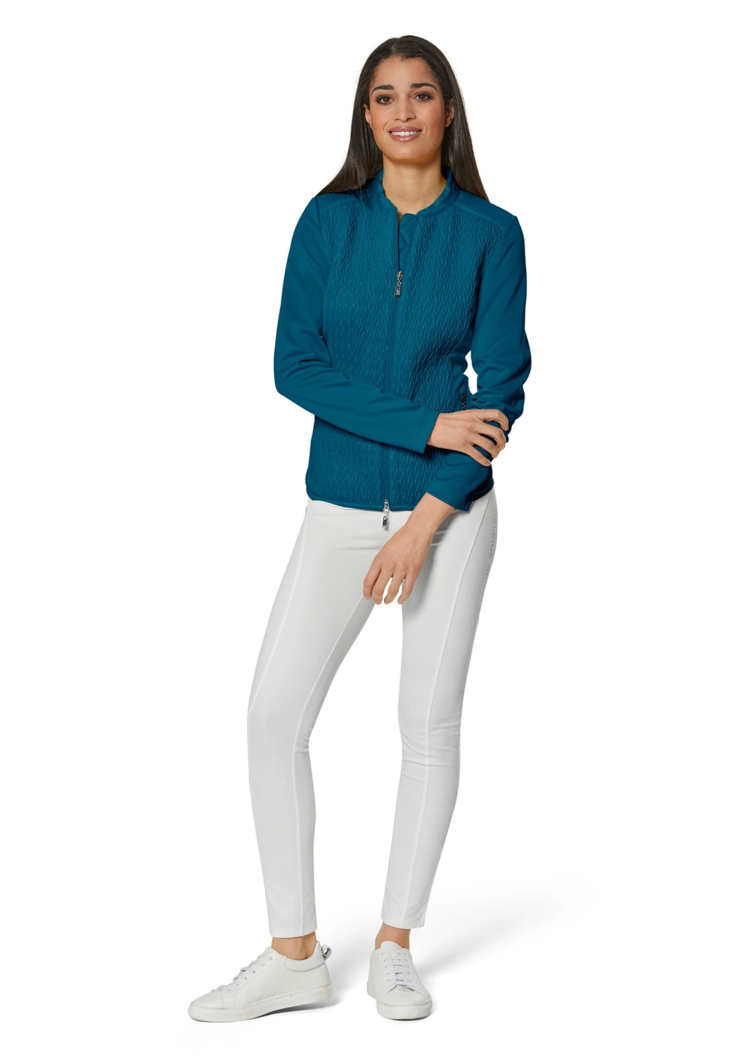 Eine satte Trendfarbe und modische Details machen die sportive Jacke zu einem Fashion-Gewinner. Für die schöne Struktur im Vorderteil sorgt der wattierte Zierstepp im Vorderteil. Teilungsnähte formen die schlanke Silhouette, die durch lange Ärmel, Stehkragen, 2-Wege-Frontzipper, Zippertaschen und wattierte Schulterpatte ergänzt wird.