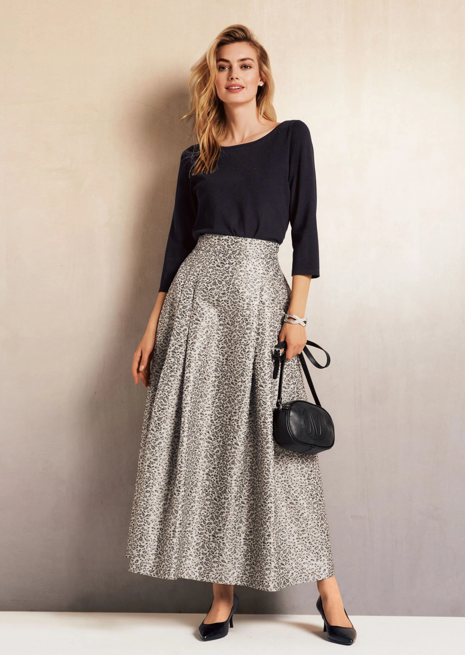 Hier begeistern die wertvolle Qualität und der feminine Style! Der Rock mit effektvoll aufspringenden Falten im Vorder- und Rückteil fasziniert mit seiner Silhouette und gibt gleichzeitig angenehme Bewegungsfreiheit. Der wertvolle Jacquard macht aus jedem Stück ein Unikat! Der ausgestellte Style ist mit rückseitigem Nahtzipper und Innenknopf-Sicherung gestaltet. Dank der edlen Farbkomposition können Sie ihn einfach kombinieren – sehr schön zu schwarzen, engen Oberteilen. Ob am Tag oder als Abendrock: Seine kostbare Aussage macht ihn zum Must-have.