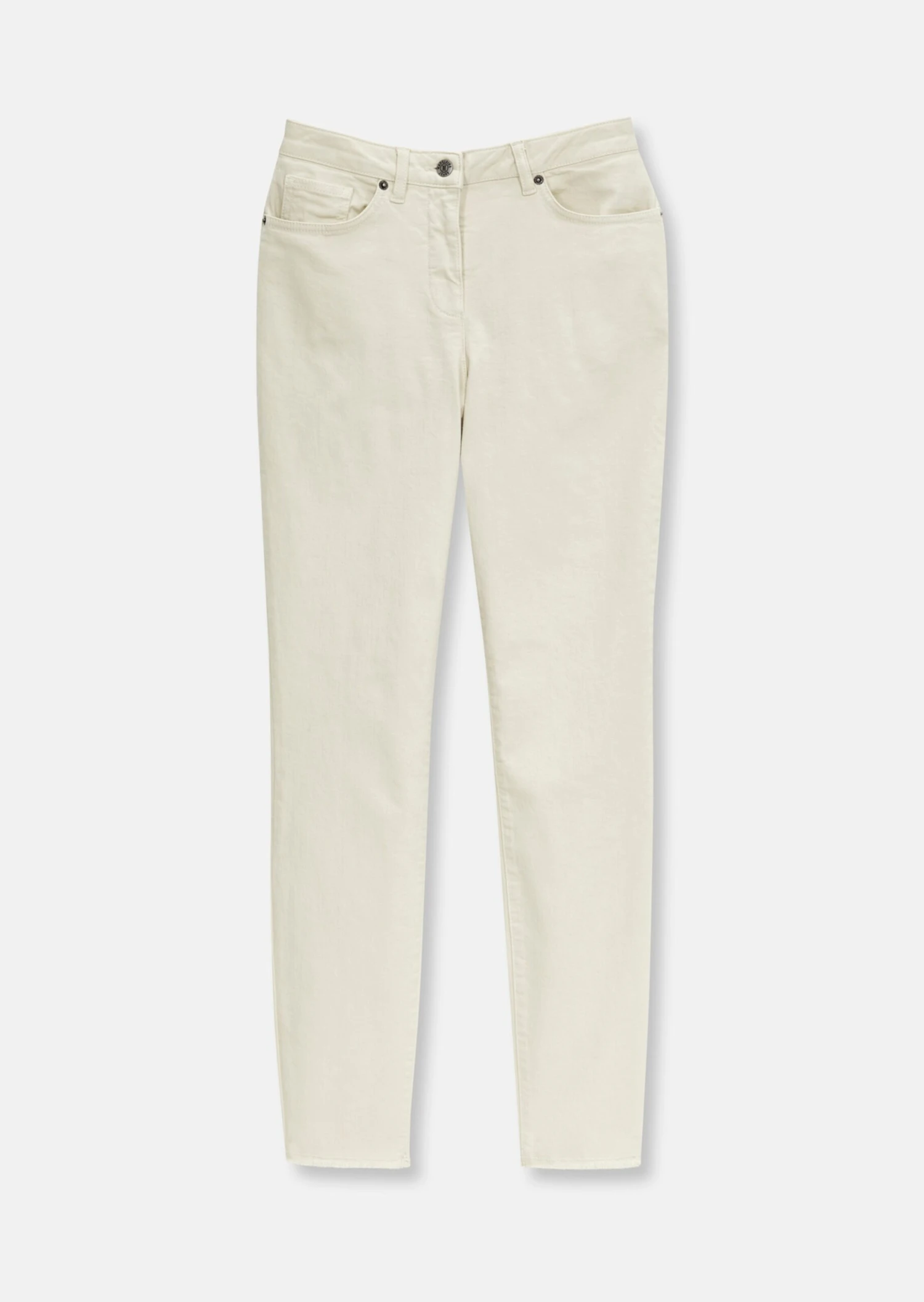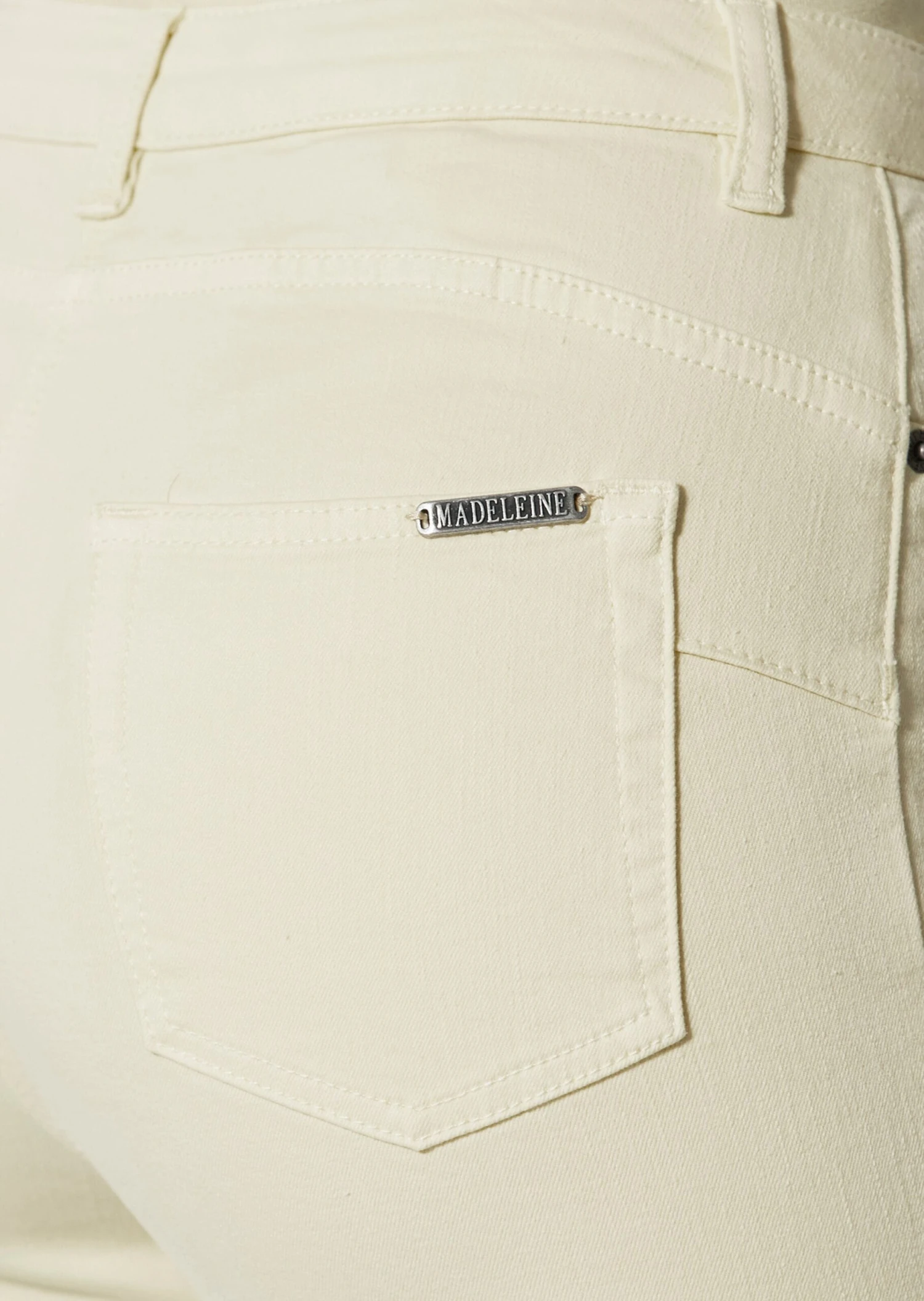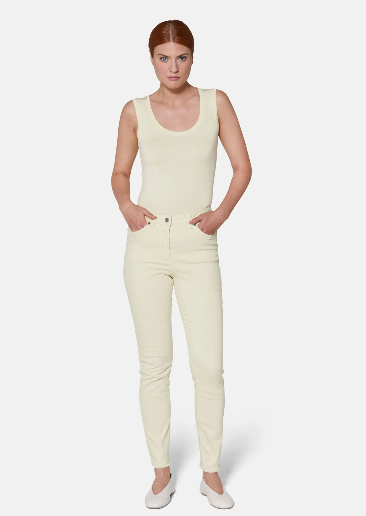 Eine Jeans im Skinny-Fit, die mit angesagten Fransen dem Lässigtrend der Saison folgt. Fransen sind jetzt auch bei Hosen ein großes Thema und setzen hier einen frechen Akzent. Im aktuellen Five-Pocket-Style und mit schmaler Silhouette zeichnet die enge Jeans eine lange Beinlinie und überzeugt mit gutem Sitz. Formstabil und trageangenehm ist sie eine Allrounderin der unterschiedlichsten Kombinationen und Anlässe. Hochwertig verarbeitet mit MADELEINE-Jeansnieten, Formbund, Gürtelschlaufen und Rückenpasse zeigt sie klassische Details. In zusätzlichen Kurzgrößen wird sie auch den Anforderungen kleinerer Frauen gerecht.