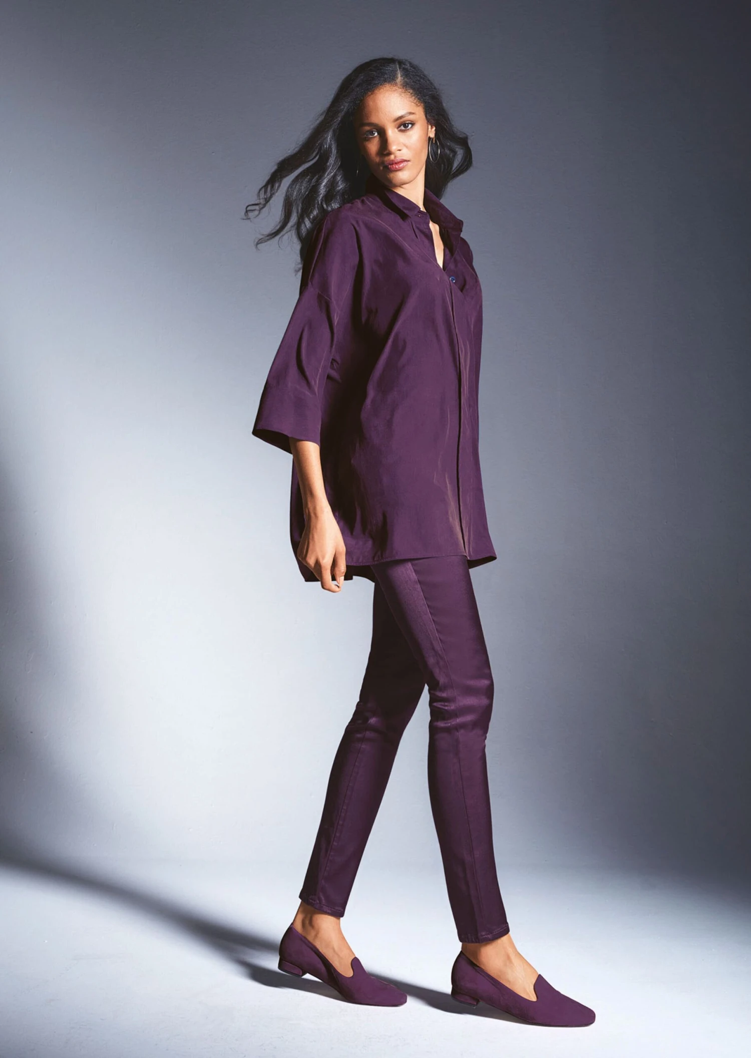 Ihr sanfter Glanz und ihr knackiger Sitz machen sie zur Stylingfavoritin! Die Jeans schimmert wertvoll im Licht und macht sowohl am Tag als auch am Abend eine prima Figur. Der schlanke, knöchellange 5-Pocketstyle zeichnet eine wunderbar schmale Linie. Wir haben sie im Label-Look mit Formbund, M-Knopf, Gürtelschlaufen, gerundeten Taschen, toniger Steppung und MADELEINE-Nieten gestaltet. Rückseitig ist sie mit V-Passe und aufgesetzten Taschen versehen. Durch 2 Größenläufe mit zusätzlichen Kurzgrößen können sie auch kleine Frauen prima tragen.