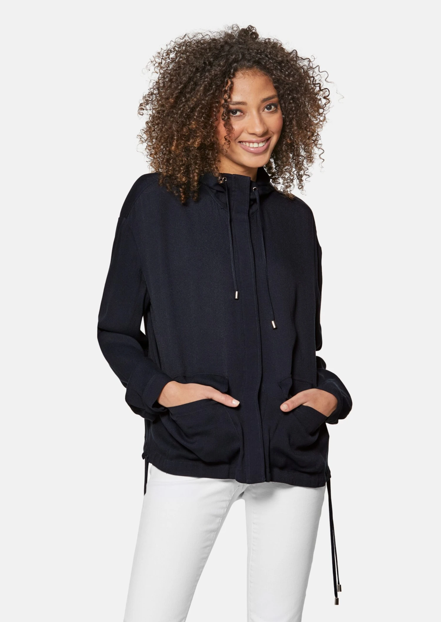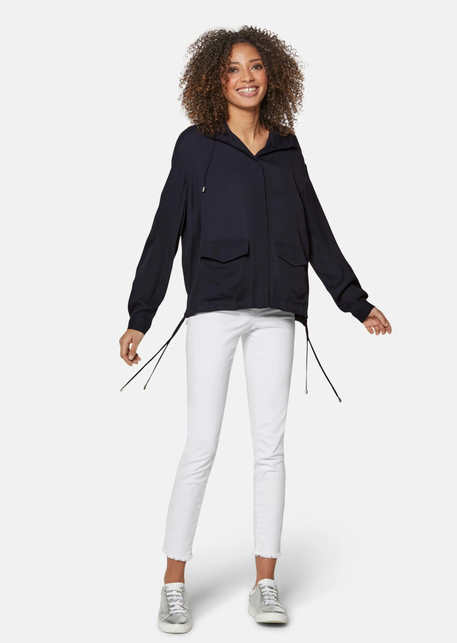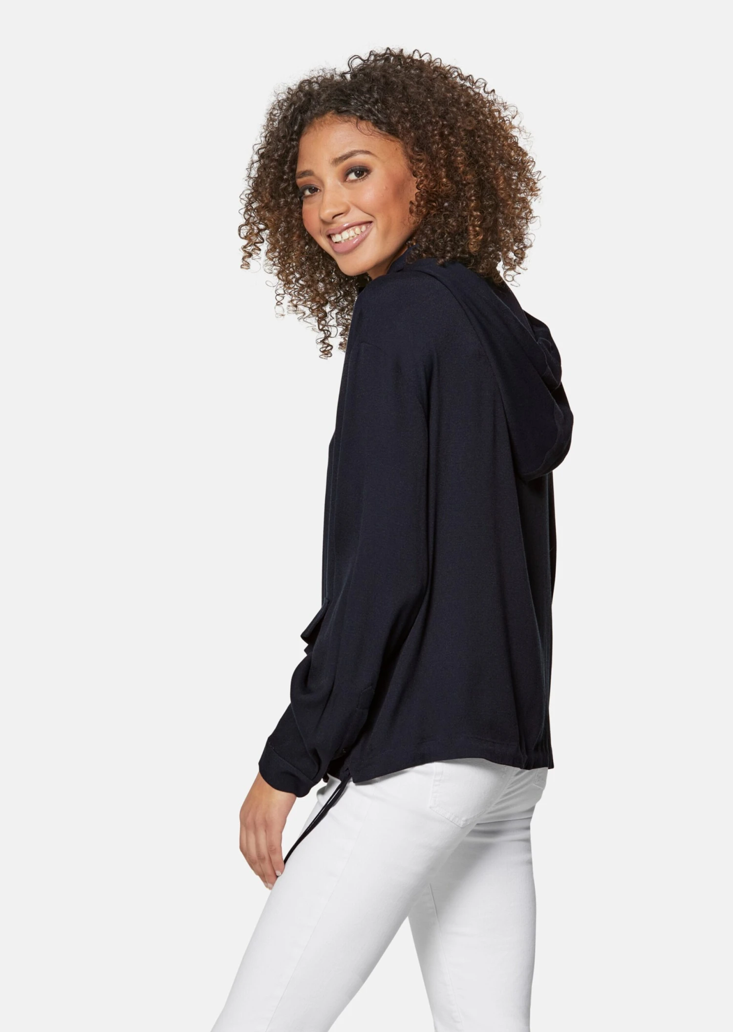 Ihr softes Trage-Gefühl, der lässige Kapuzen-Look und die angesagte Oversize-Silhouette machen die Bluse zum Must-have! Eine Trendpartnerin von cooler Modernität! Tunnelzüge mit Metallic-Abschlüssen machen Kapuze und Saum variabel und bringen Abwechslung in die Optik. Verdeckte Knopfleiste, lange Ärmel mit Manschetten und aufgesetzte Pattentaschen machen den Style komplett.