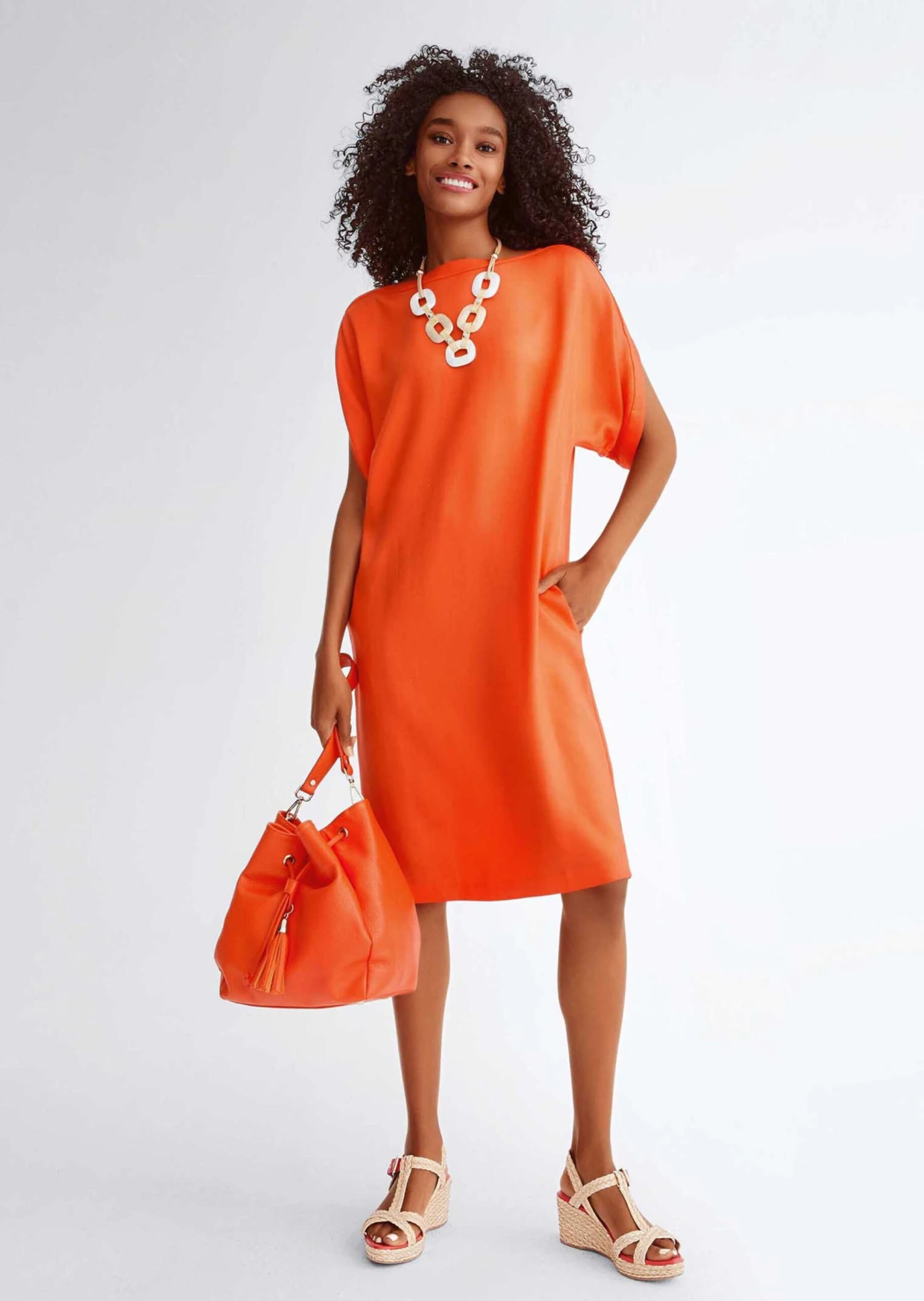 Ein Kleid, das mit seiner lässigen Silhouette den Trend setzt. Das leichte, weite Sommerkleid ist in angesagter H-Linie geschnitten und modern mit weitem U-Boot-Ausschnitt, überschnittenen Ärmeln, Taschen und rückseitigem Knopfverschluss gestaltet. Die leichte Sommerqualität trägt sich äußerst angenehm an warmen Tagen. Egal, was Sie gerade planen: Das Kleid im dezenten Oversizedstyle ist ein Eyecatcher.