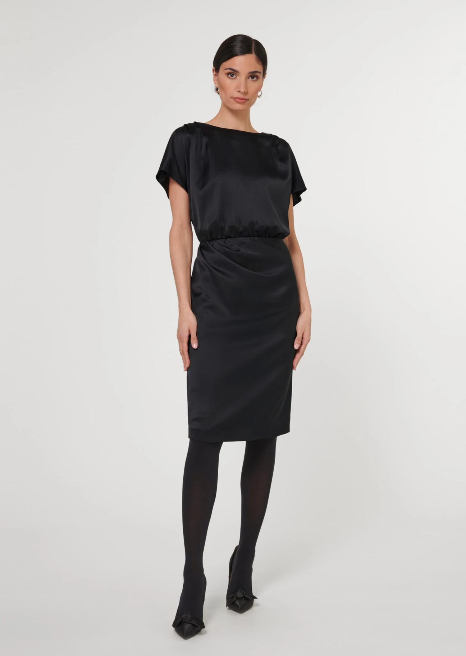 Ob Cocktail-Event, Dinner-Date oder Party – mit diesem wunderbar weiblichen Kleid glänzen Sie immer. Das Kleid ist sehr schick in taillierter Form mit rundem Ausschnitt, überschnittener Schulterpartie und schlankem Bleistiftrock designt. Es wird hinten mit einem verdeckten Reißverschluss geschlossen.