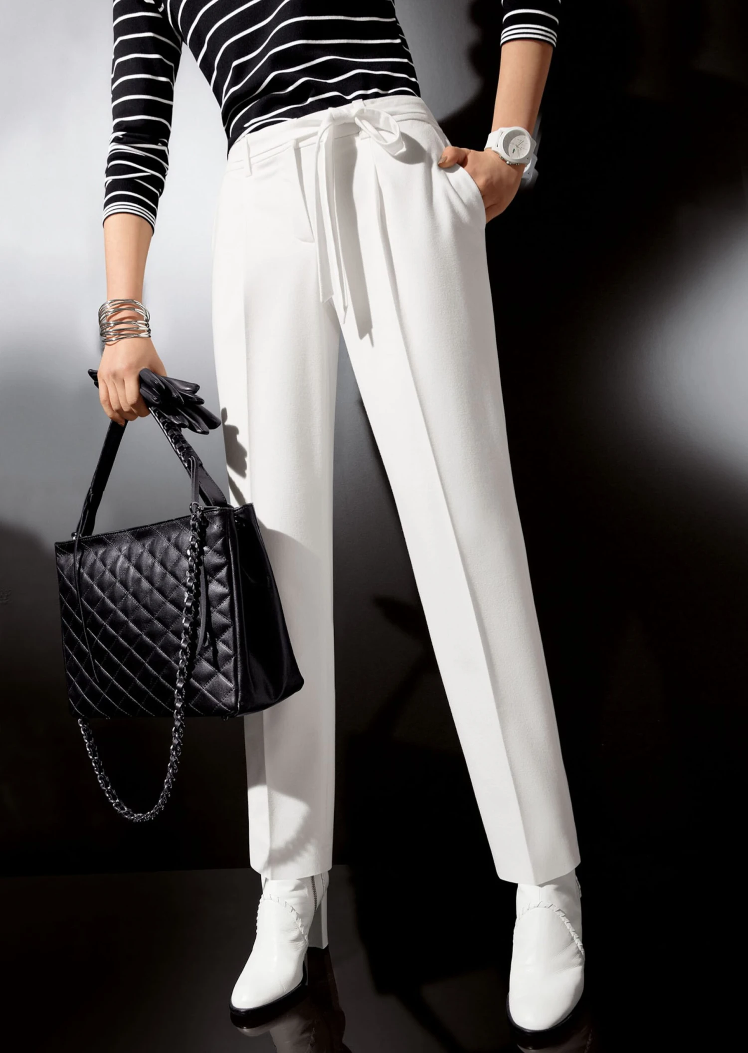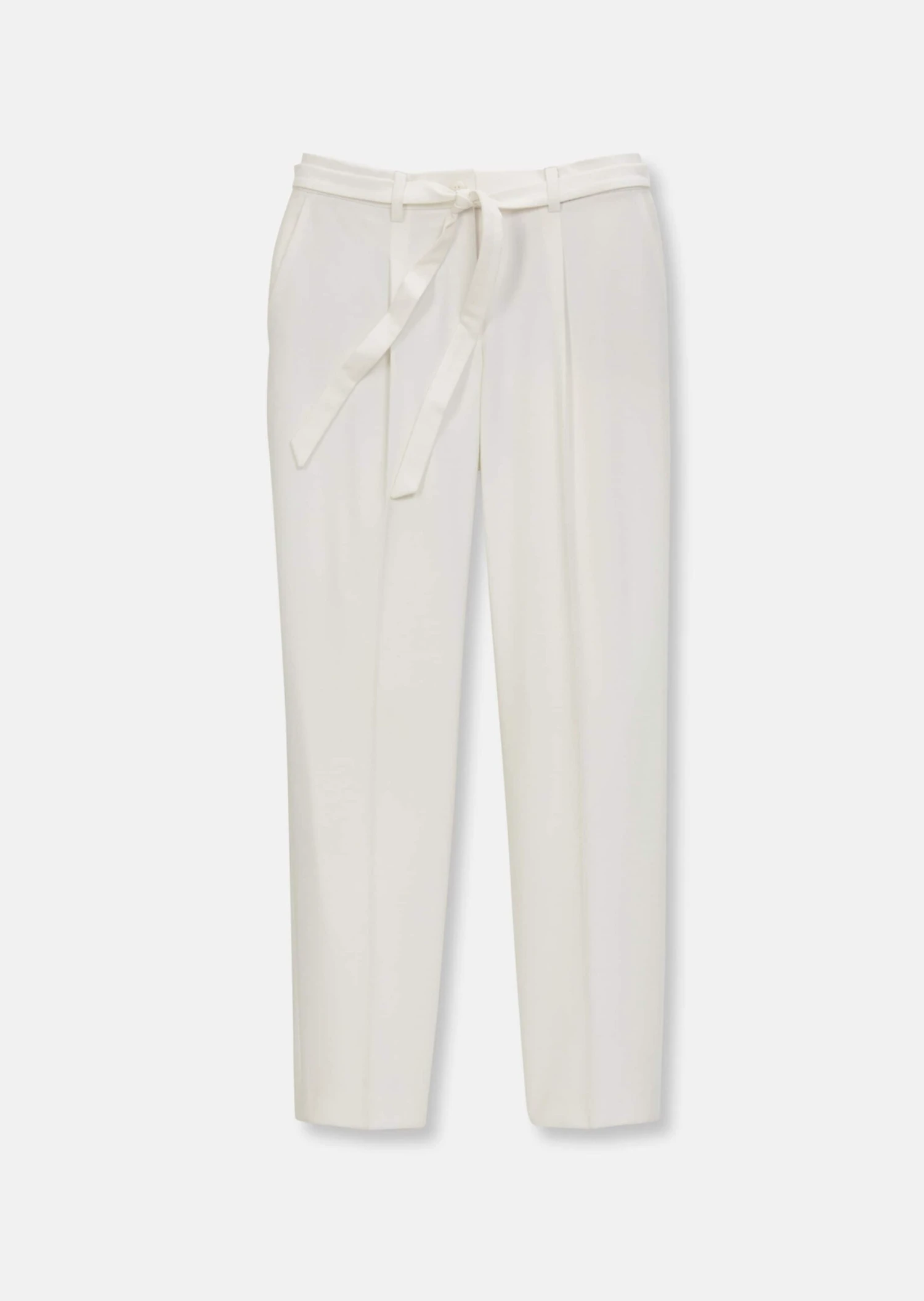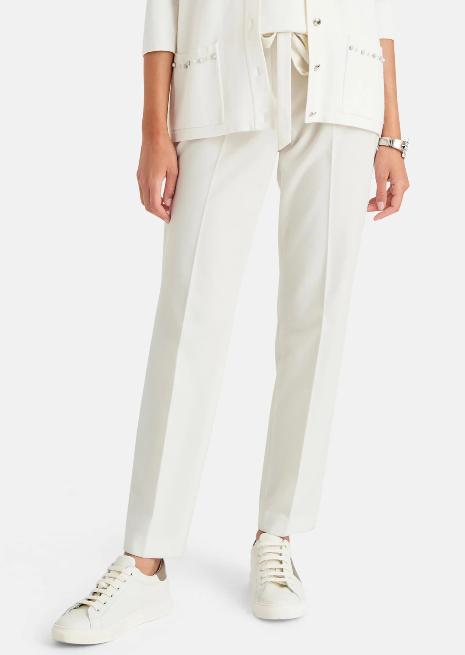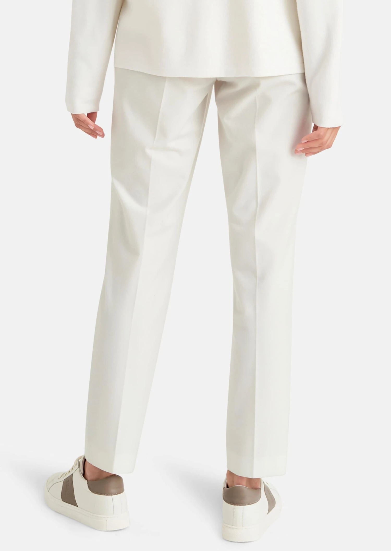 Eine Bundfaltenhose, die in angesagter Knöchellänge ihr Stilstatement setzt. In modisch verkürztem Style transportiert sie die lässige Eleganz der neuen Businesshosen. Die beliebte Ceramica-Qualität überzeugt mit ihrer edlen Oberfläche, ihren angenehmen Trageeigenschaften und ihrem pflegeleichten Charakter. So ist sie auch auf Geschäftsreisen eine zuverlässige Begleiterin der unterschiedlichsten Termine. Mit Bundfalte, Bügelfalte, Schubtaschen und angedeuteten Gesäß-Paspeltaschen zeigt sie Stil und Klasse. Eine exakte Passform sichert der Formbund mit abnehmbarem Bindeband, Gürtelschlaufen und Komfortbund im Rückteil. Ergänzen Sie die knöchellange Bundfaltenhose zu geschmeidigen, luxuriösen Oberteilen und offiziellen Partnern für einen eleganten Auftritt in Meeting & Co.