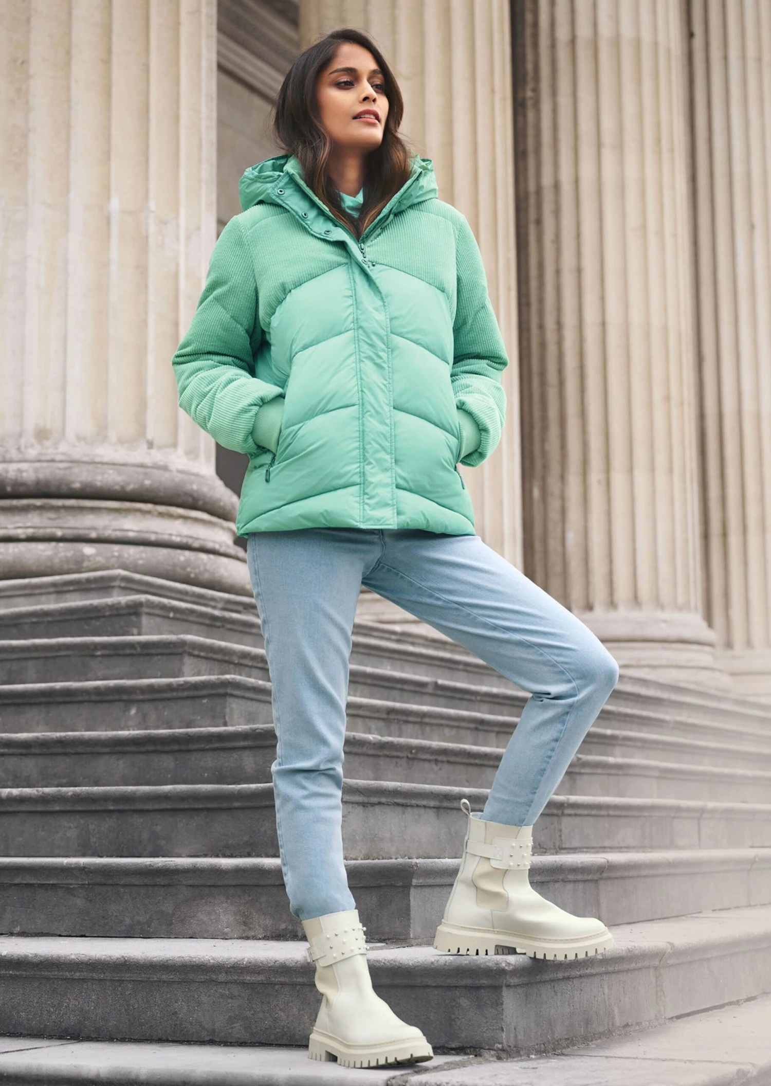 Kein Casual-Style ohne Jeans! Diese Saison sorgt sie in heller Bleached-Waschung für ein modisches Statement. Ein superlässiger 5-Pocket-Style, der durch M-Jeansknopf und Nieten, einer rückwärtigen Formpasse und einem Formbund mit Gürtelschlaufen ergänzt wird. Die knöchellange schmale Jeans ist für jede Stylingidee zu haben und garantiert durch Stretch-Anteil einen super Sitz.