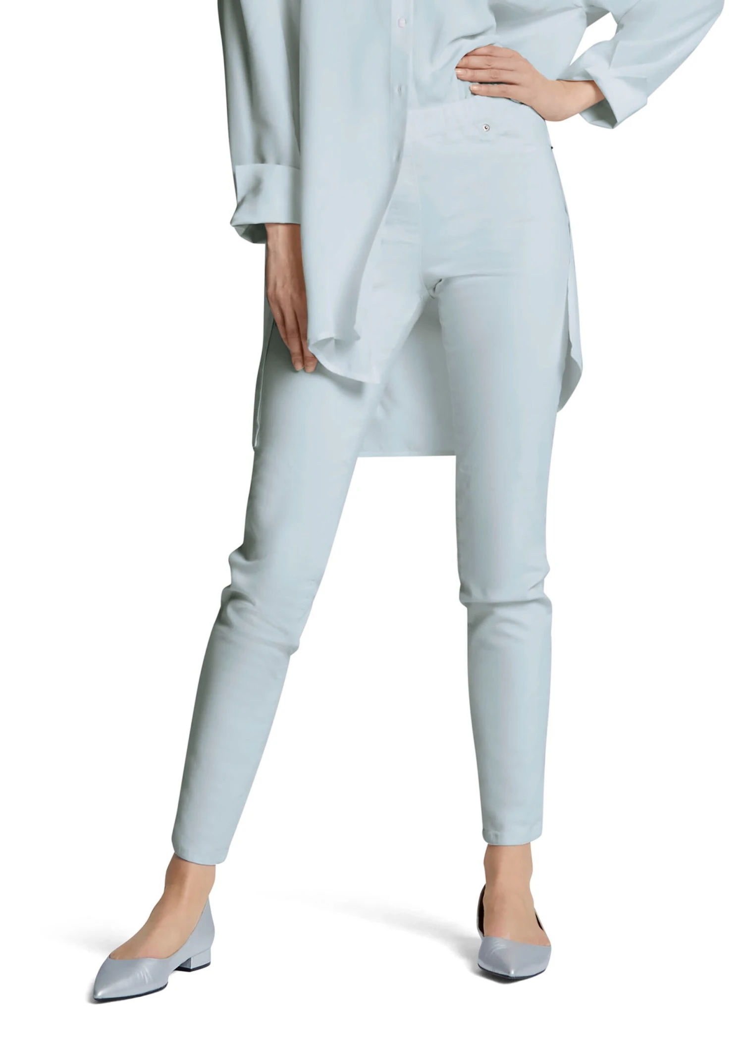 Trend auf komfortablem Niveau. Die Jeggings ist der Garant für eine superschlanke Linie. Durch Elasthan-Anteil schmiegt sie sich der Silhouette wunderbar an und schenkt zugleich ein rundum bequemes Tragegefühl. Modisch verkürzt zeigt sich die Hose in aktueller 5-Pocket-Optik und ist mit aufgesetzten Gesäßtaschen gestaltet. Die Fronttaschen sind nur angedeutet, so trägt die Hose auch unter langen, figurbetonten Oberteilen nicht auf. Tonige Steppnähte runden den Look gekonnt ab. Eine Basic-Hose, die Sie lieben werden – vielseitig kombinierbar und perfekt für das spannende Silhouetten-Spiel.