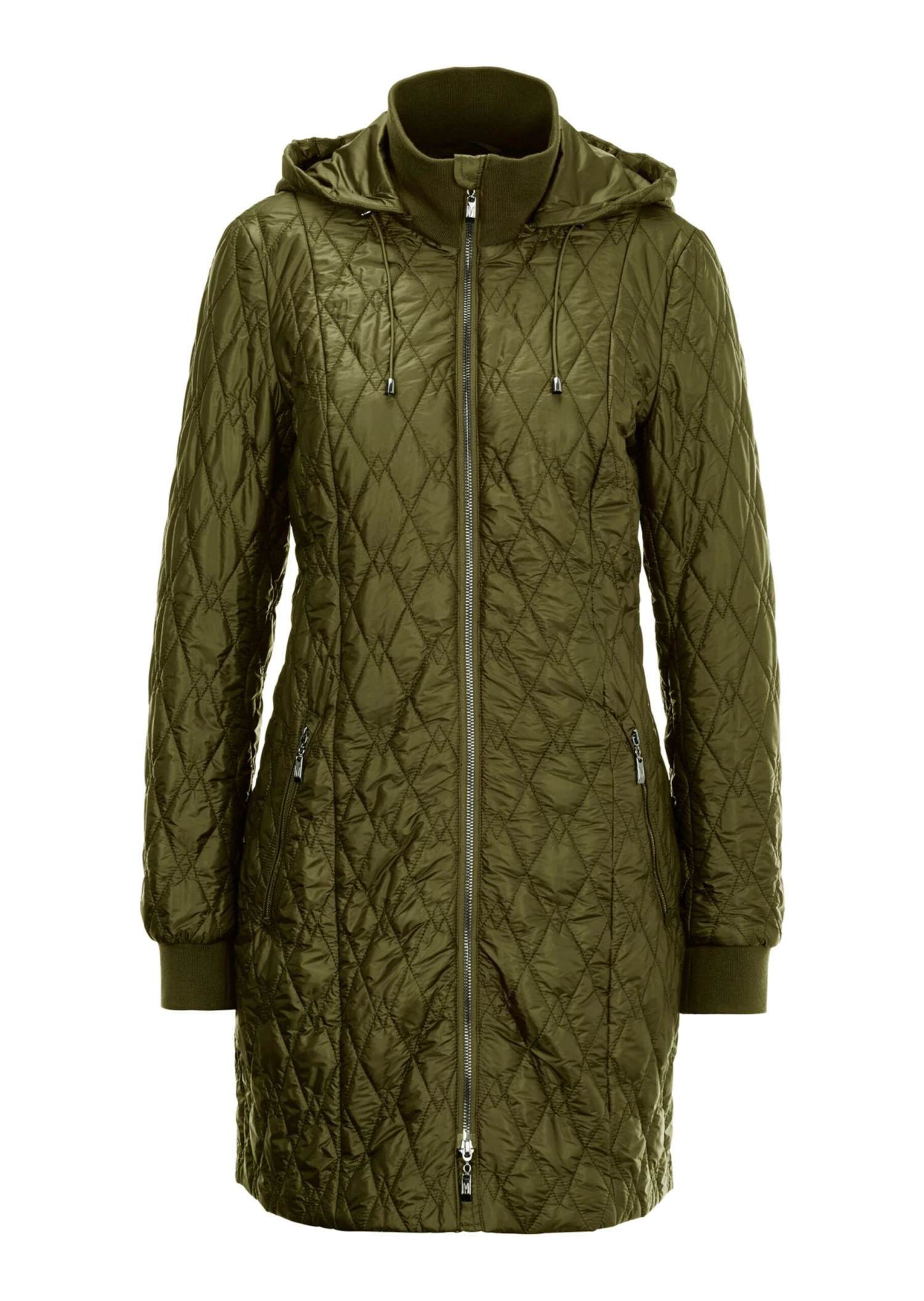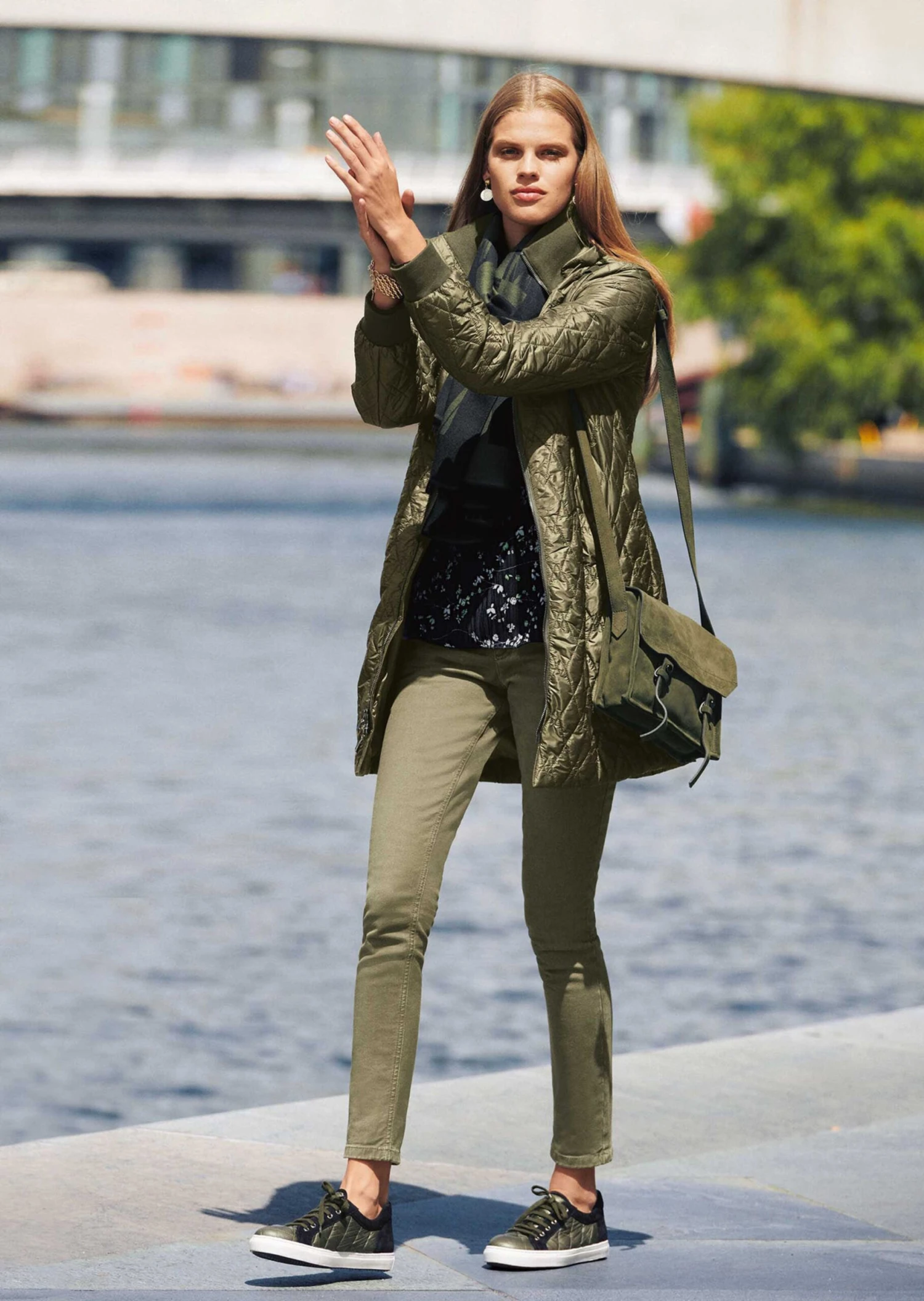 Wer sich für den Übergang einen Mantel wünscht, der funktional und zudem cool und trendy ist, sollte sich dieses stylische Leichtstepp-Modell in schöner Glanz-Qualität zulegen. Das Design: Der Kurzmantel ist leicht wattiert, hat einen schmeichelnden Strickkragen, eine abzippbare Kapuze mit Tunnelzug, einen praktischen 2 Wege-Zipper, 2 schräge Zippertaschen, lange Ärmel mit Rippstrickbündchen und einen Kettenaufhänger. Sein schön schlanker Style wird durch formgebende Nähte vorne und hinten unterstrichen.