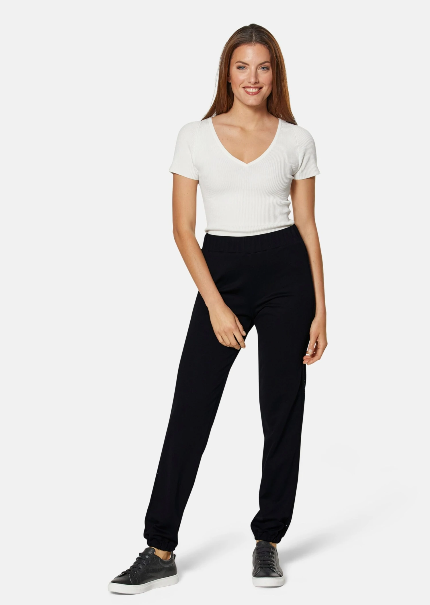 Urlaub, Spa-Wochenende oder Zuhause – diese Hose garantiert überall einen lässig entspannten Auftritt. Für den Touch Glamour sorgt das seitlich aufgesetzte Zierband mit tonigen Strasssteinchen. Komfortbund und Bündchen am Beinsaum runden den Look ab. Ein edler Kombipartner in Wohlfühlqualität – weich, elastisch und hautsympathisch.