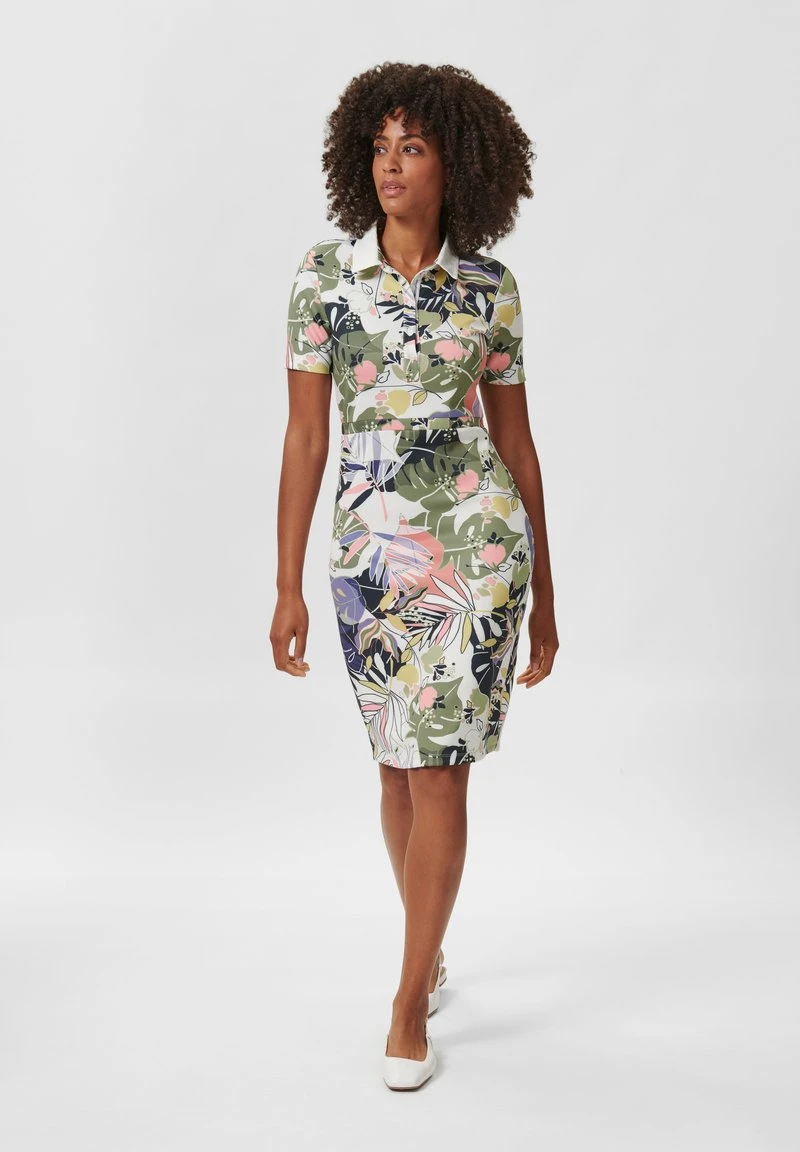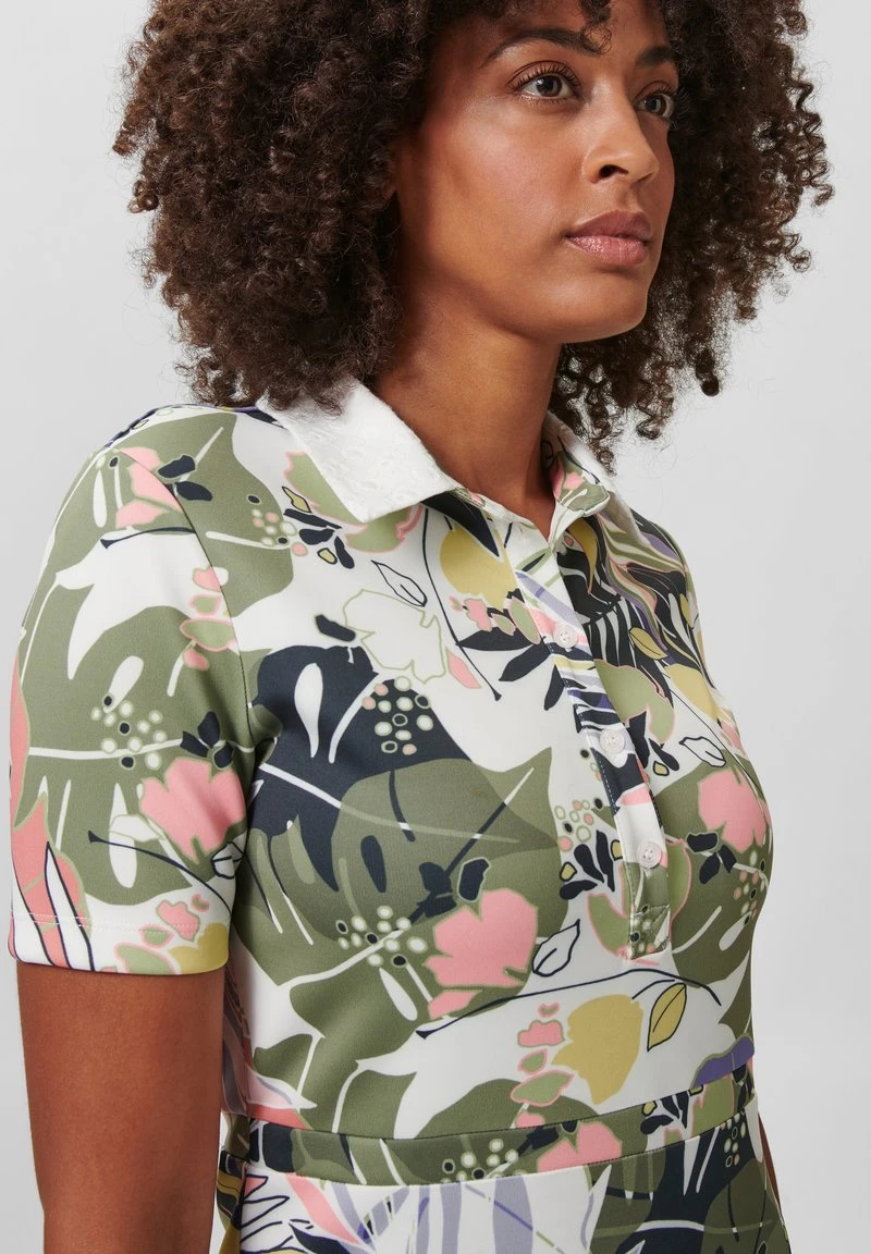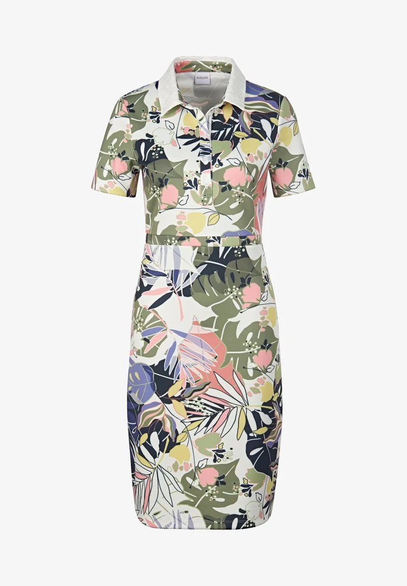 MIT ABSTRAKTEM BLUMENPRINT UND SPITZENKRAGEN – Blusenkleid – Weiß Multicolor