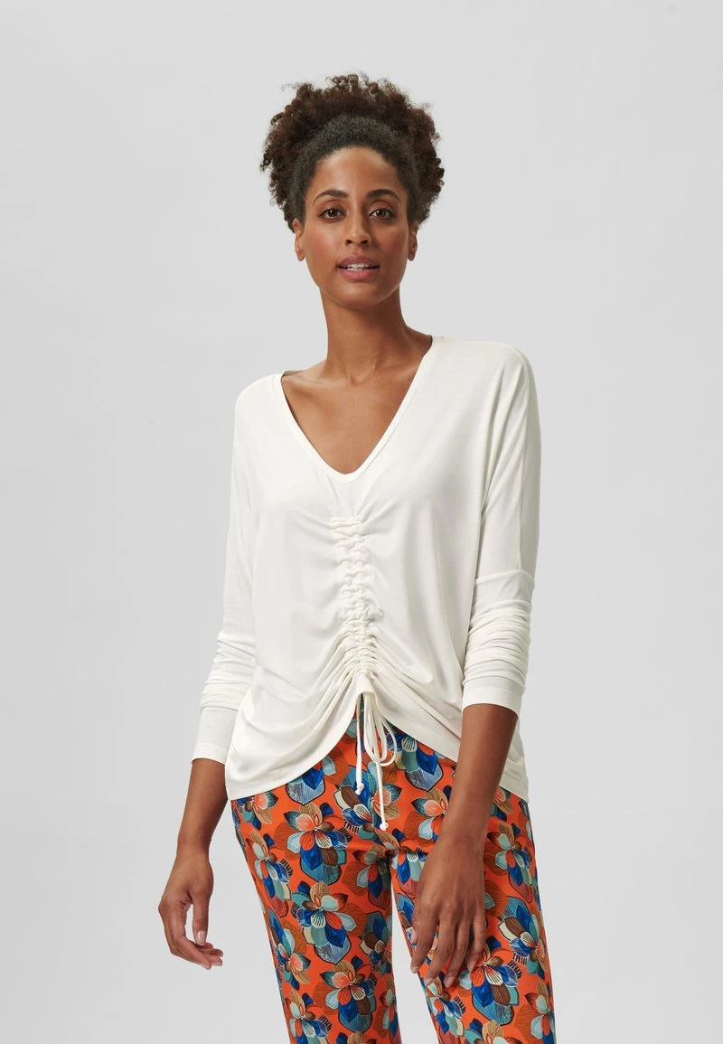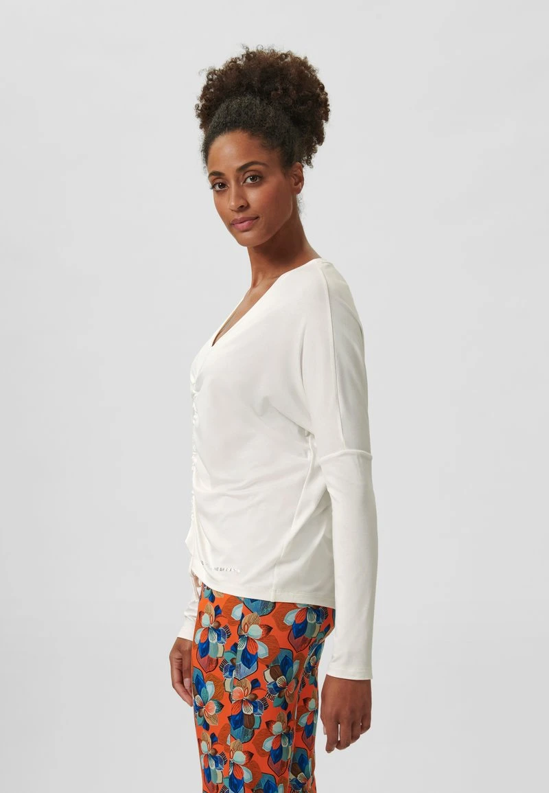 MIT FLEDERMAUSÄRMEL UND RAFF-EFFEKT – Langarmshirt – Creme