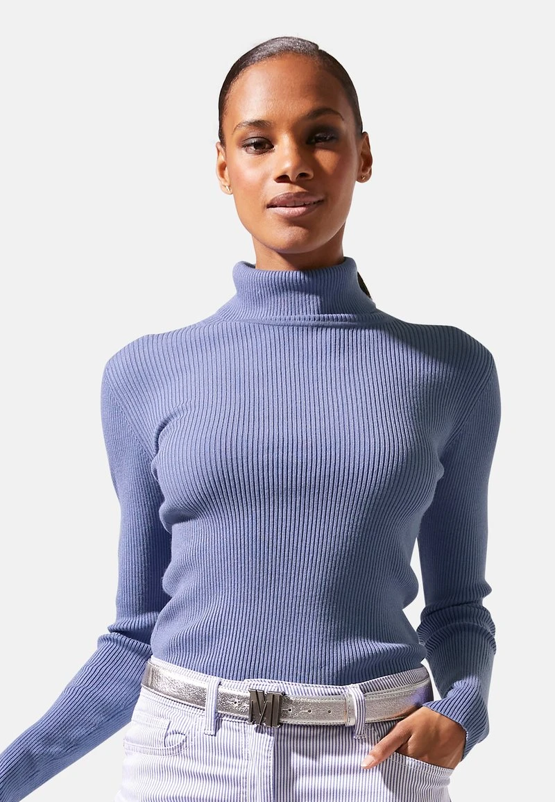 MIT ROLLKRAGEN – Strickpullover – Taubenblau