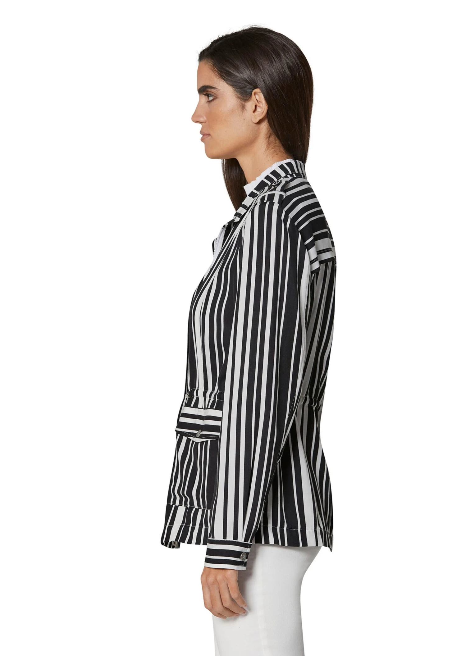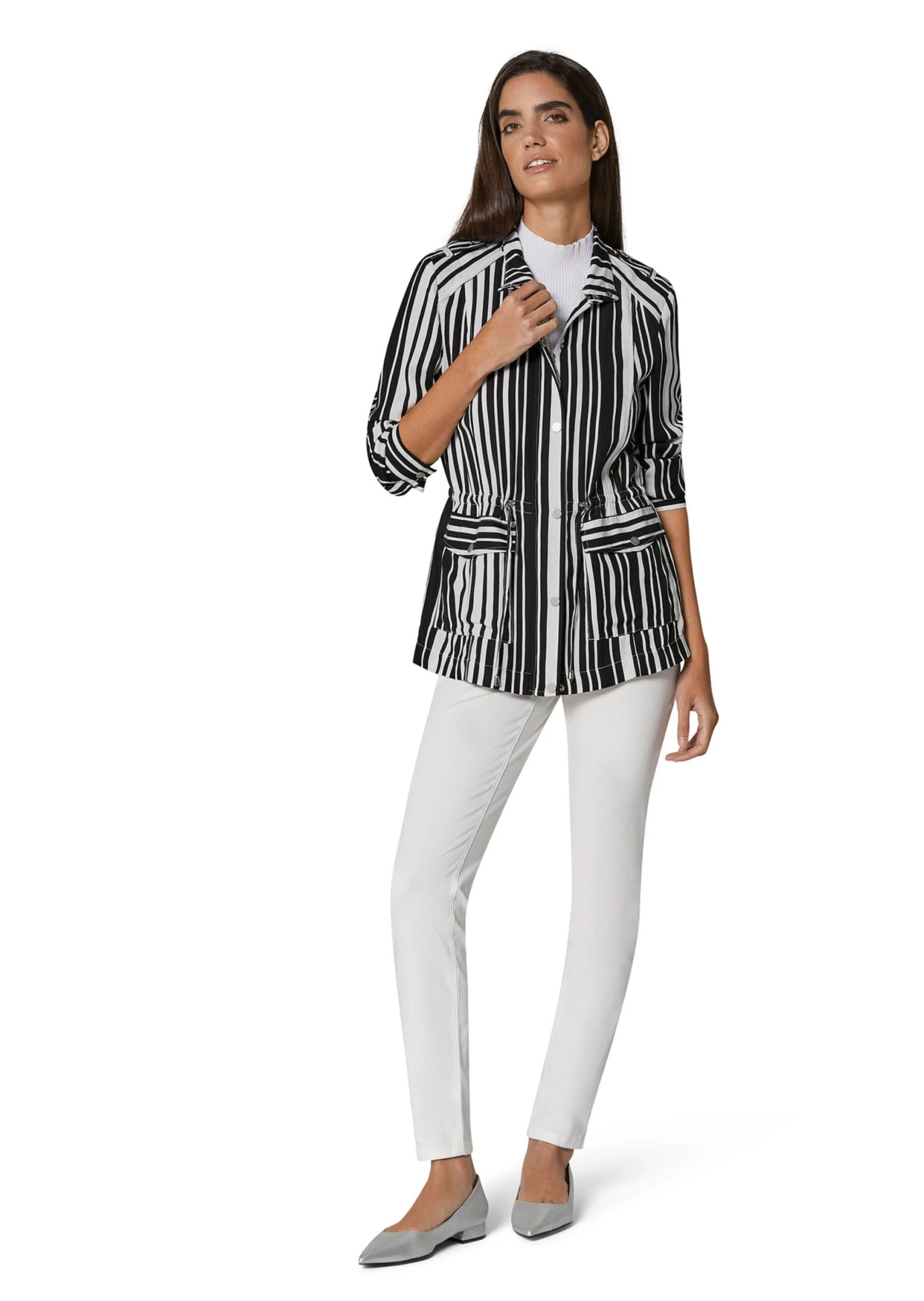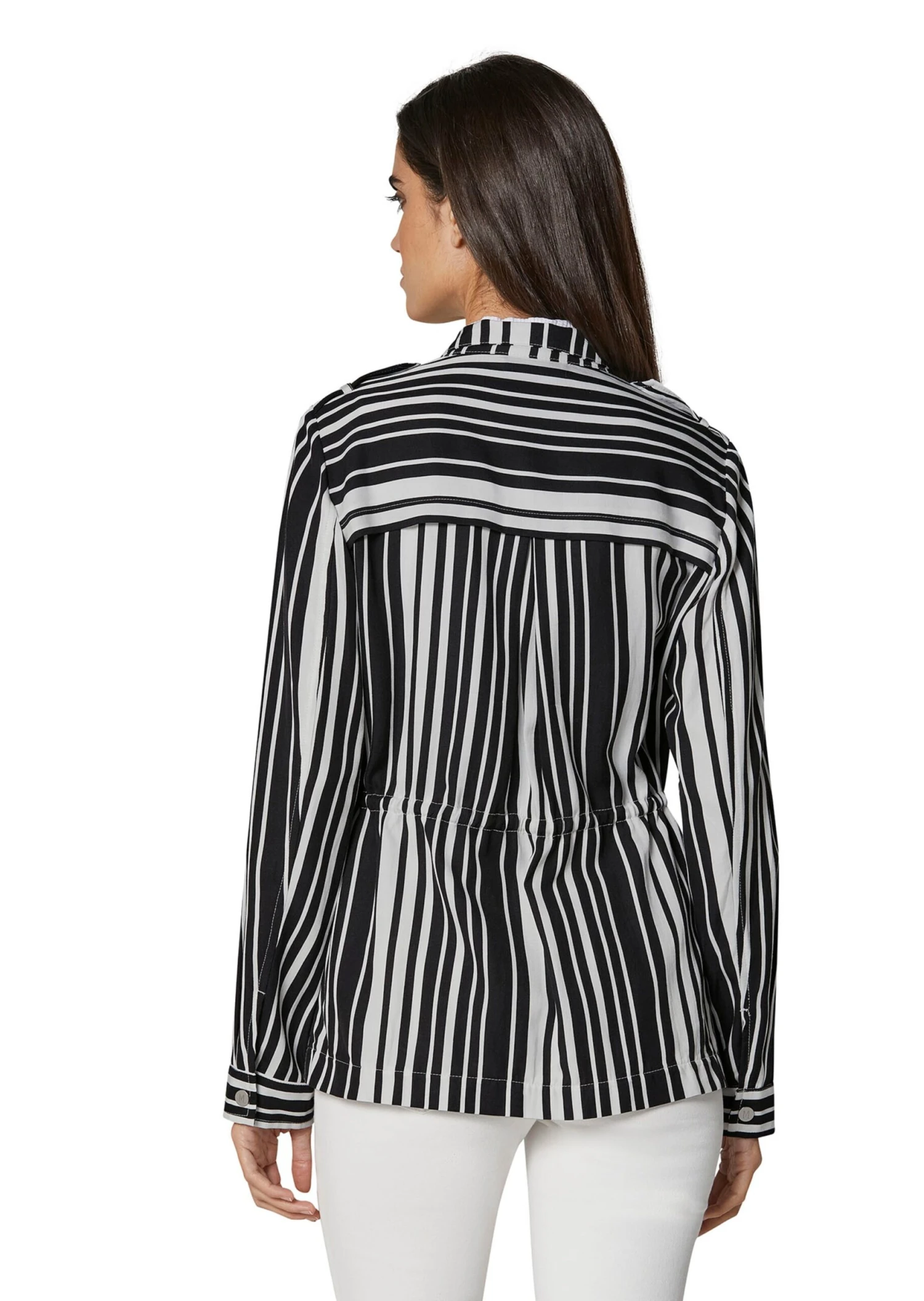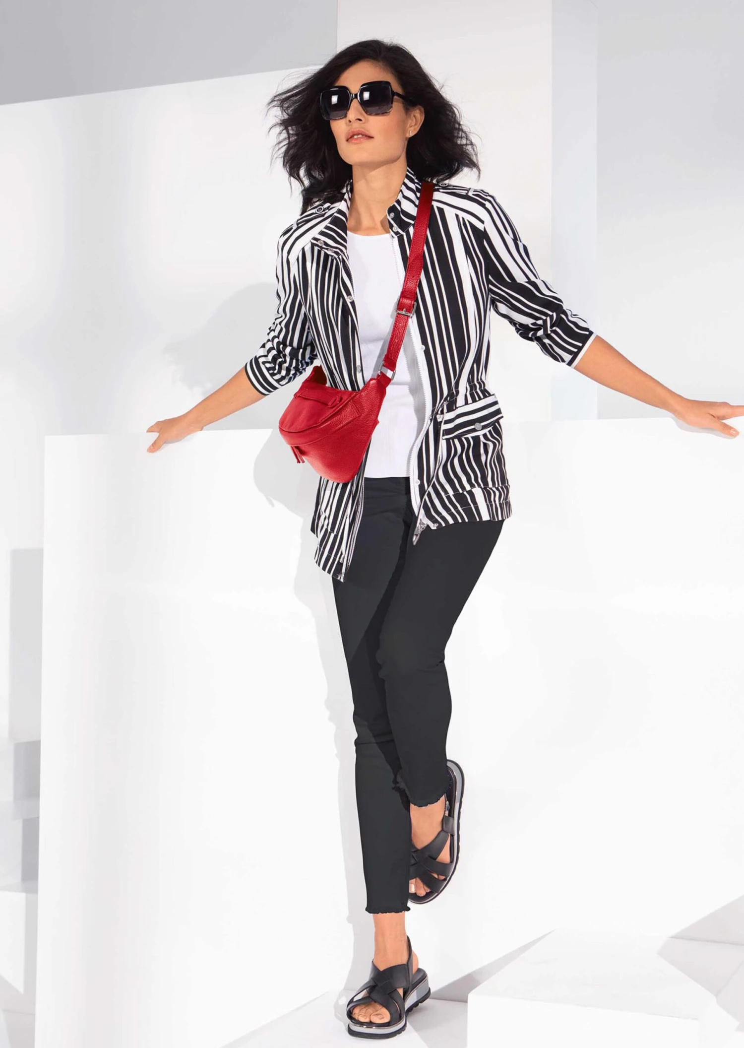 Die gelungene Mischung aus Jacke und Bluse macht diese Outdoorjacke zu einem echten Fashion-Favorit – und ultraleichten Begleiter durch den Sommer. Viele sportive Details prägen den lässigen Casual-Stil. Leger im Schnitt zeigt sich die Jacke mit verdecktem 2-Wege-Zipper, Druckerleiste, schließbarem Stehkragen, aufgesetzten Pattentaschen mit Druckknopf und langem Ärmel mit Druckknopf-Manschette. Der variable Tunnelzug auf Taillenhöhe bringt die Leichtjacke feminin auf Figur. Das Modell ist ungefüttert verarbeitet – so kommt der hochwertige Qualitäts-Mix perfekt zum Tragen.