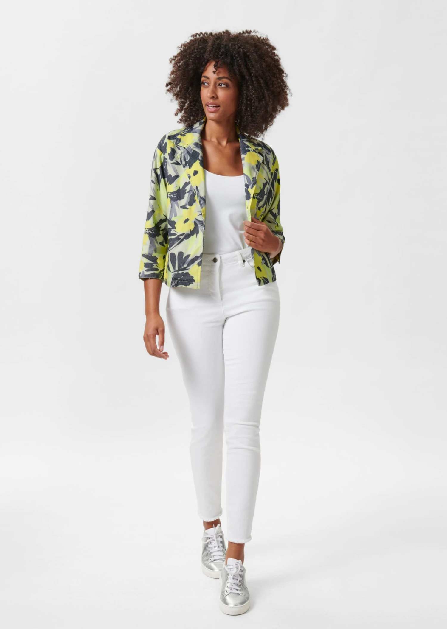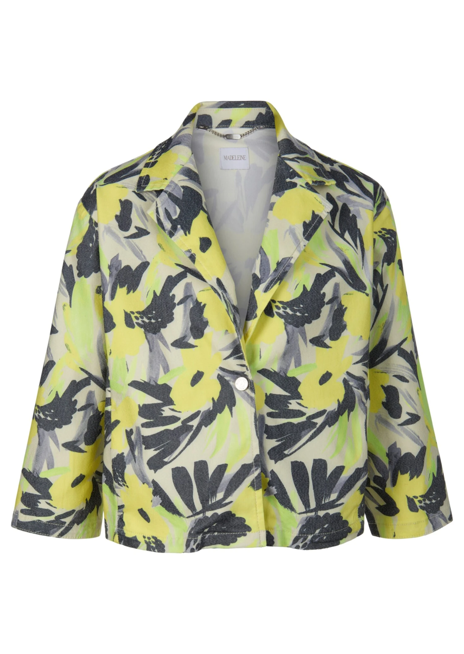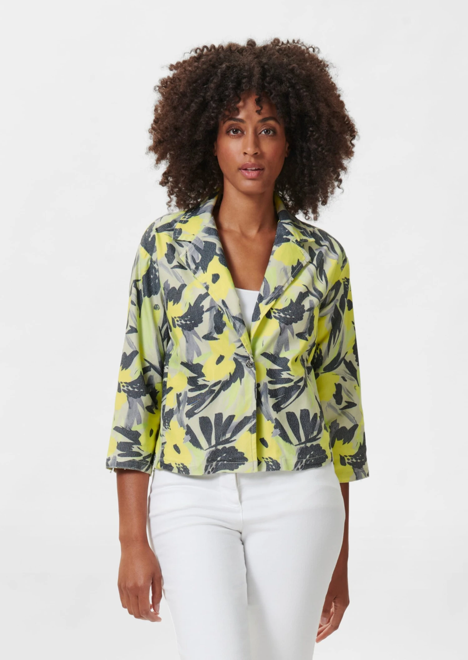 Es muss nicht immer Blue Jeans sein! Diese Saison setzt sich die Jeansjacke mit einem abstrakten Blumenprint stylish in Szene. Ultralässig der Oversized-Style mit 1-Knopf-Verschluss, Reverskragen, überschnittener Schulter, Nahttaschen und 3/4-Ärmel mit Saumschlitz. Ein Traumpartner für den Casual-Look – ungefüttert und tragebequem. Nachhaltige Baumwolle durch den reduzierten Einsatz von Wasser, Dünger und Pestiziden.