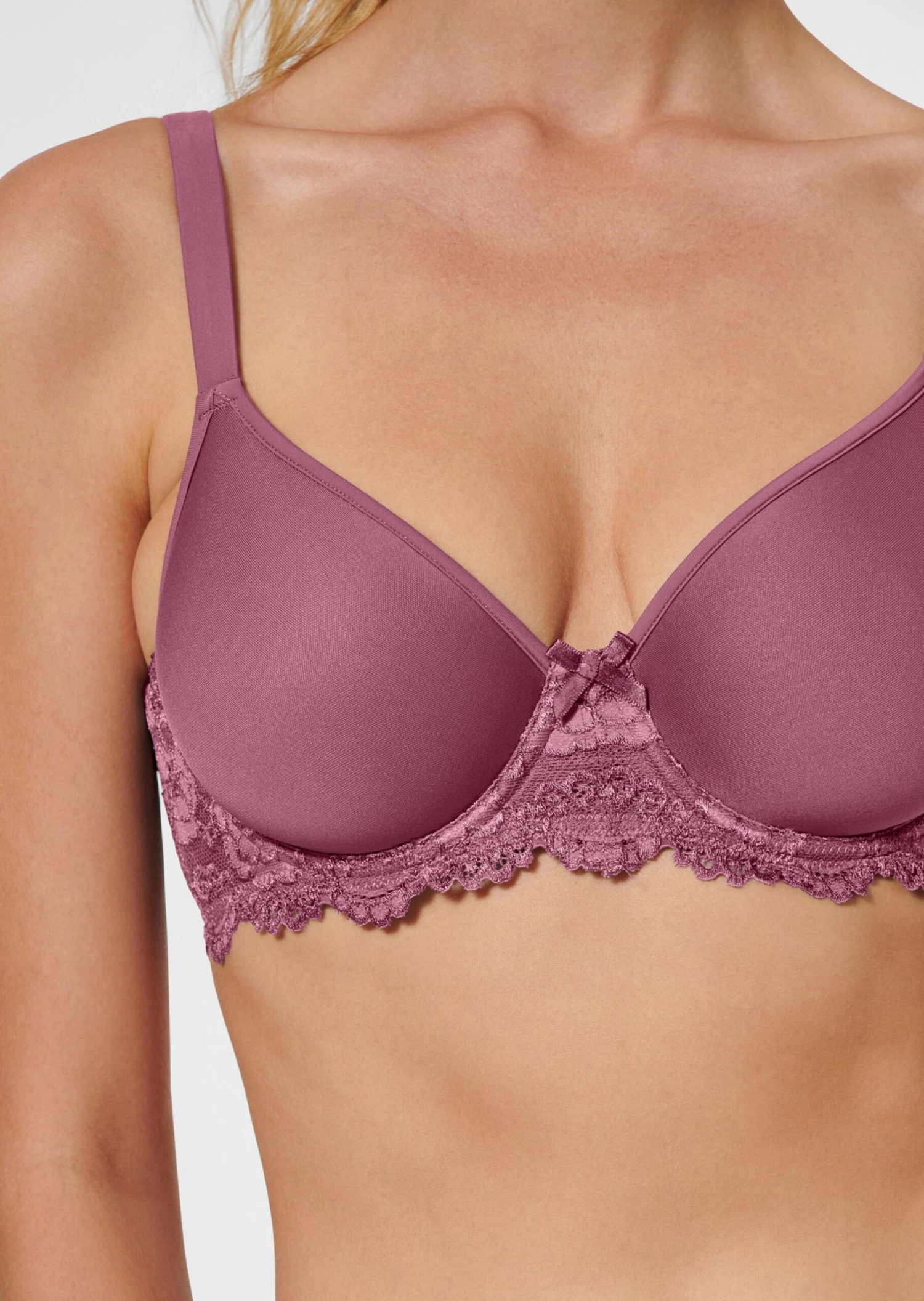 Wenn Sie gerne figurbetonte Oberteile tragen, ist dieser BH das perfekte Darunter. Mit glatten, anschmiegsamen Softcups, Formbügel und verstellbaren Trägern bietet er idealen Komfort und zeichnet sich nicht ab. Extras wie die feine Spitze rundum und Zierschleife am Mittelsteg unterstreichen die sinnlich schöne Optik des Modells.