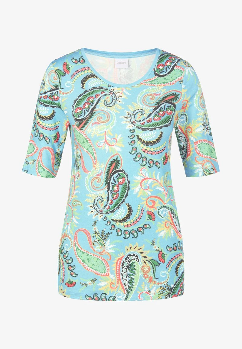RUNDHALS MIT UNIKAT PRINT – T-Shirt Print – Türkis Multicolor