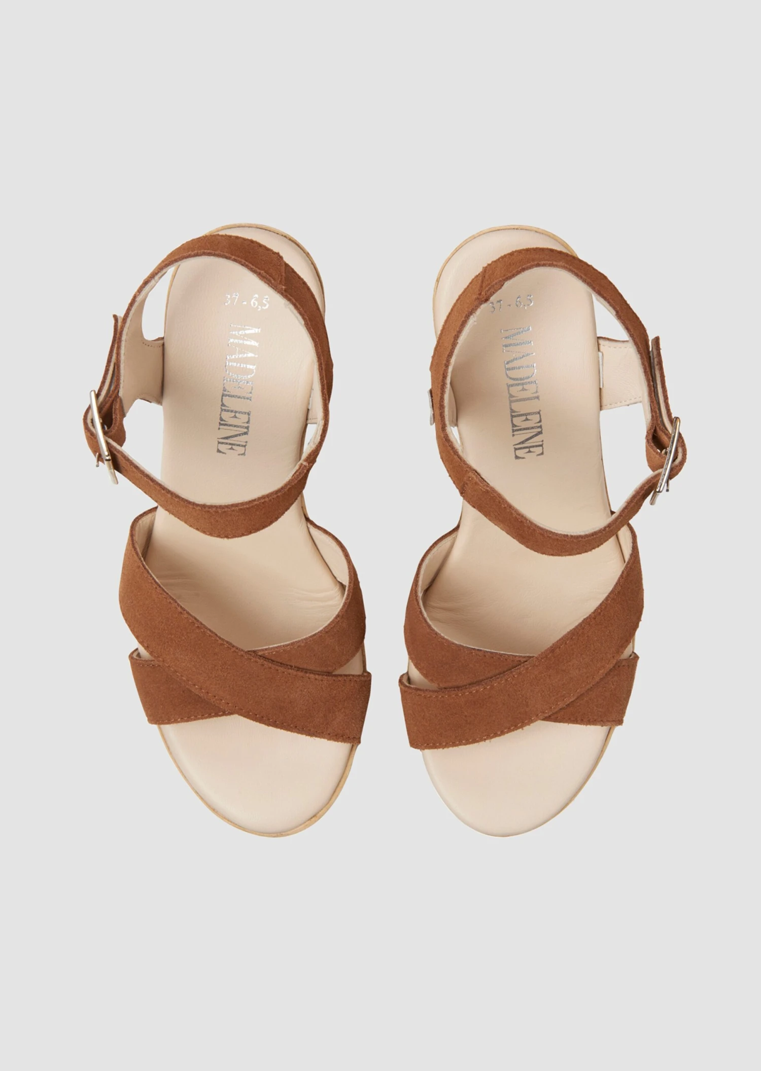 Handgefertigt in Spanien. Mit verstellbarem Fesselriemchen. Aus Veloursleder.