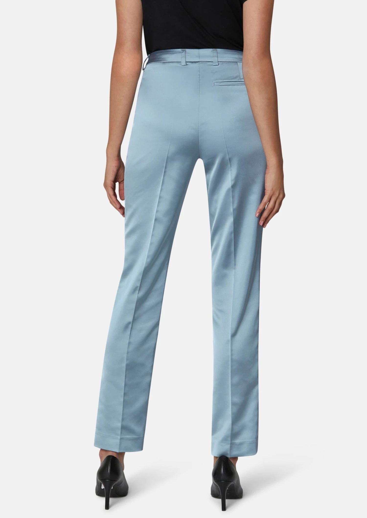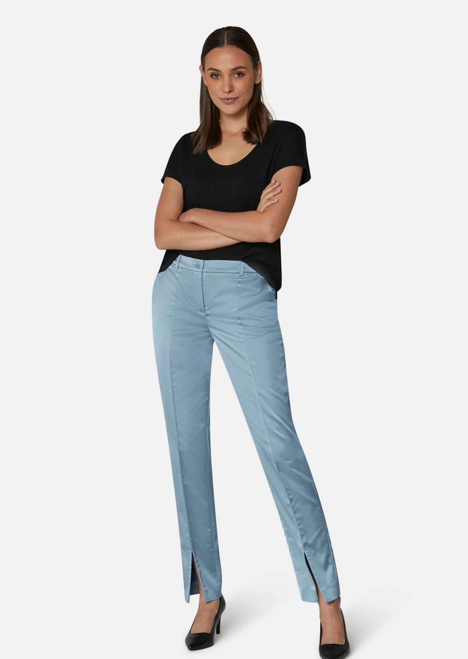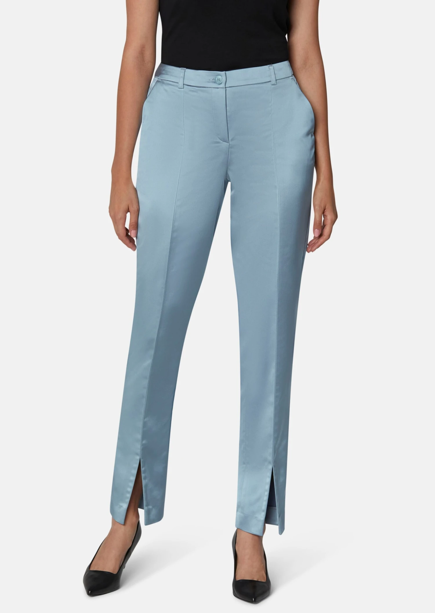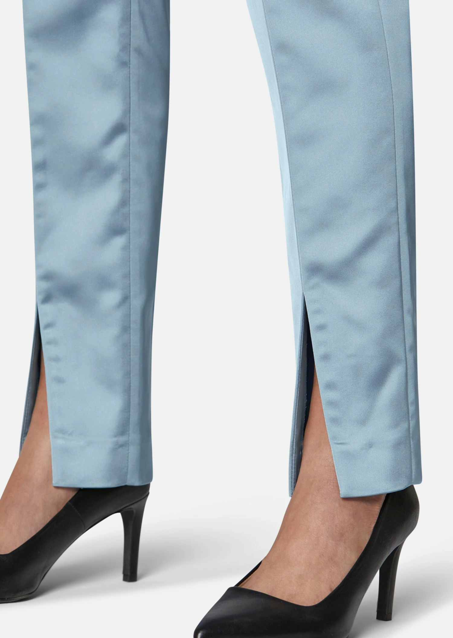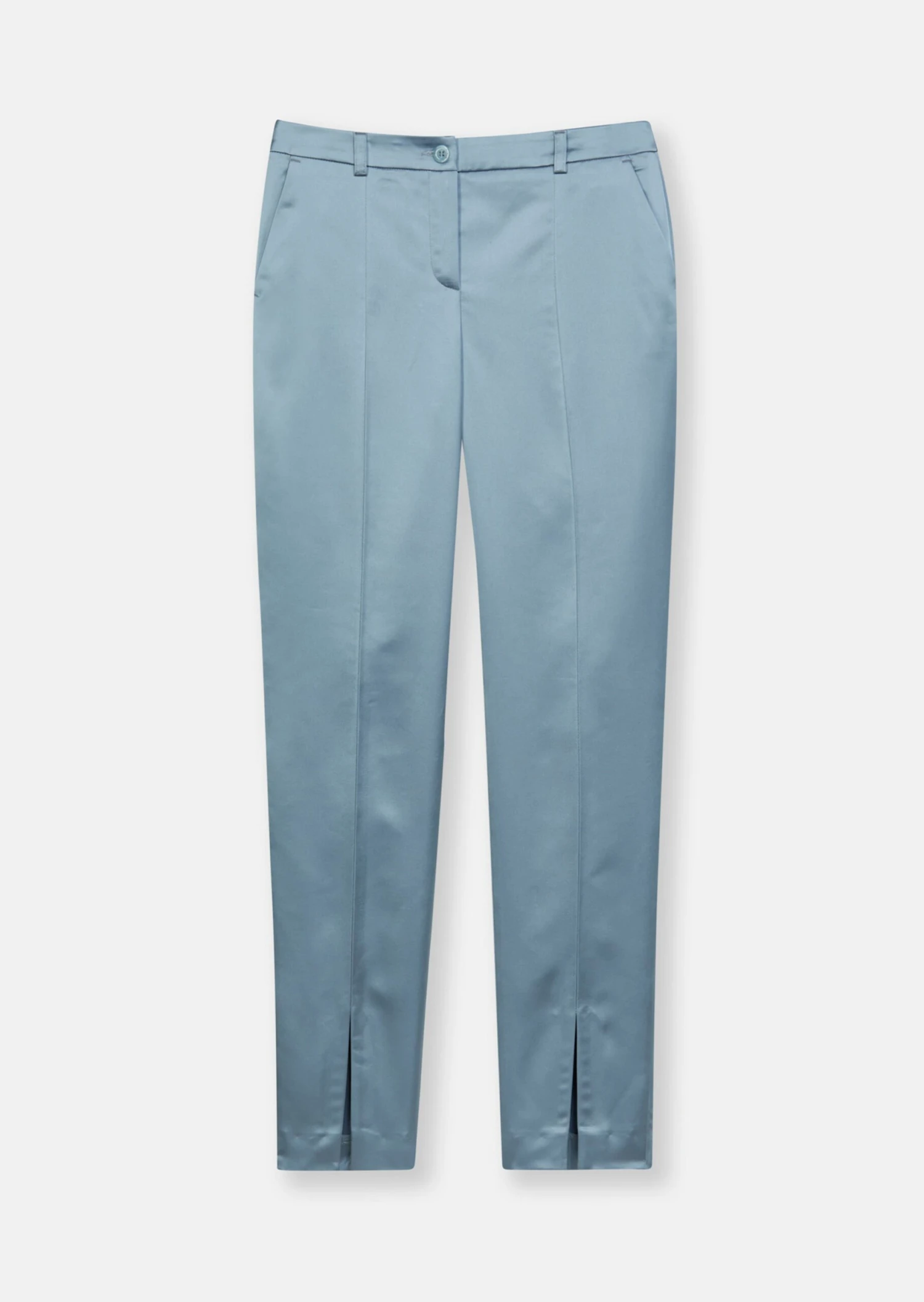 Satin-Hose Mit Vorderseitigen Saumschlitzen Rauchblau