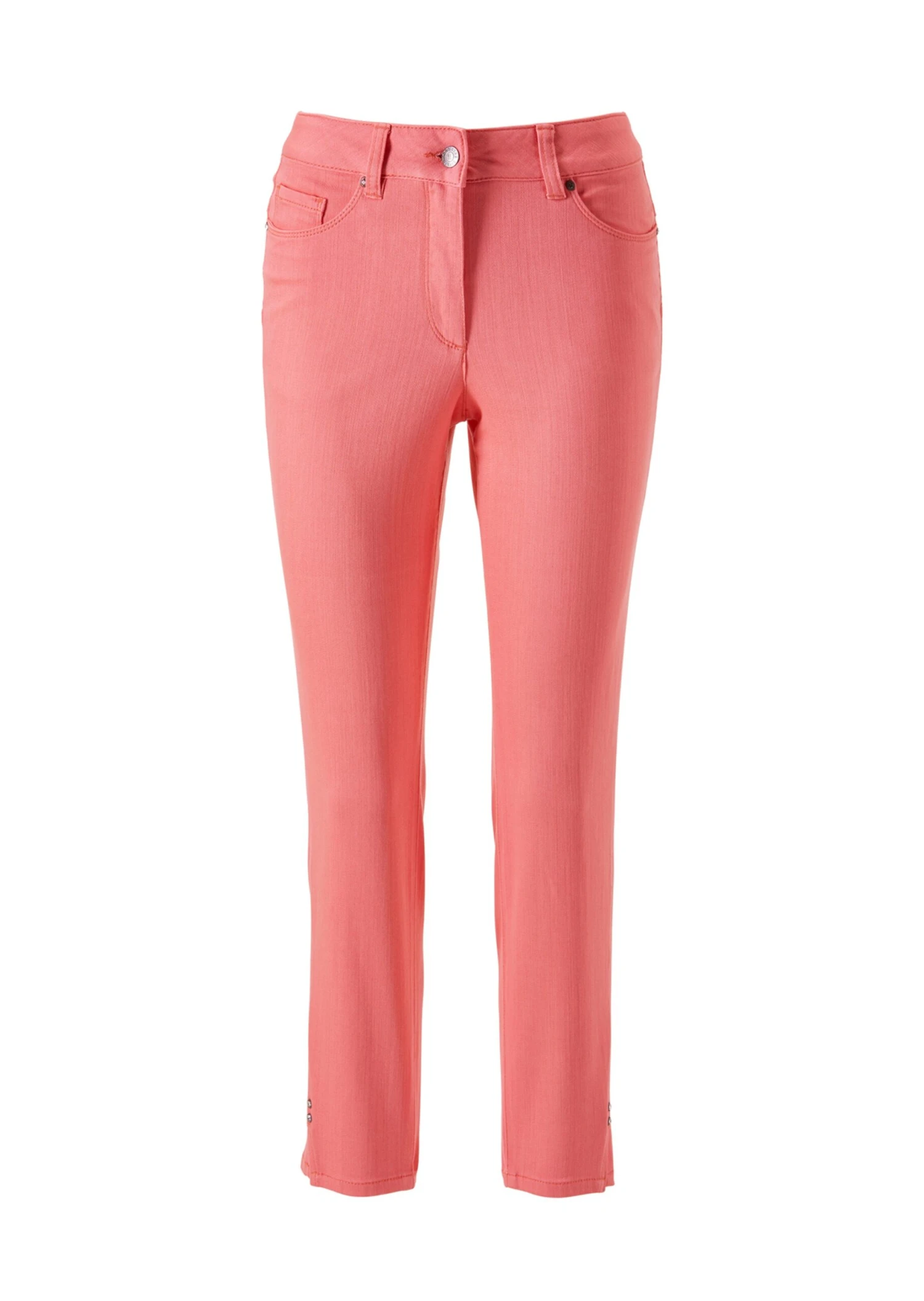 Die Lieblingsjeans erhält ein cooles Upgrade – mit einem brillanten Modestatement. Applizierte Strassnieten werden zum raffinierten Stilmittel und setzen an Taschen und kleinem Saumschlitz dekorative Akzente. Knackig und trotzdem komfortabel im Sitz zeigt sich die 7/8-Jeans in schlankem 5-Pocket-Style und ist mit Formbund, Gürtelschlaufen und Rückenpasse gestaltet. Entdecken Sie auch bei dieser Hose die typischen Madeleine-Details wie M-Logo-Knopf und -Nieten. Eine Fashion-Favoritin, mit der sich immer wieder neue Looks zaubern lassen – ob sportlich im angesagten Athleisure-Stil oder – mit eleganten Styling-Partnern – souverän im Office-Look.