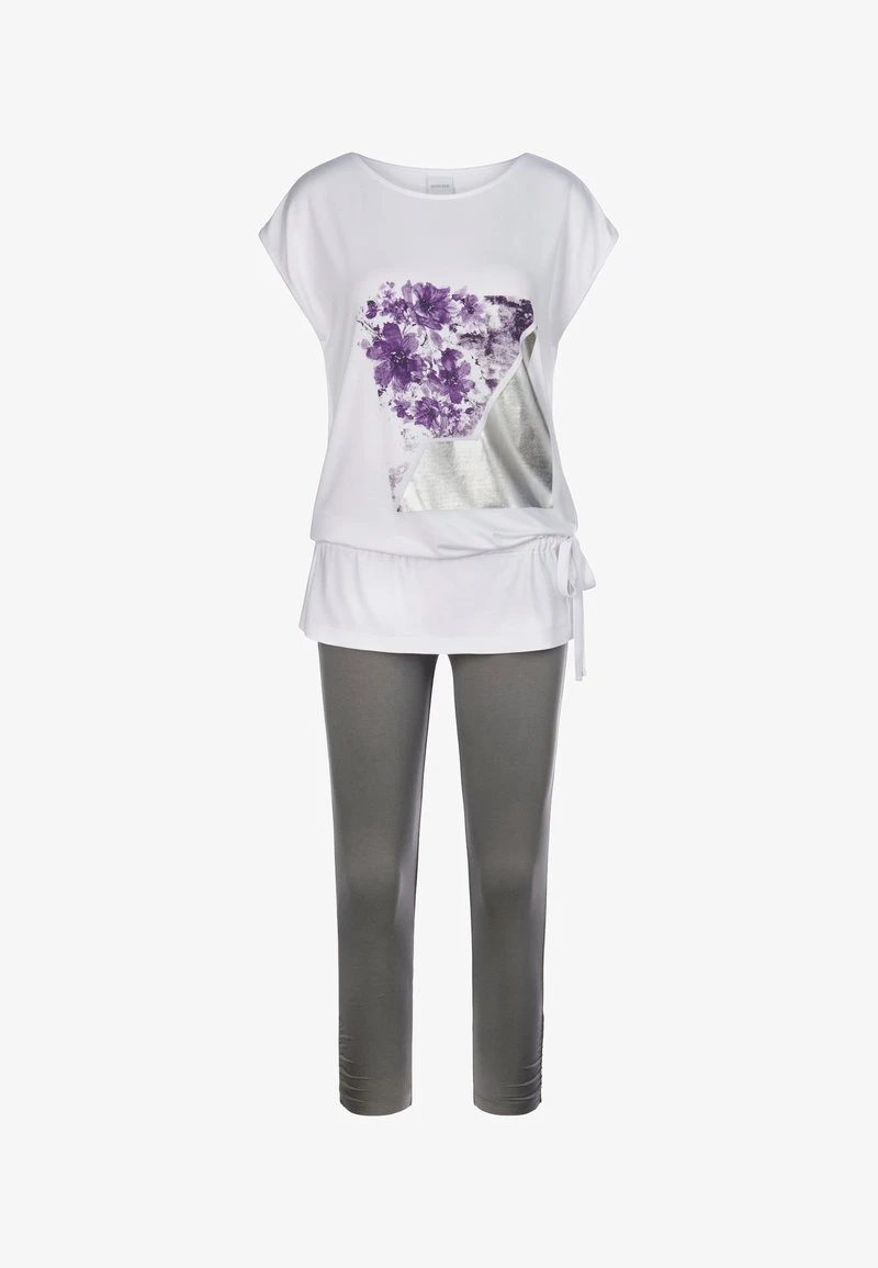 SET ANZUG MIT MOTIVPRINT UND SCHÖSSCHENEFFEKT – Nachtwäsche Set – Weiß/grau