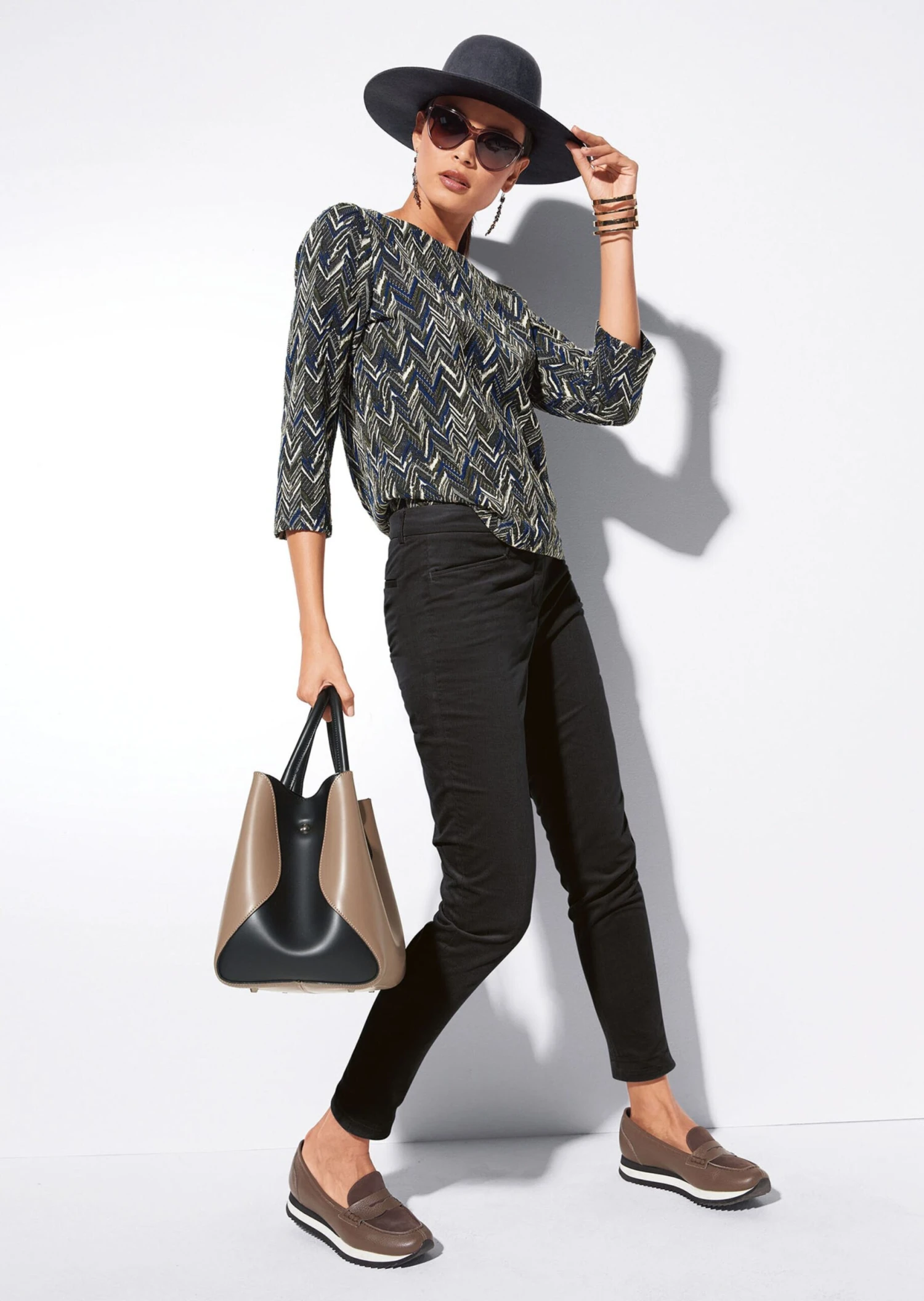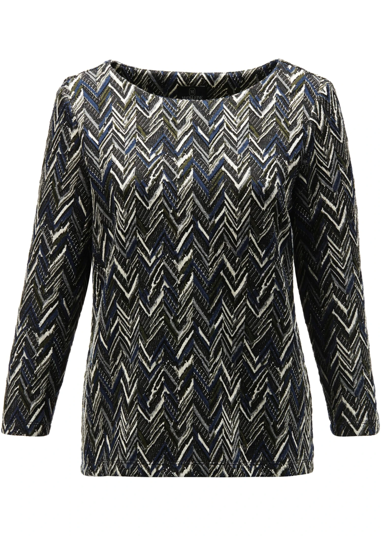 Ein Shirt in modischer Linie, ausdrucksstark im Erscheinungsbild und bequem im Trage-Gefühl. Wertvoller Jacquard präsentiert sich in kontraststarkem Fantasy-Dessin und verleiht dem Style ein Plus an Modernität. Die komfortable Stretch-Qualität ist äußerst formstabil. Sie macht jede Bewegung mit und ist angenehm weich auf der Haut. Leger in der Linie umspielt sie lässig die Figur und präsentiert sich in angesagter Kurzform. Ein attraktiver U-Boot-Ausschnitt, trendstarke 3/4-Ärmel und eine leicht gerundete Saumlinie komplettieren den Look und setzen ihn perfekt in Szene. Ein Styling-Partner, der zu jedem Anlass eine gute Figur abgibt und sowohl solo als auch im Lagen-Look für einen anspruchsvollen Auftritt sorgt.