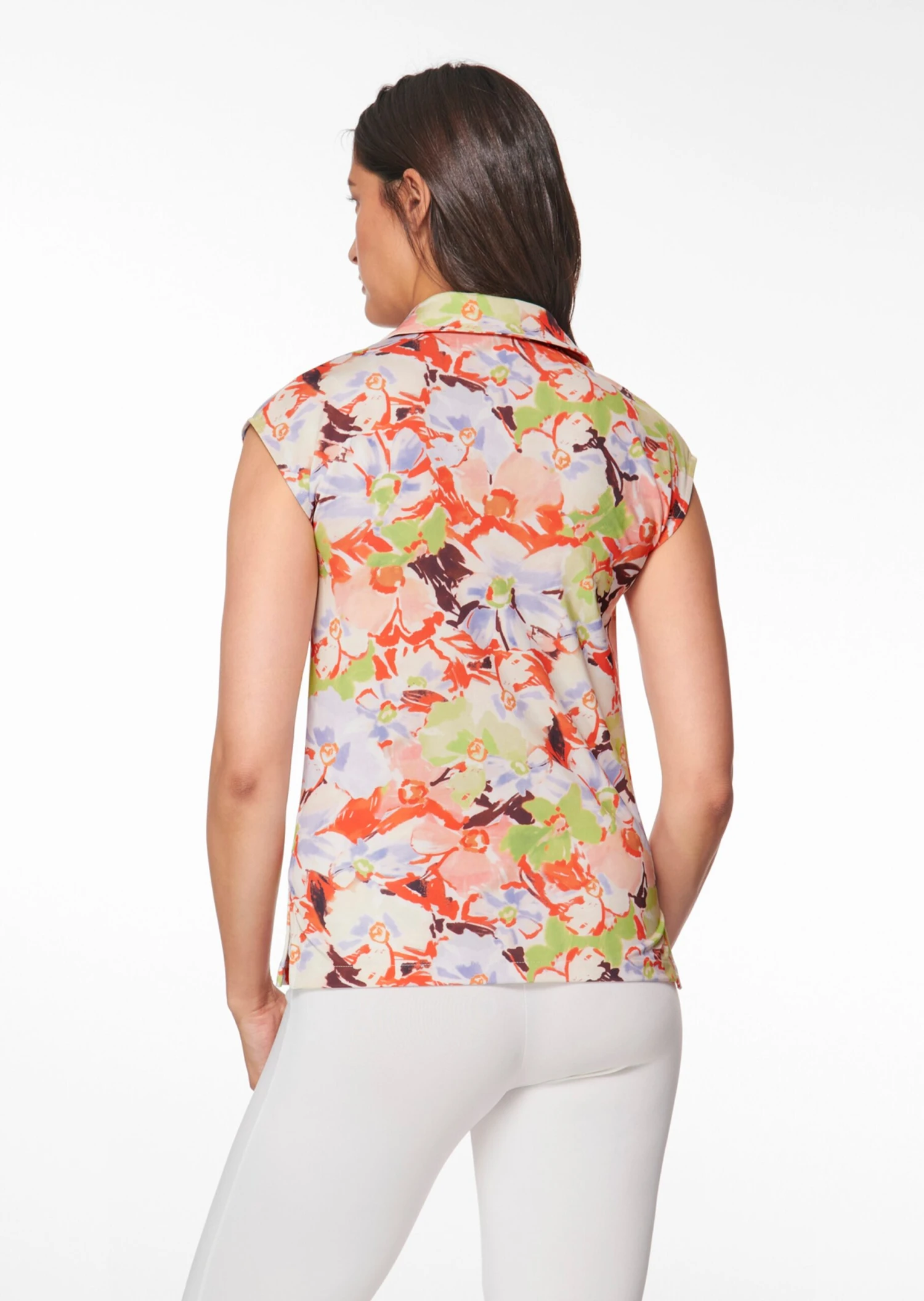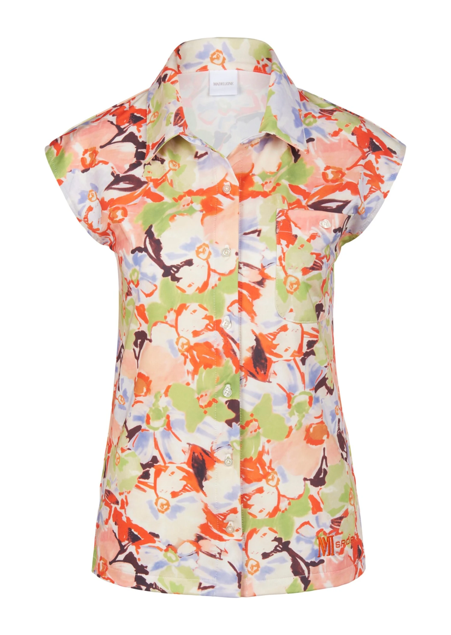 Vielseitigkeit ist gefragt! Dieses Shirt in Blusenoptik kommt nicht nur bei allen Outdoor Sportarten, sondern auch beim Shoppen in der City super an. Das ärmellose Shirt ist schön schlank und weich fließend,, hat einen floralen Unikat-Print, einen Hemdkragen, eine durchgehende Knopfleiste und Seitenschlitze.