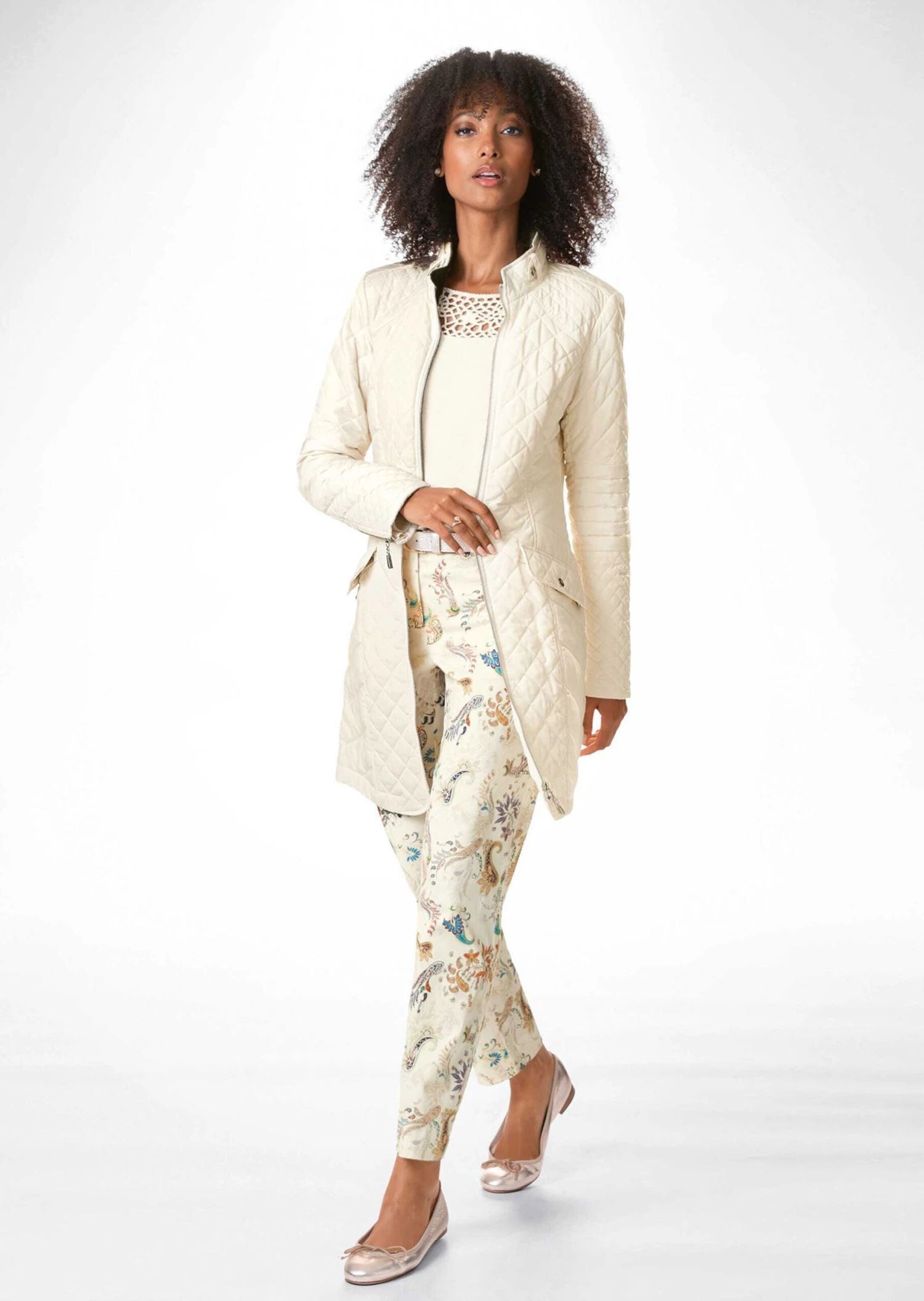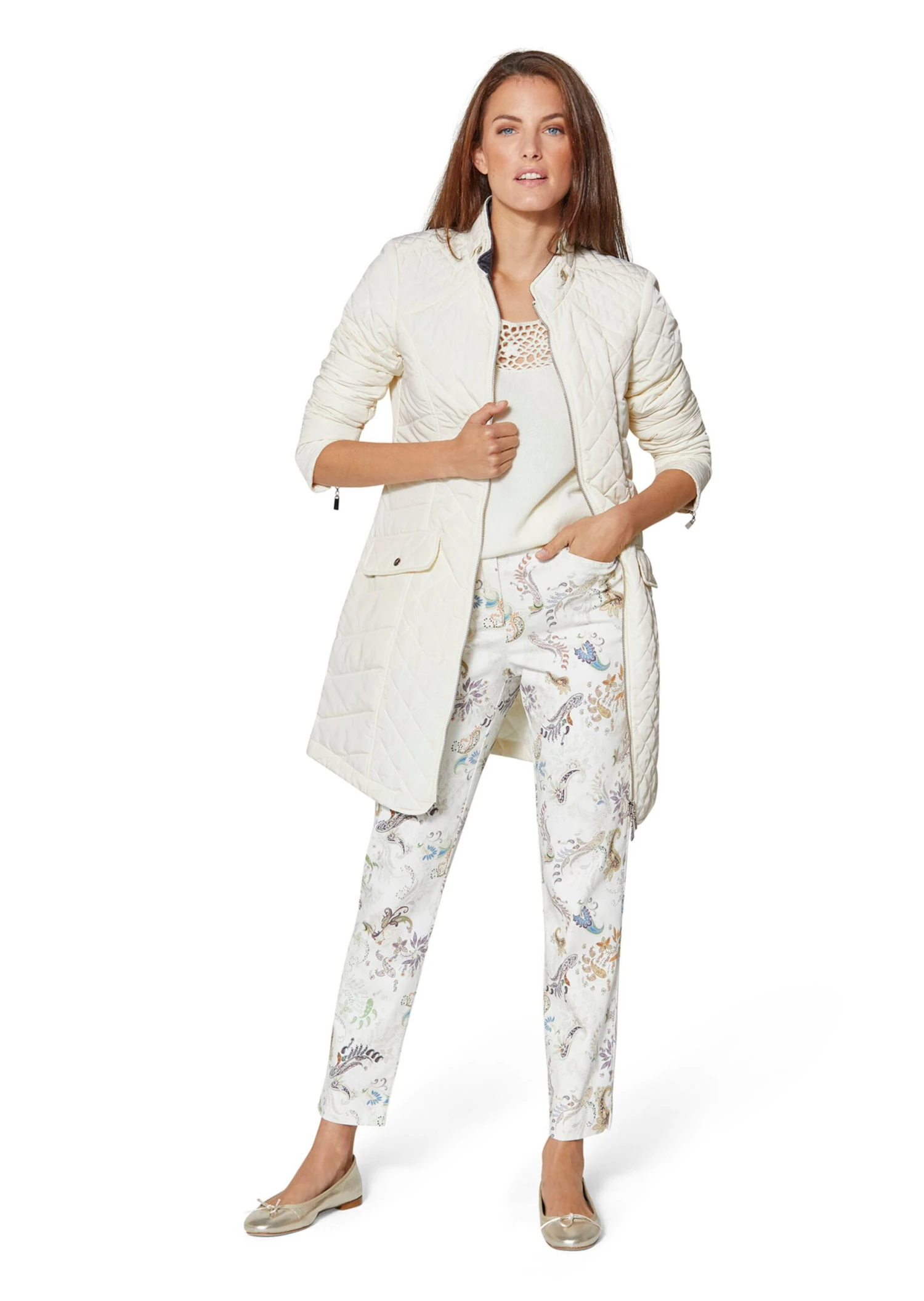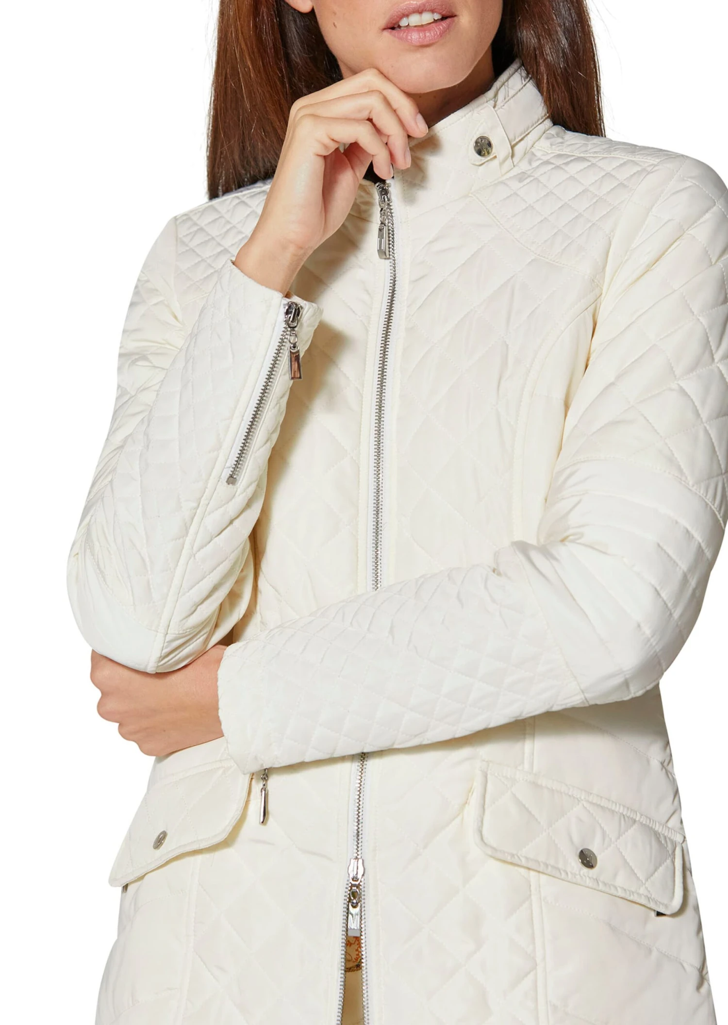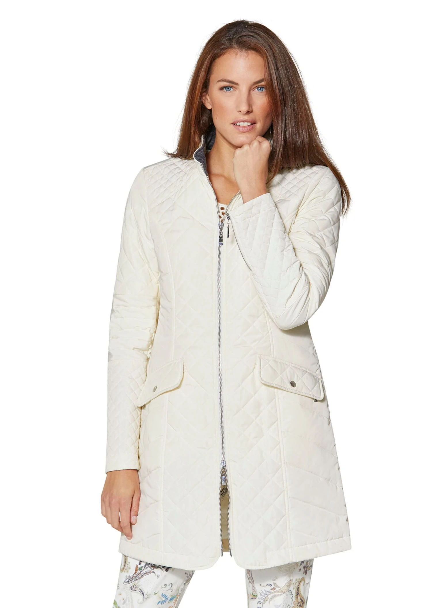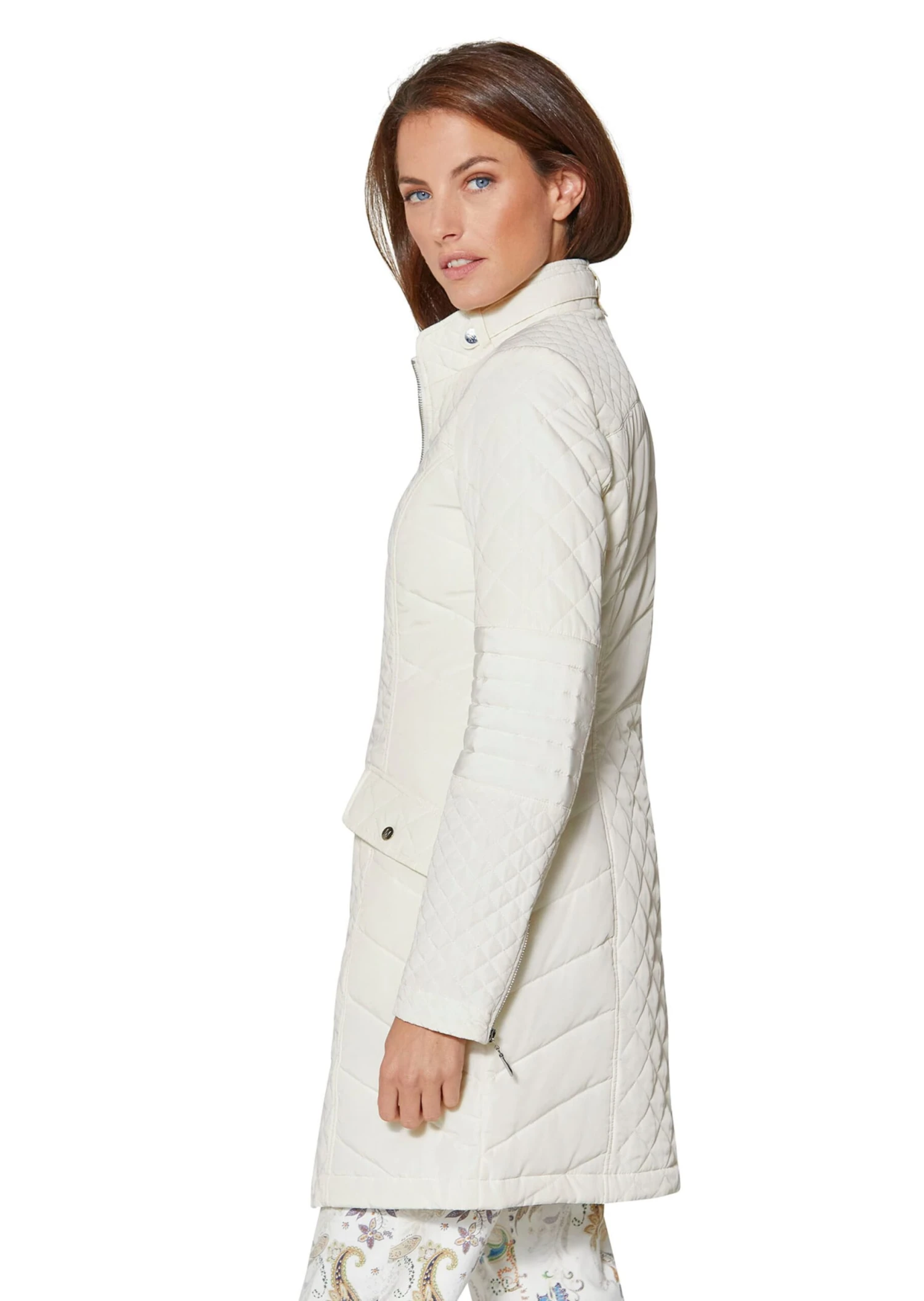 Seine schlanke Linie macht ihn zum Favoriten unzähliger Stylings! Der Steppgehrock mit Stehkragen und leicht taillierter Longform zeichnet eine schöne, schmale Silhouette. Unterschiedliche Steppungen verleihen ihm Charakter. Ausgestattet ist er mit 2-Wege-Zipper, Kettenaufhänger, verdeckten Zippertaschen und geknöpften Taschenpatten. Ärmelzipper und Logo-Accessoires sind weitere Details. Der Stehkragen kann ganz praktisch per Zierriegel und Druckknopf geschlossen werden. Dank seiner Farbe passt er zu den unterschiedlichsten Tönen – von hell bis dunkel. Für diesen Artikel wurde recyceltes Material verwendet, was den Verbrauch von Rohstoffen reduziert und zur Ressourcenschonung beiträgt.