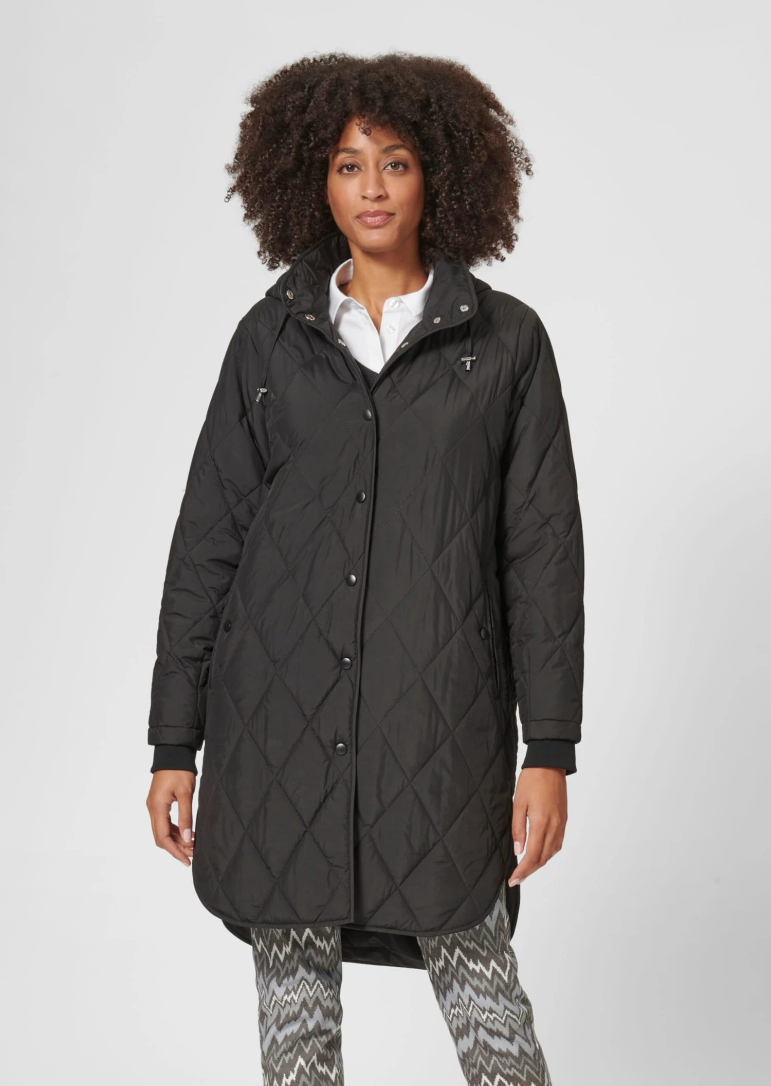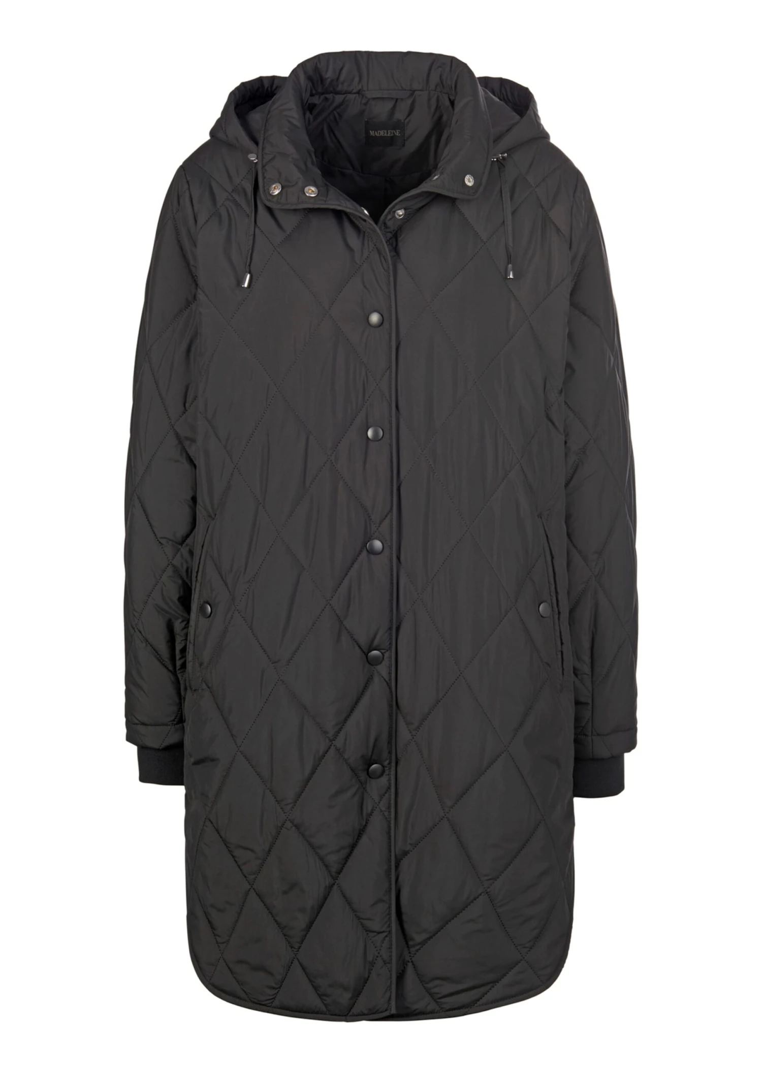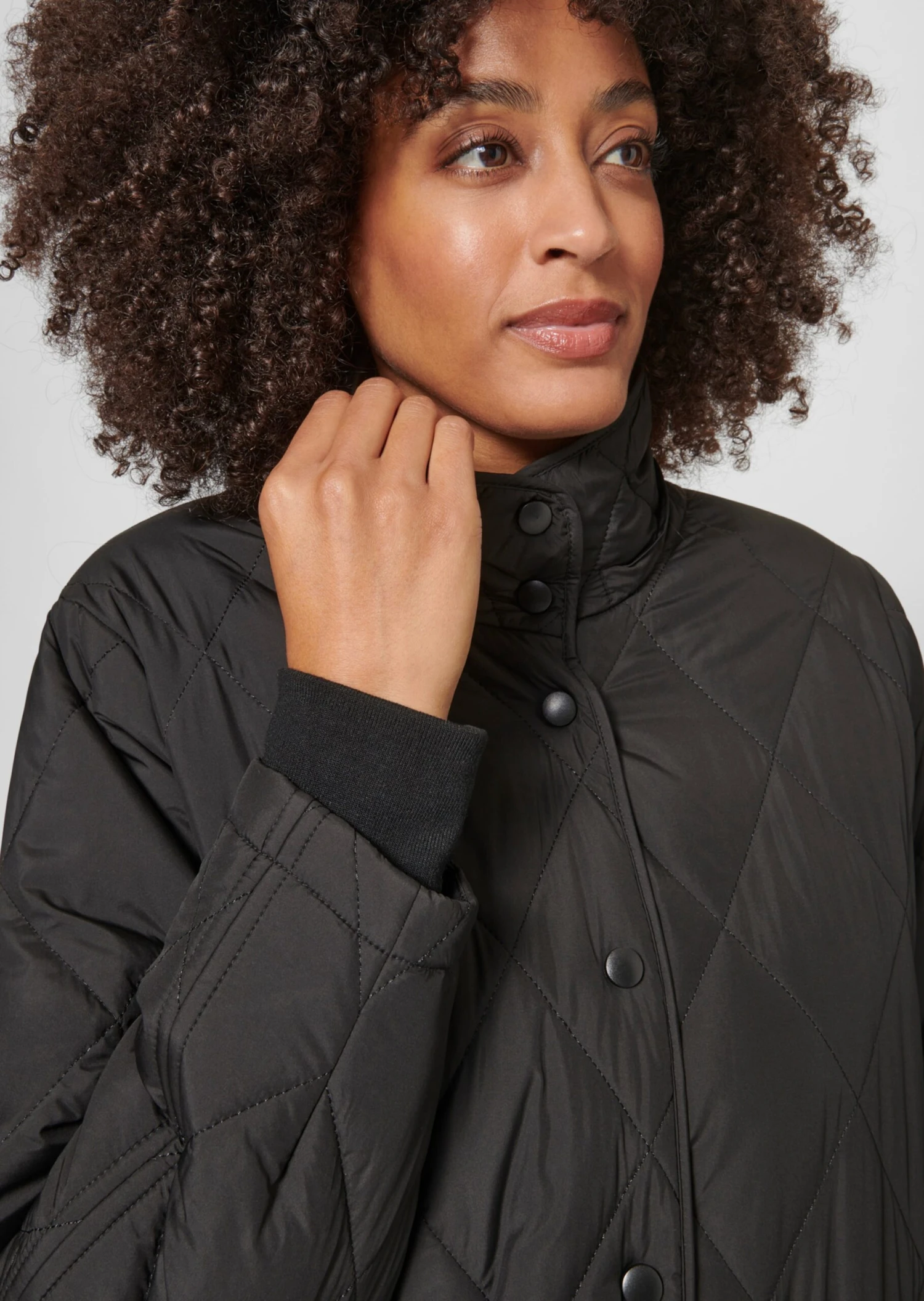 Outdoor-Luxus, wie wir ihn lieben. Der angenehm leichte und wärmend wattierte Steppmantel ist sehr modisch in lässiger Oversized-Form gestylt. Er hat einen Stehkragen, eine abnehmbare Kapuze mit Tunnelzug und Metallstoppern, eine Druckknopfleiste und schräge Leistentaschen mit Druckknopfverschlüssen. Seitliche Schlitze sorgen für mehr Bewegungsfreiheit. Die langen Ärmel haben windabweisende Rippstrickabschlüsse, die Schulterpartie ist dezent überschnitten.