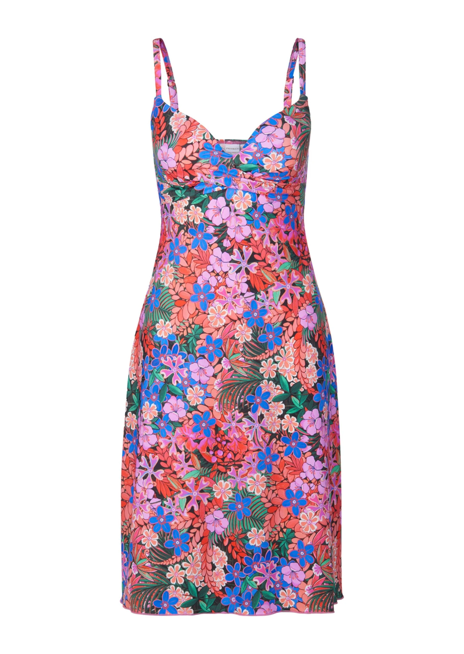 An Hitzetagen gibt es keinen schöneren Begleiter als das Trägerkleid mit buntem Blütenprint. Jedes Modell ein Unikat. Das Büstenteil mit Drapierung und Softcups zaubert ein feminines Dekolleté. Die Qualität mit Stretch-Anteil macht das Kleid trageangenehm. In leicht ausgestellter Form mit verstellbaren Trägern. Dieser Artikel wurde aufgrund des Einsatzes von recyceltem Material ressourcenschonend produziert.