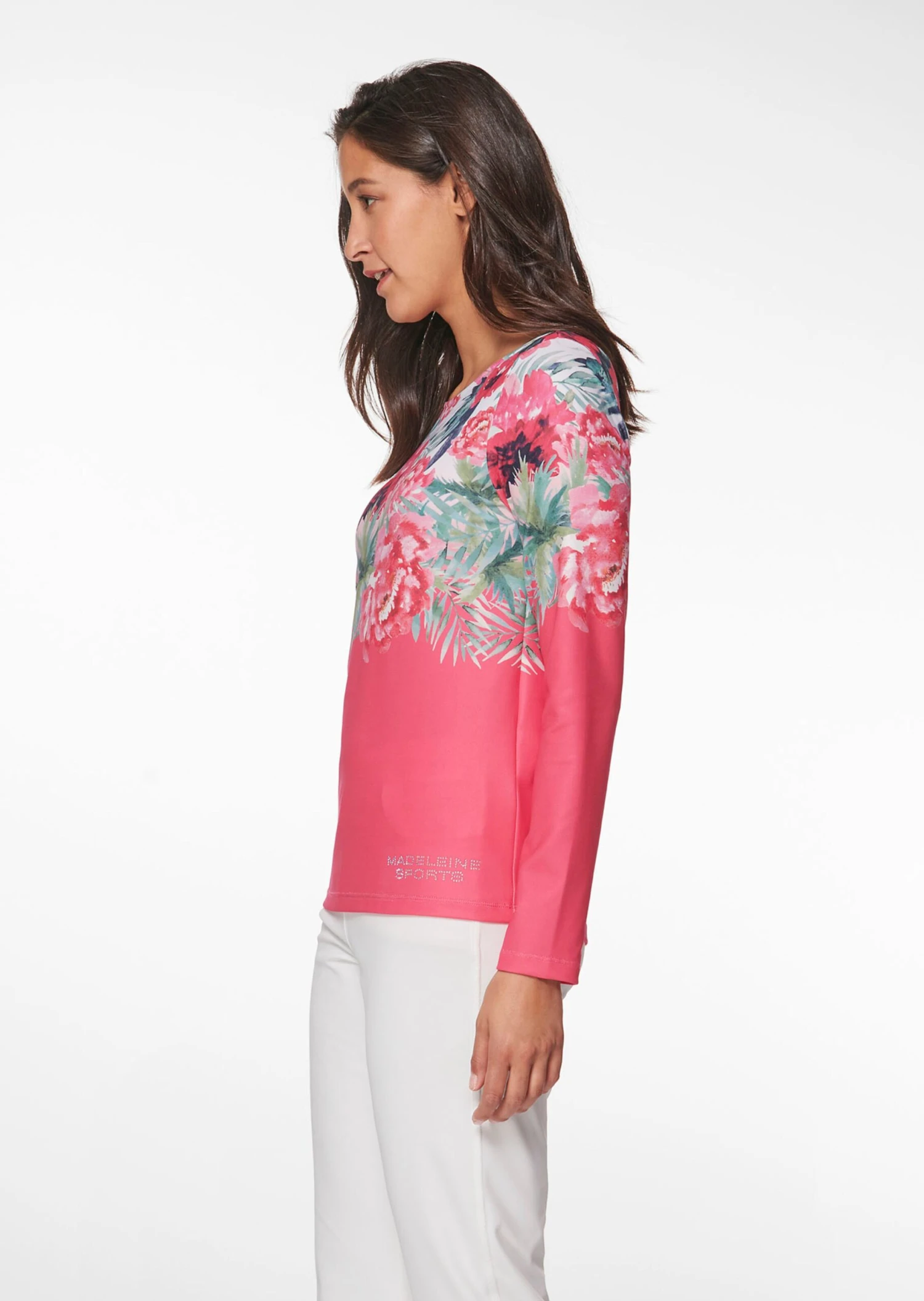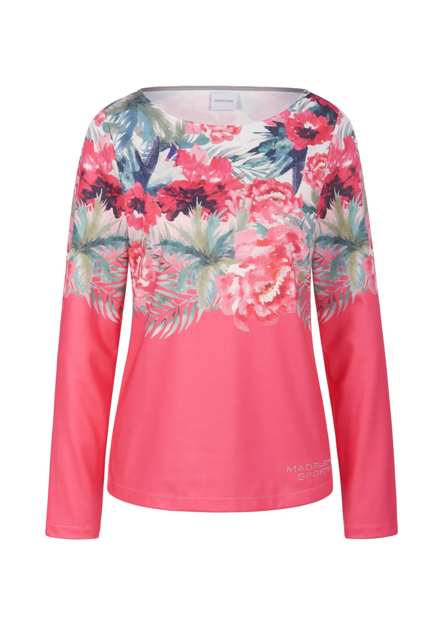 Trainings-Shirts kann man nicht genug haben. Wie schön, dass es Modelle gibt, die gar nicht nach sportlicher Aktivität aussehen und immer und überall für Furore sorgen. Dieses softe, weichfallende Sweatshirt mit platziertem Blumen-Print, rundem Halsausschnitt, langen Ärmeln und „MADELEINE SPORTS“-Glitzerstein-Logo am Saum gehört dazu.