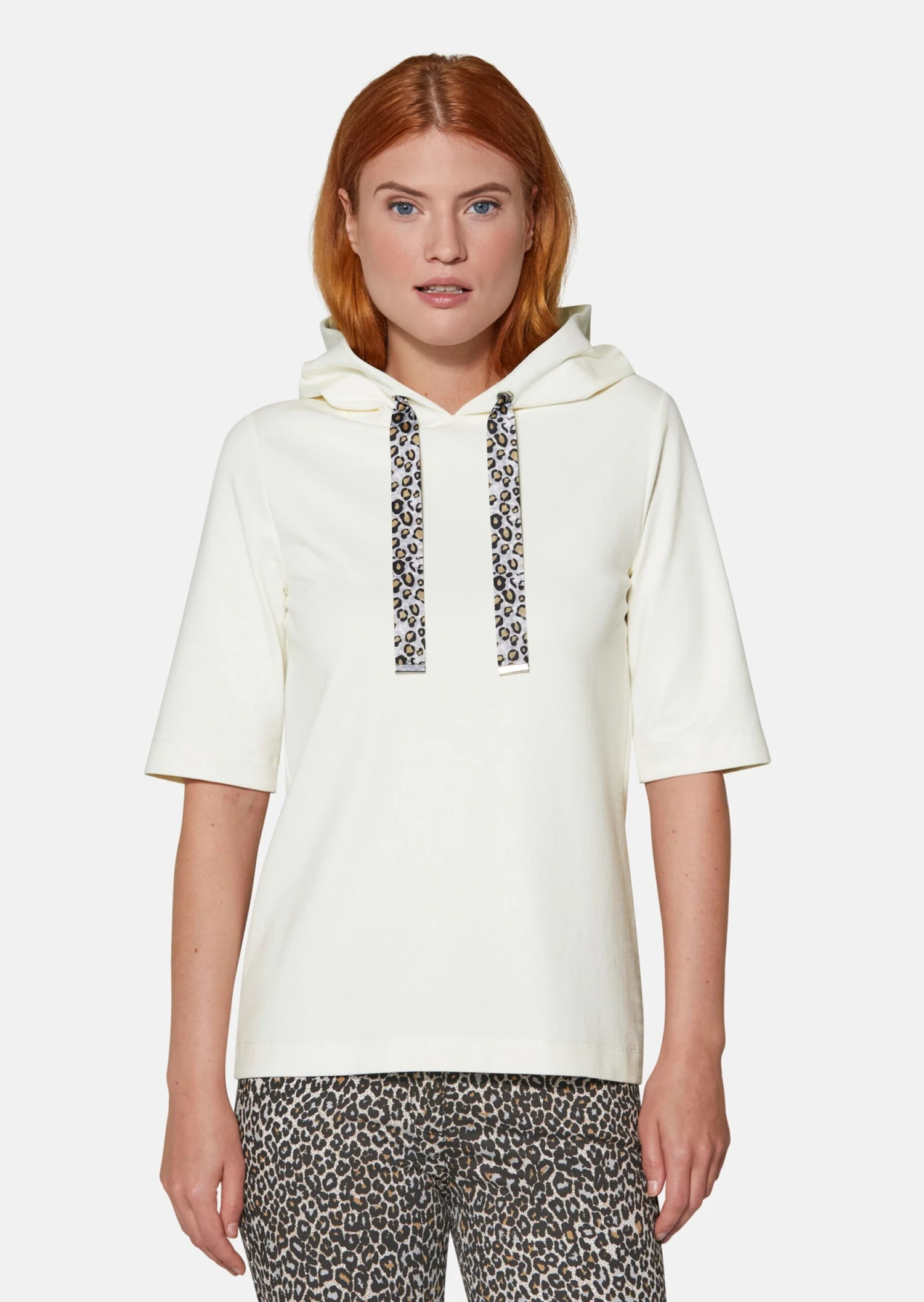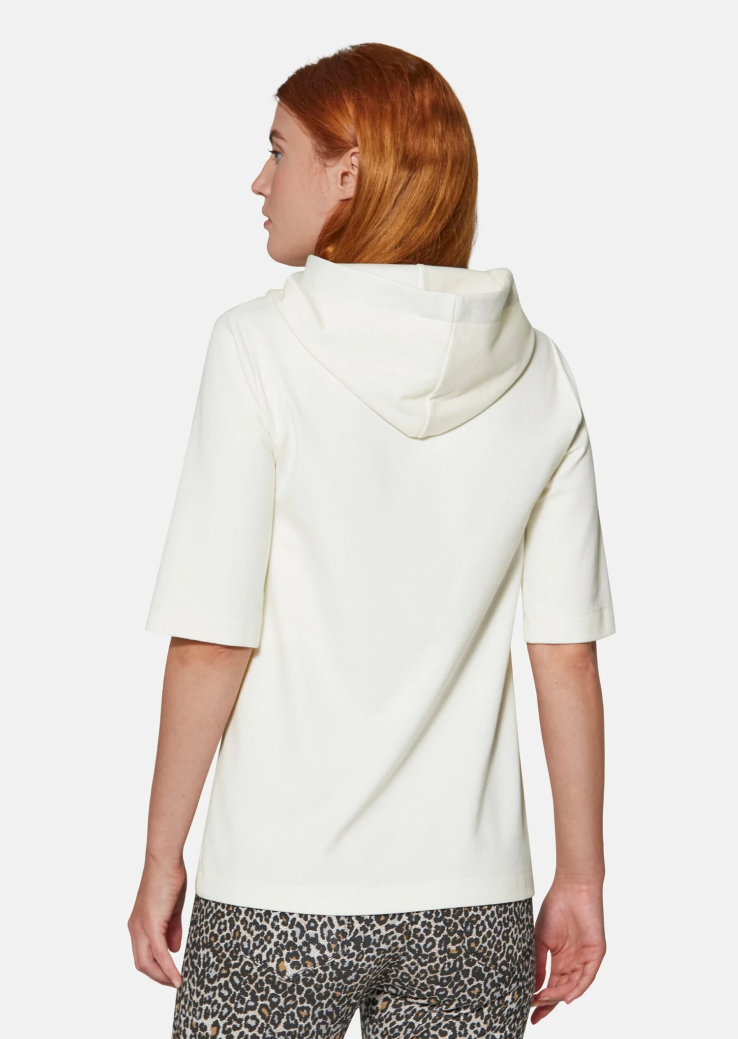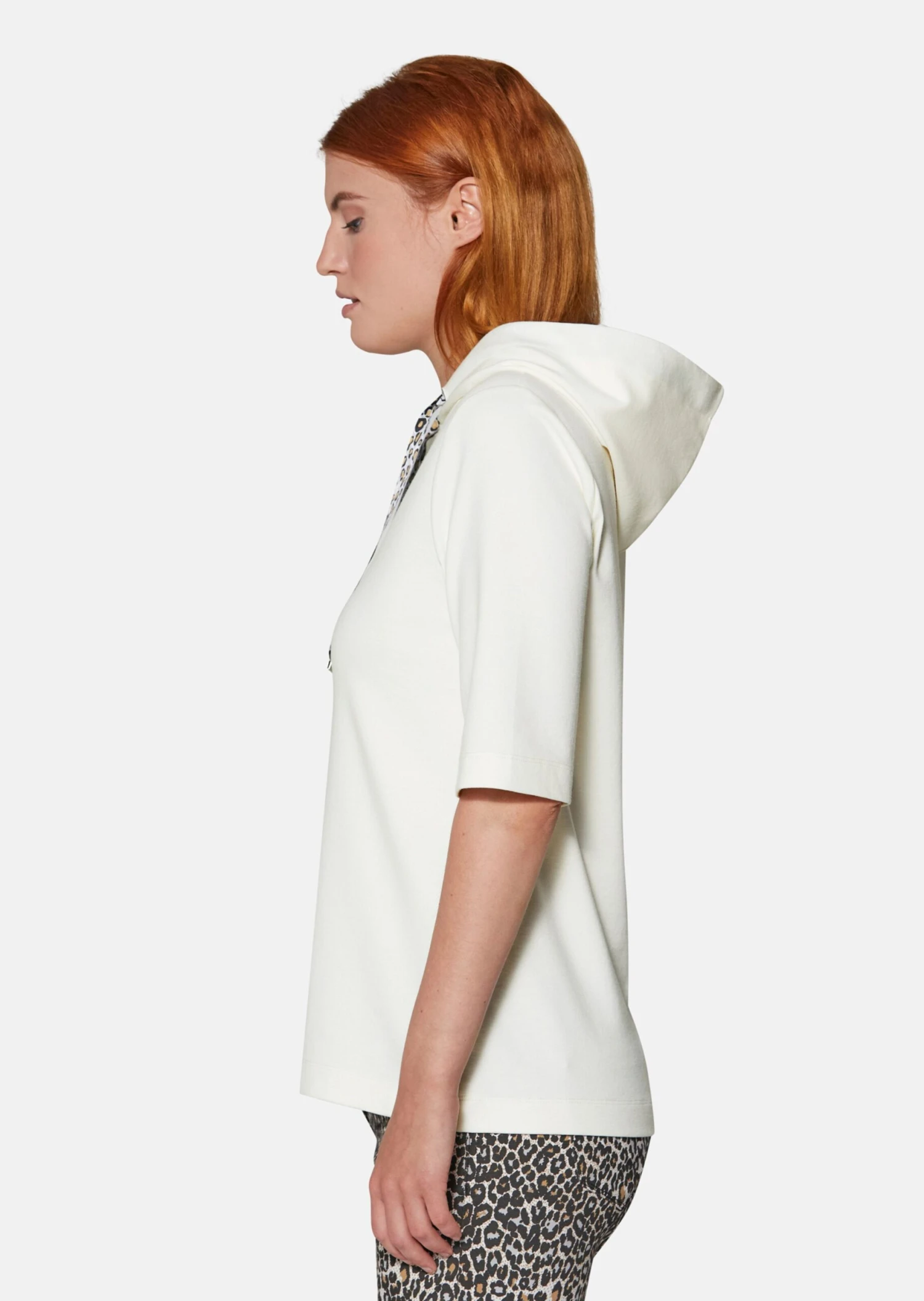 Sweatshirt Mit Kapuze Und Halbarm Wollweiß / Schwarz