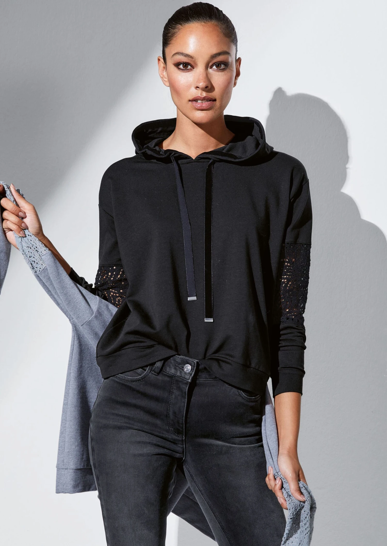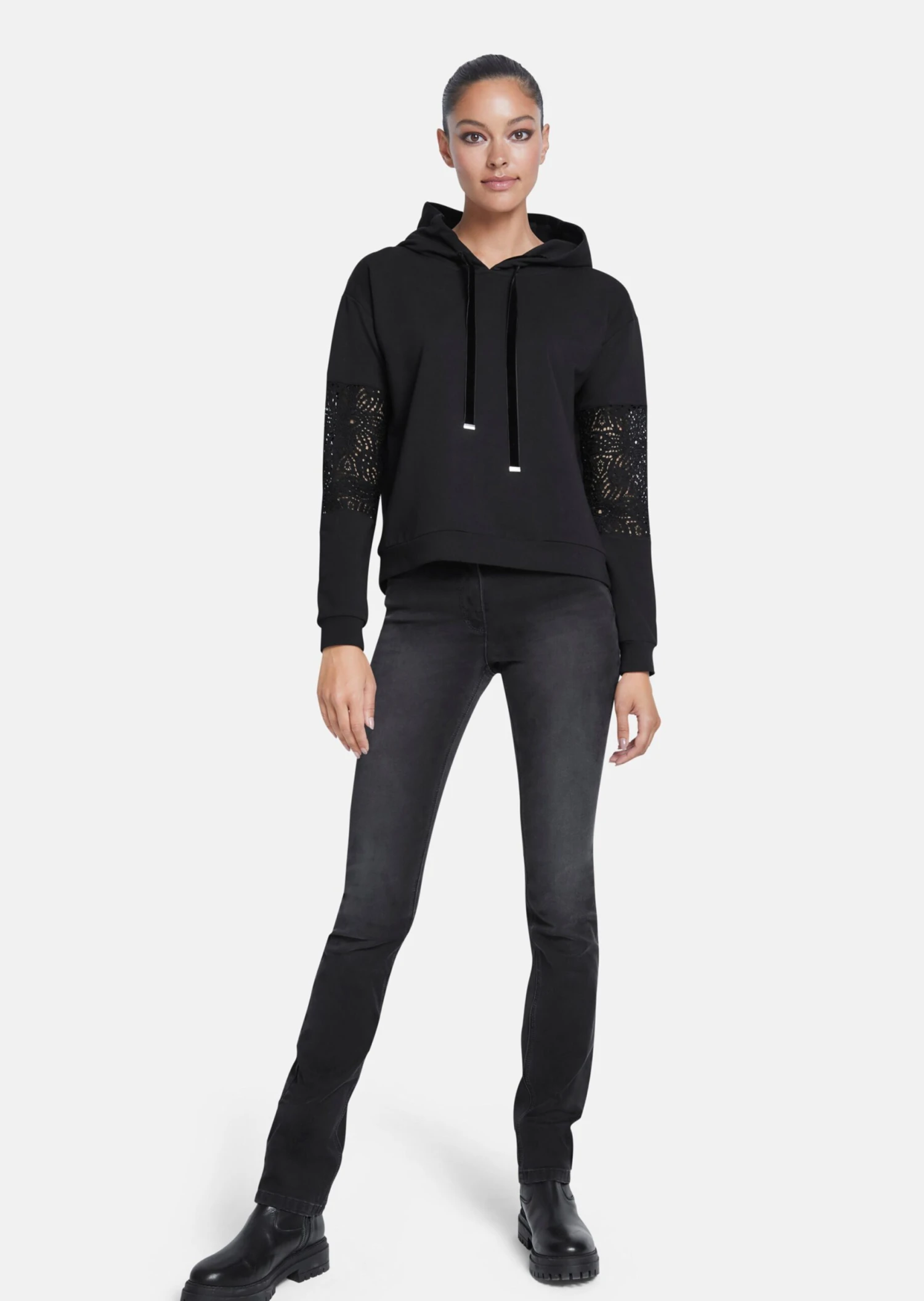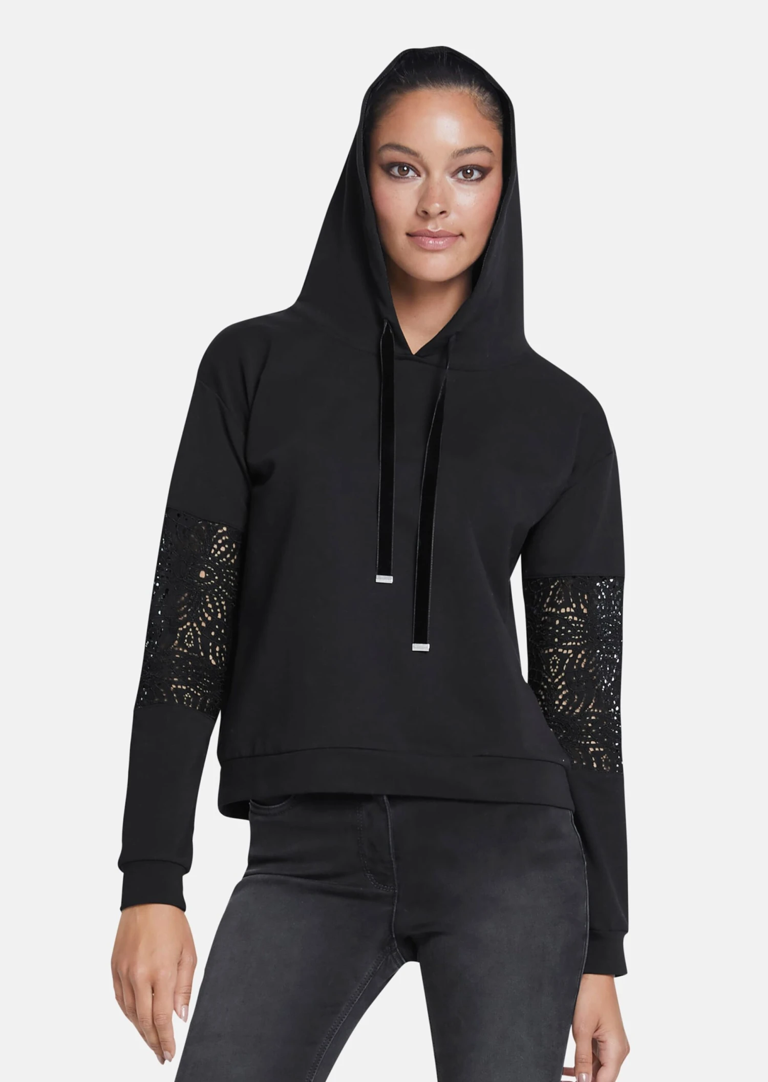 Sweatshirt Mit Spitzenbesatz Schwarz
