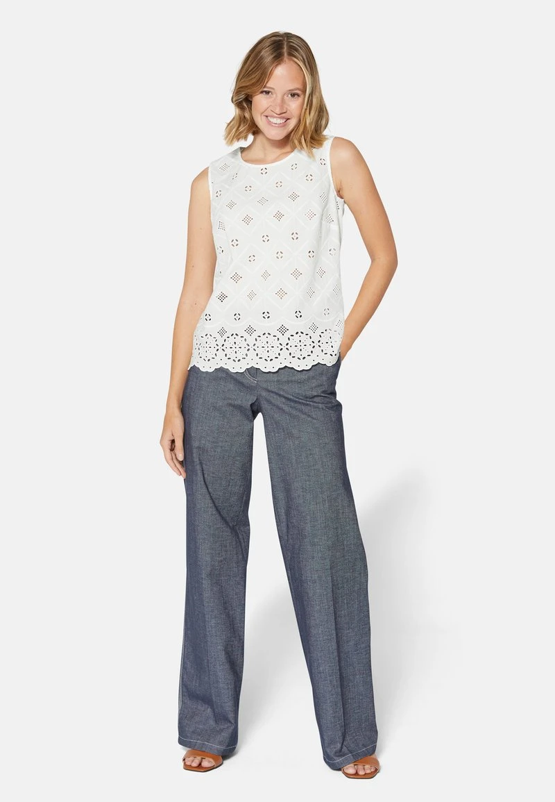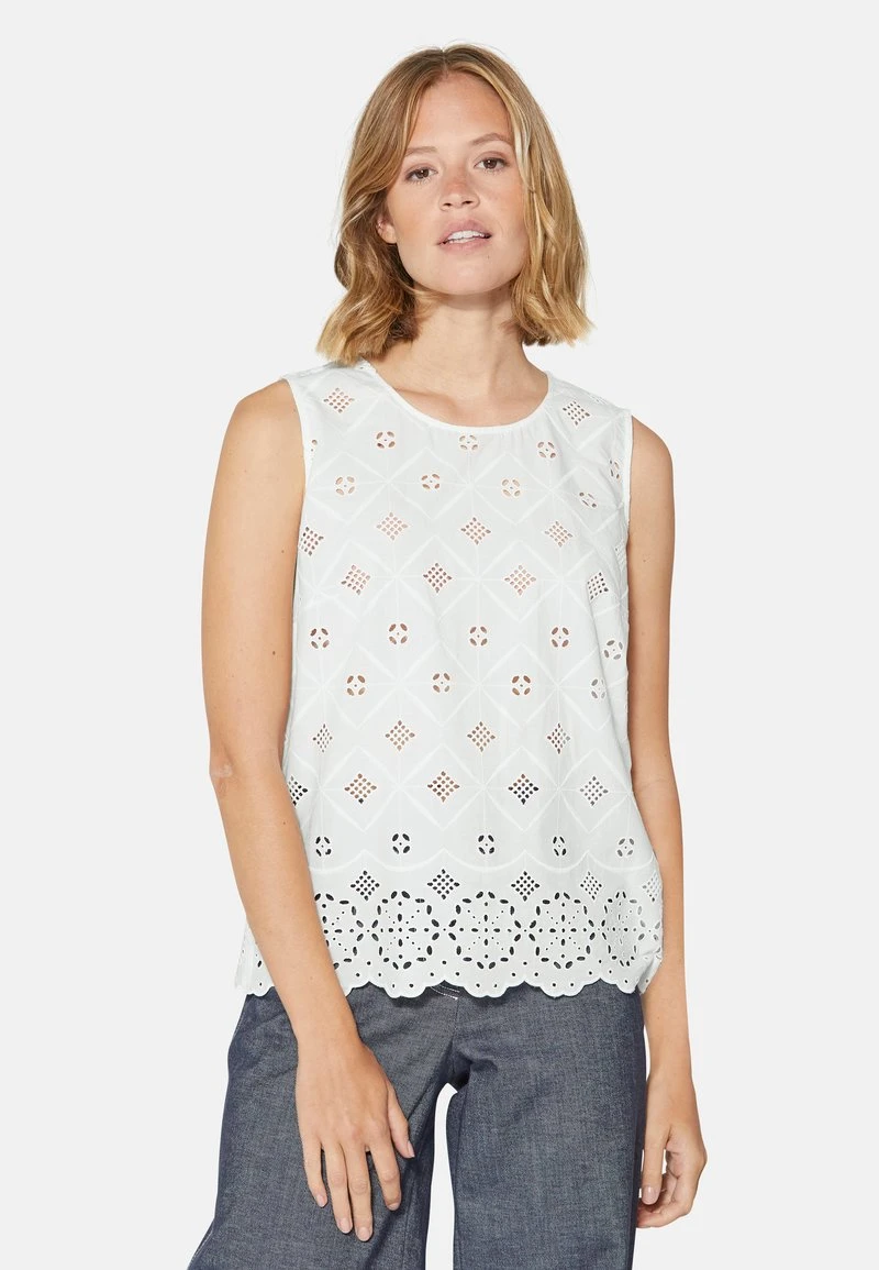 TALBOT RUNHOF X MIT MADEIRA-SPITZE – Top – Wollweiß