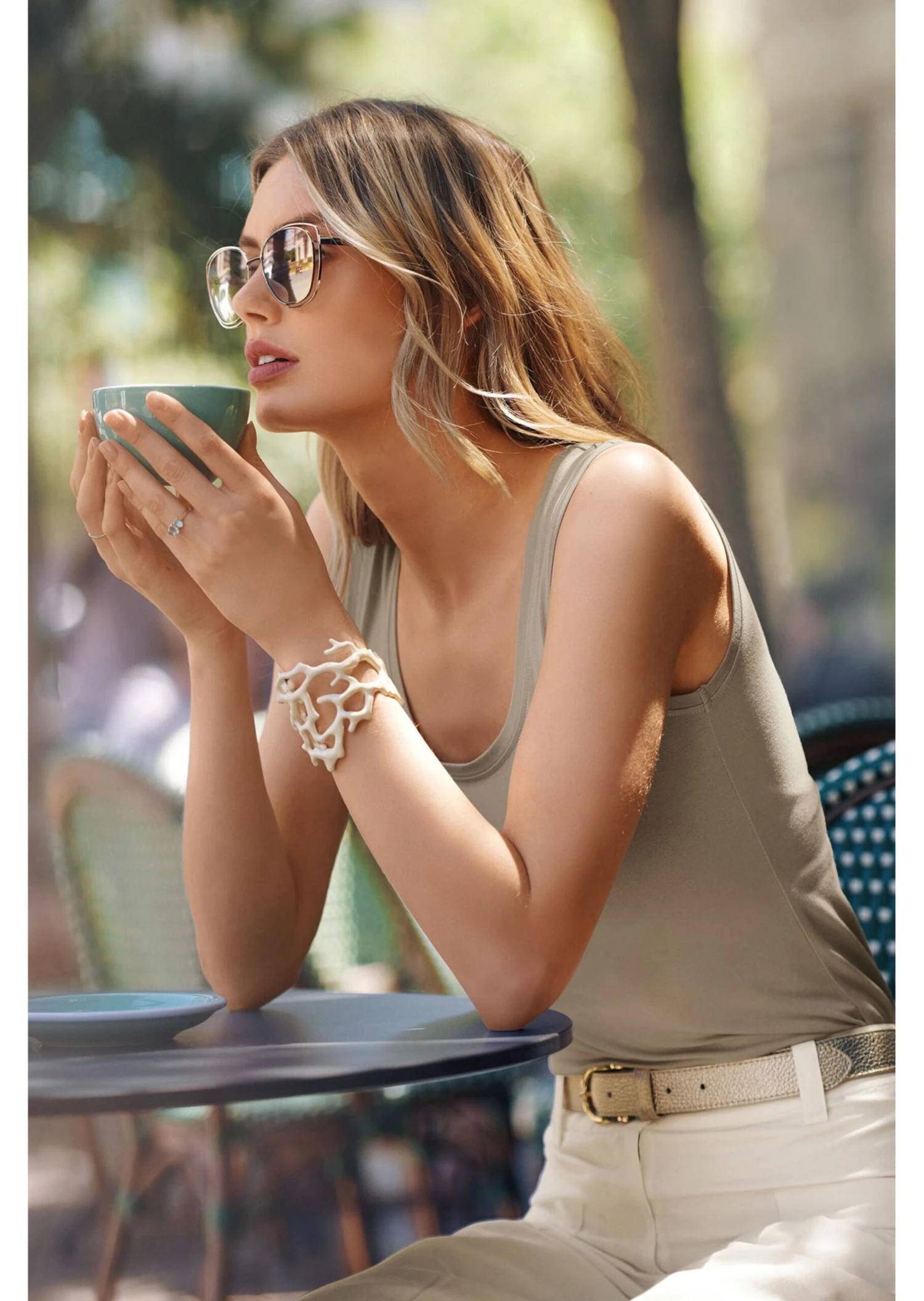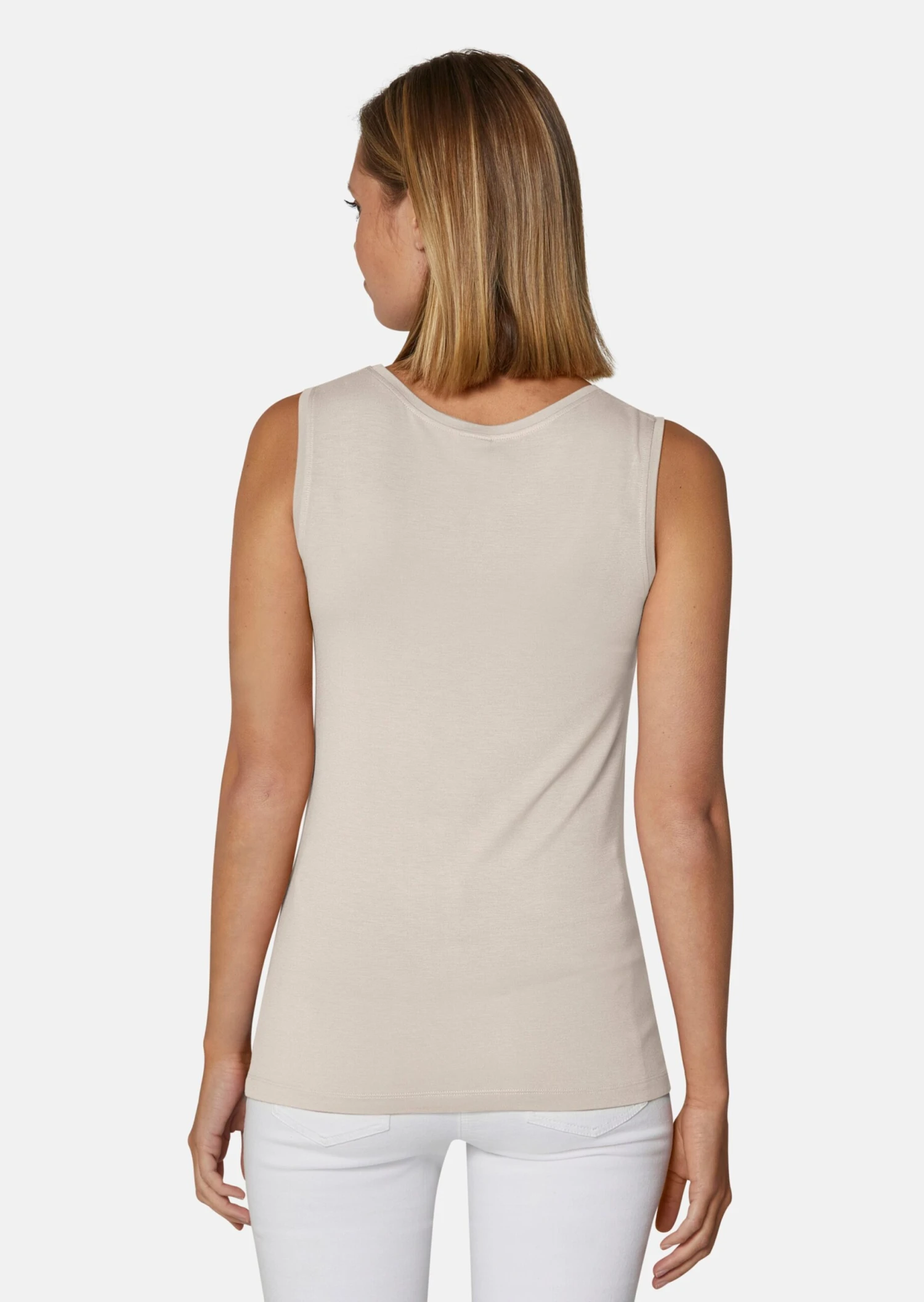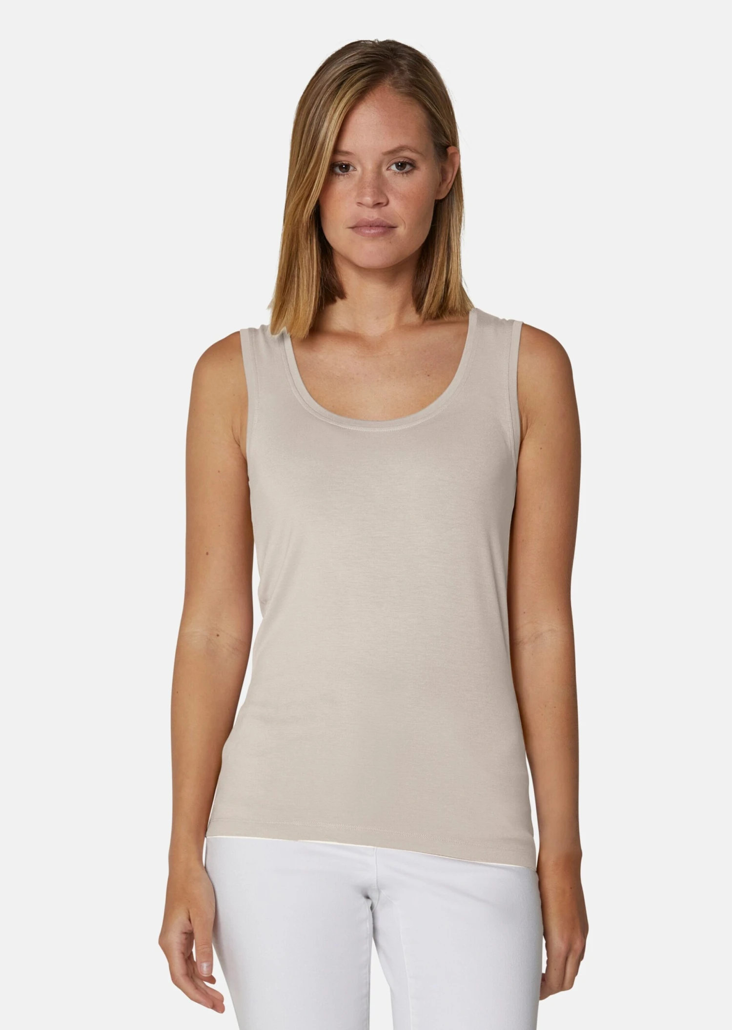 Dieses Tanktop ist das perfekte Darunter. Der formbeständige, langlebige Viskose-Stretch ist herrlich geschmeidig und trägt sich angenehm leicht auf der Haut – einfach perfekt für gepflegte Basic-Fashion! Schlankes Top mit femininem Rundhalsausschnitt und breiten wäschefreundlichen Trägern.