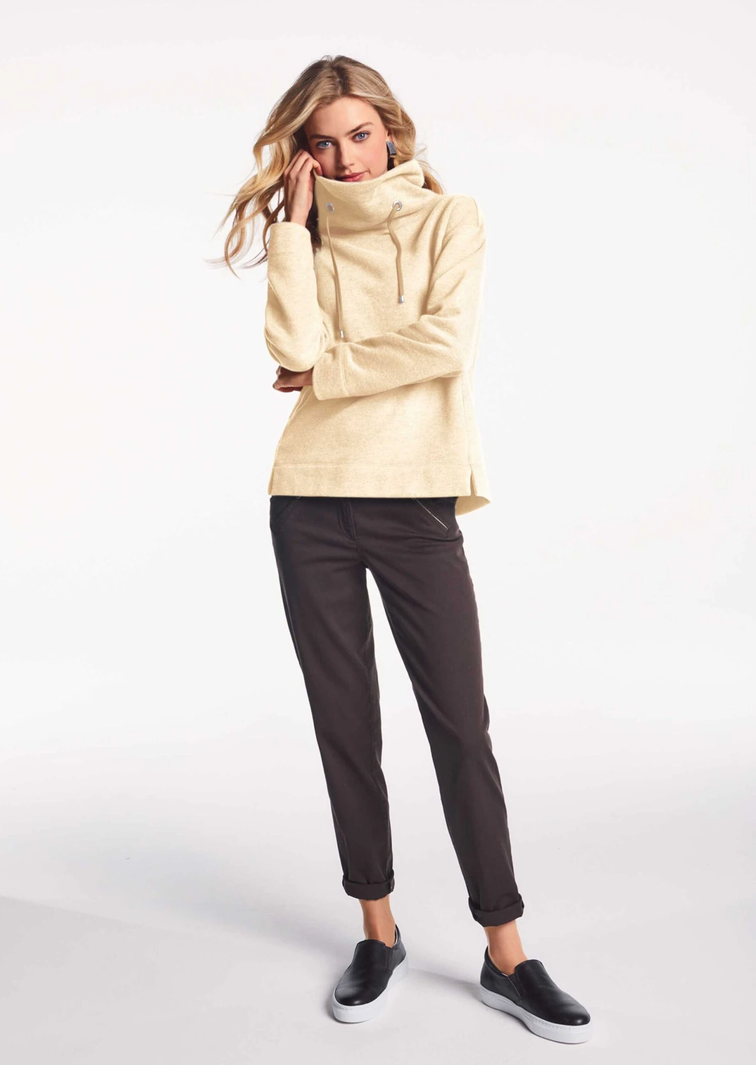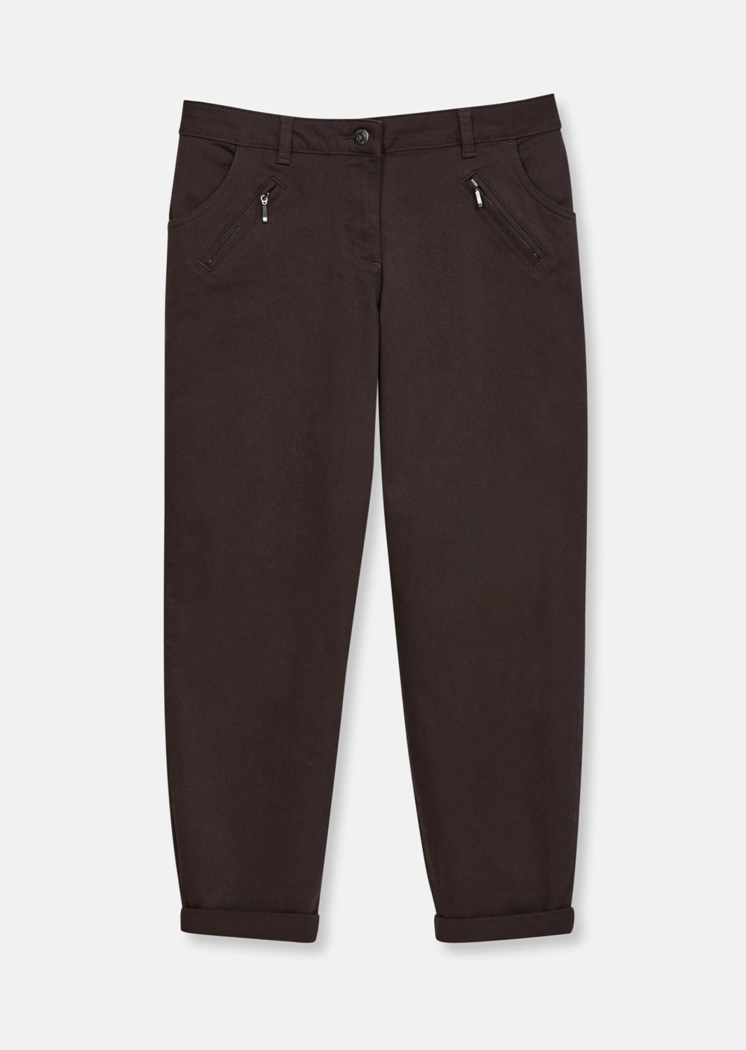Sportliche Lässigkeit für unbeschwerte Sommertage. Diese Chino-Hose werden Sie die ganze Saison über lieben und immer wieder neu kombinieren. In neuer verkürzter Form beweist sie Modernität und wird durch kleine Saumaufschläge wirkungsvoll betont. Typisch die Details wie seitliche Eingrifftaschen, kleine Reißverschlusstaschen vorne und zwei geknöpfte Pattentaschen hinten. Der Formbund mit Gürtelschlaufen gewährt einen guten Sitz. Knöpfe und die kleine Plakette mit Madeleine-Logo-Prägung zeugen von der Herkunft des hochwertigen Modells. Durch den edlen Baumwoll-Stretch trägt sich die Hose sehr komfortabel und sorgt für ein angenehmes Trageklima.