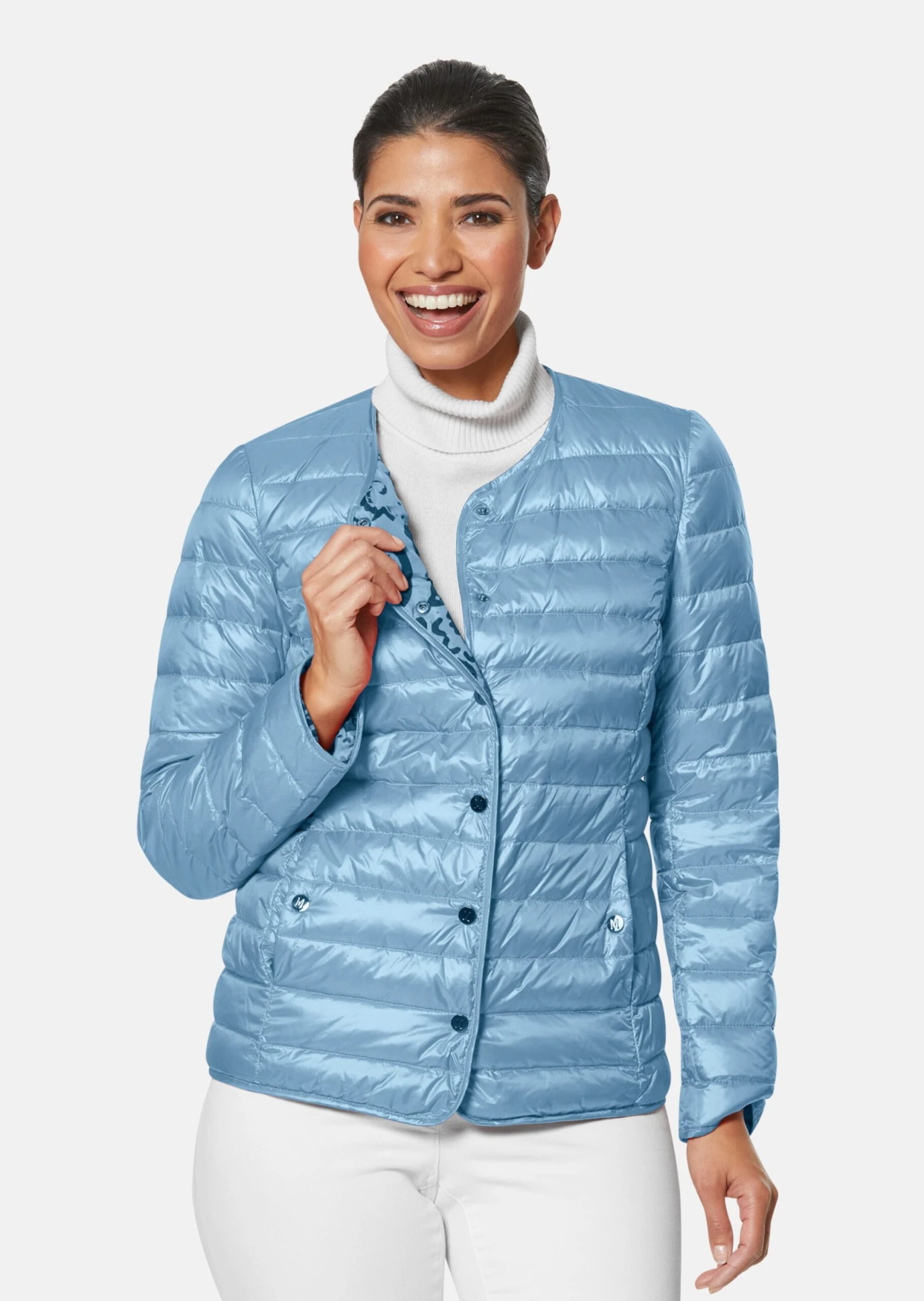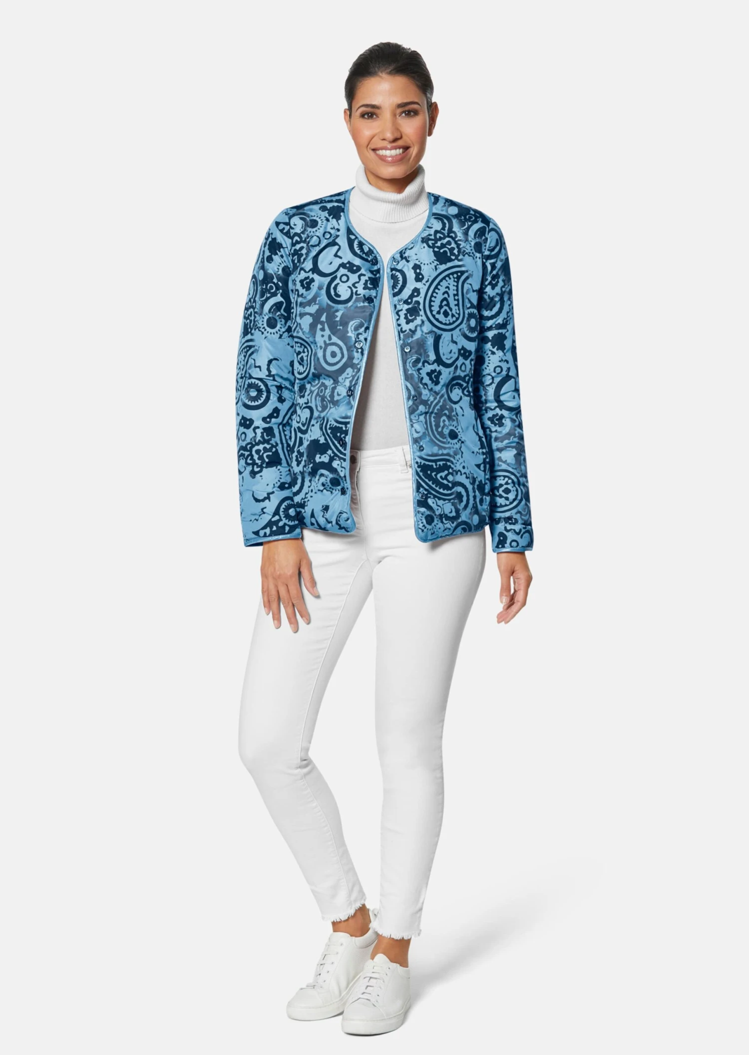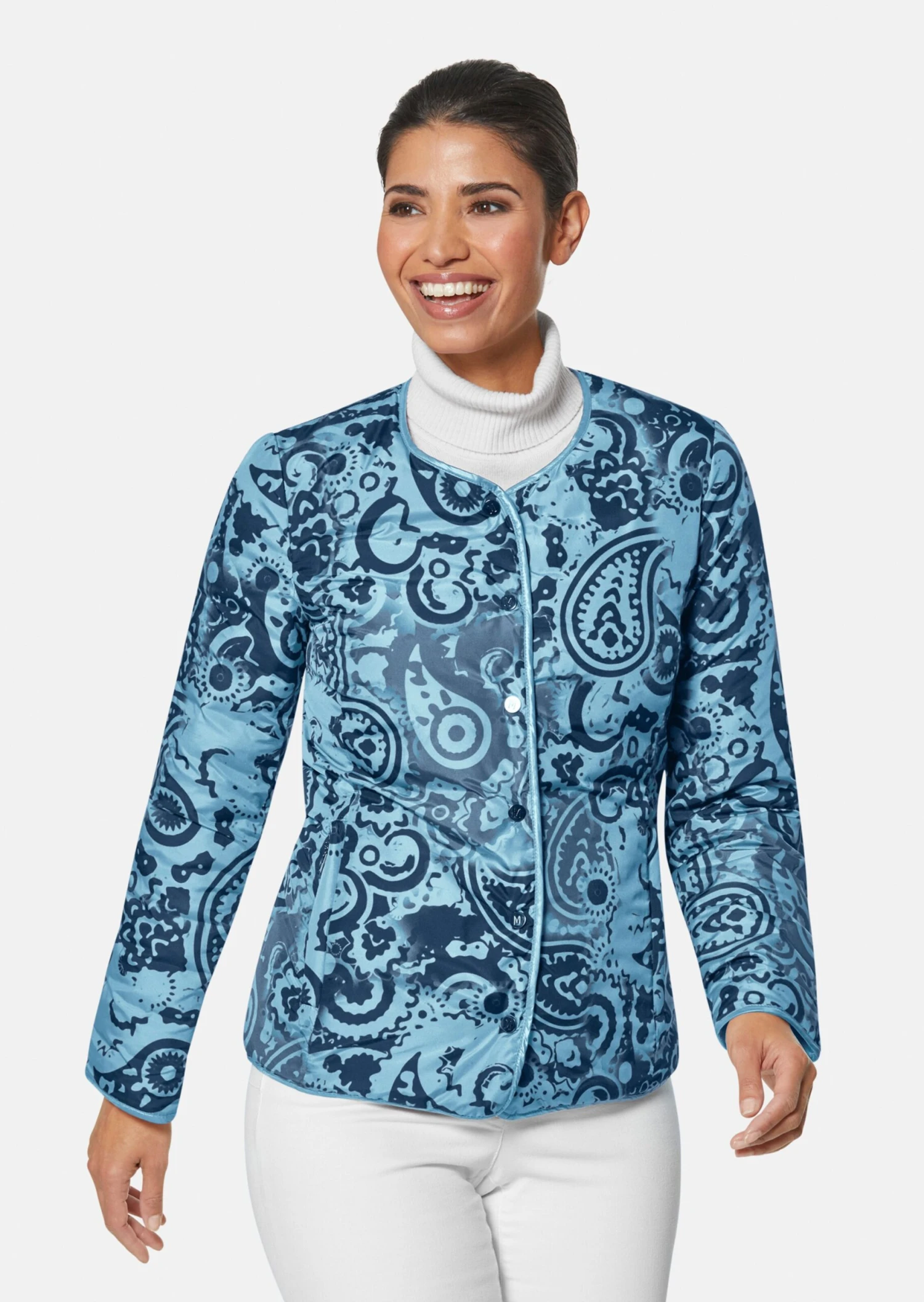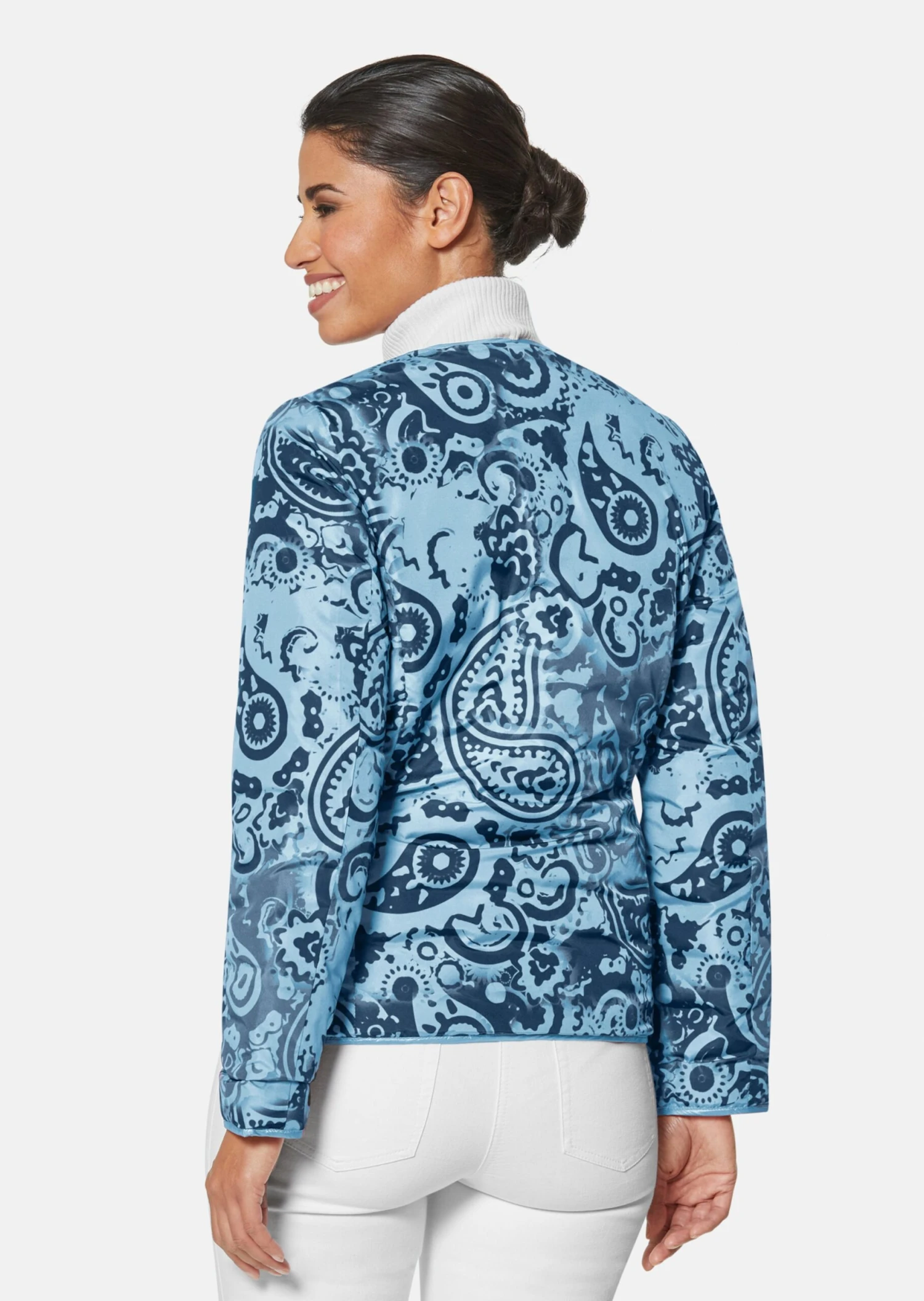 Heute in coolem Stepp-Look, morgen in elegantem Paisley-Chic: Egal wie Ihre Pläne sind, diese Wendejacke passt sich jeder Situation an. Die durchgeknöpfte Form mit Rundhals-Ausschnitt ist auf der unifarbenen Seite mit Druckertaschen, auf der bedruckten Seite mit Zipperpockets und Wiener Nähten gestaltet. Dank der soften Daunenfüllung ist die Jacke wunderbar wärmend.